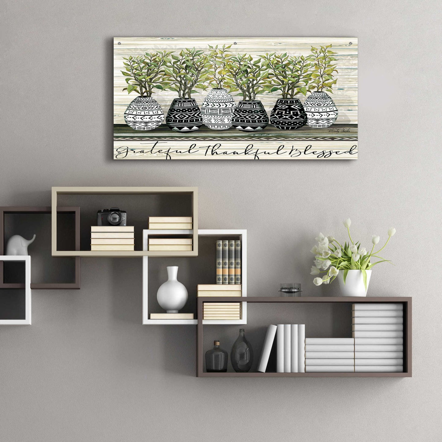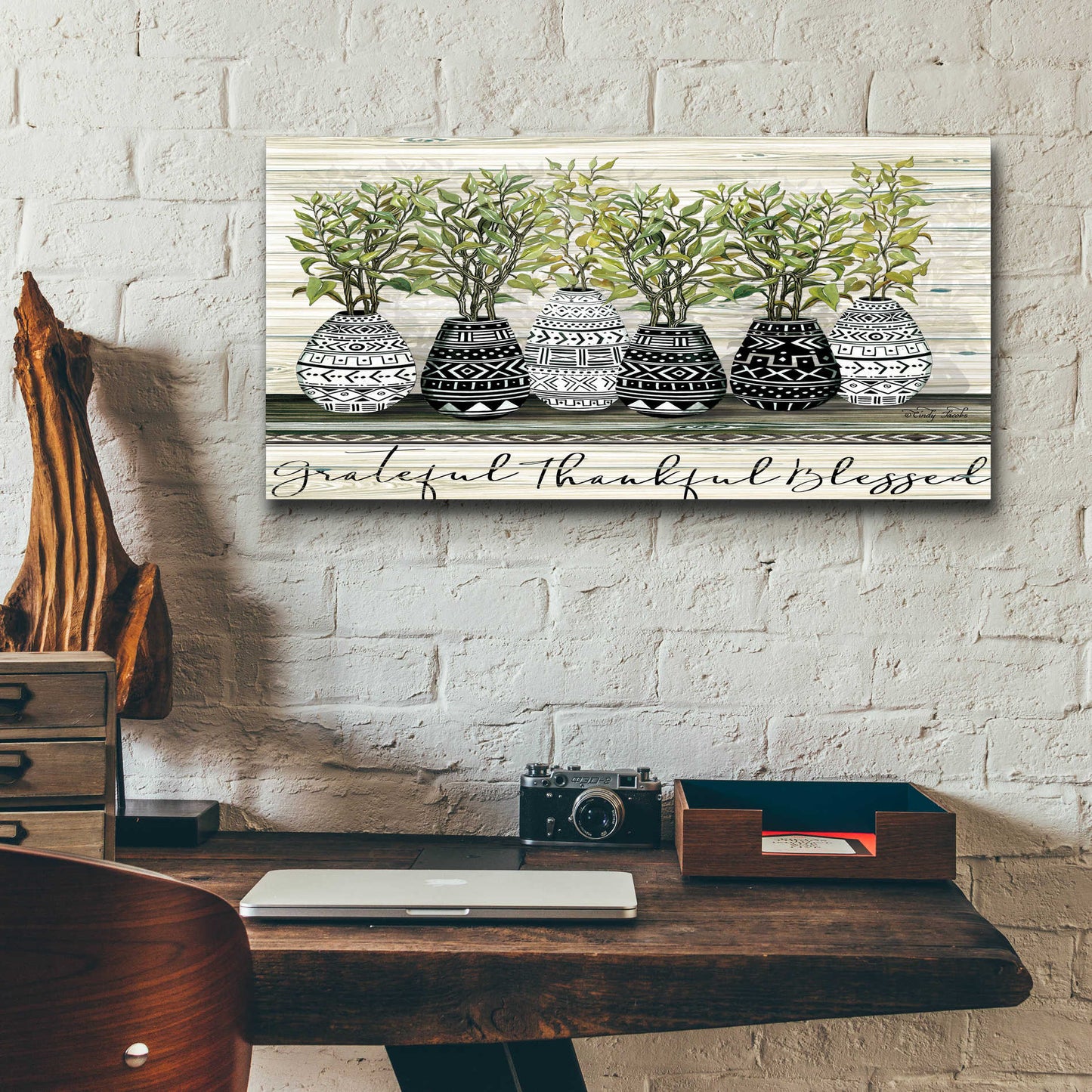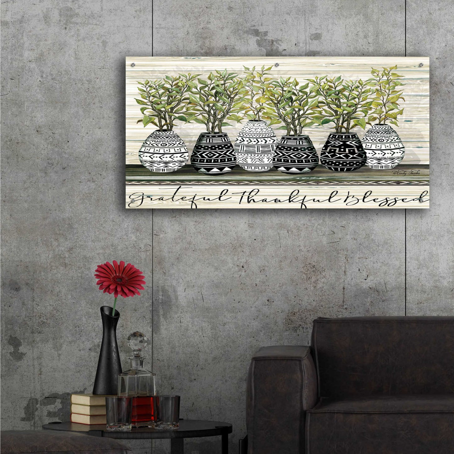 Epic Art 'Grateful Mud Cloth Vase' by Cindy Jacobs, Acrylic Glass Wall Art