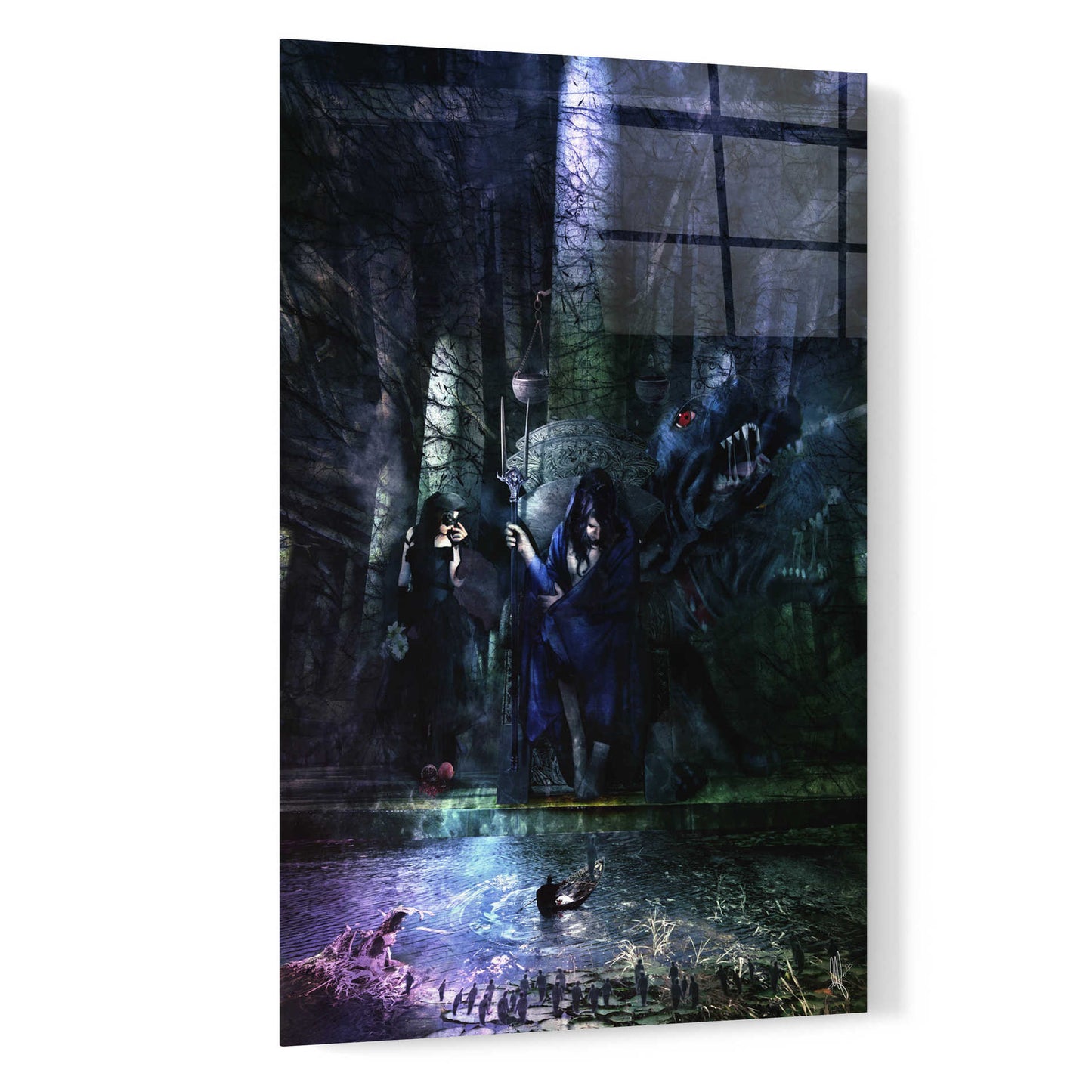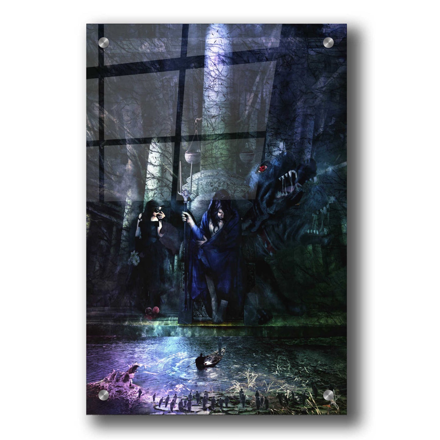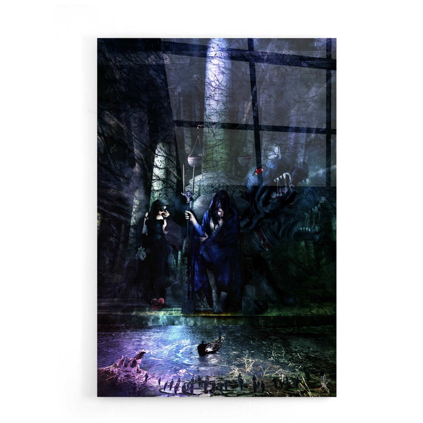 "Hades" by Mario Sanchez Nevado. Mario Nevado delivers some of the best surreal artworks of the digital era, but it's his sensitive but caustic approach to storytelling that makes his style to be an unique emotional experience. Acrylic wall art looks amazing in your home or business. Printed on the back of the acrylic giving it depth and easy maintenance. The highly durable and hard-to-damage qualities make high definition acrylic the ideal wall art for hotels, rental properties, and restaurants. Now Epic Art brings you unmatched value in contemporary wall decor for your home as well. From small sizes to extra large sizes, it is easy to hang, won't shatter like glass if it ever falls down, and is easy to maintain. Simply dust it off or use a damp soft cloth for cleaning.