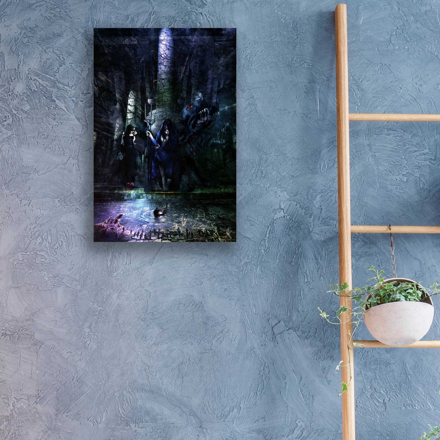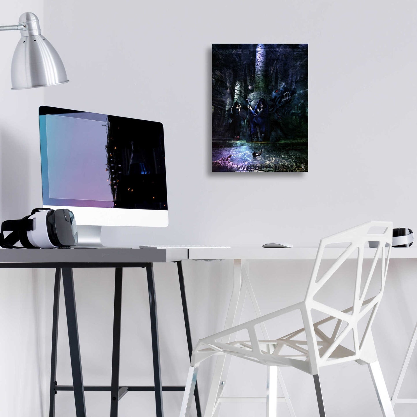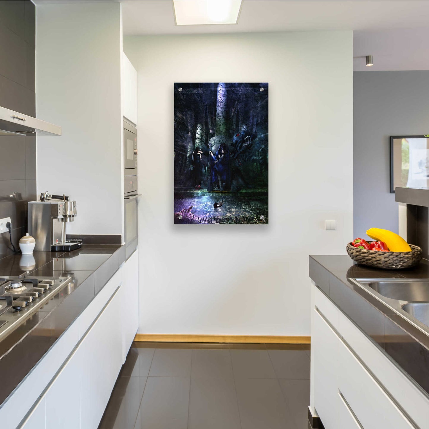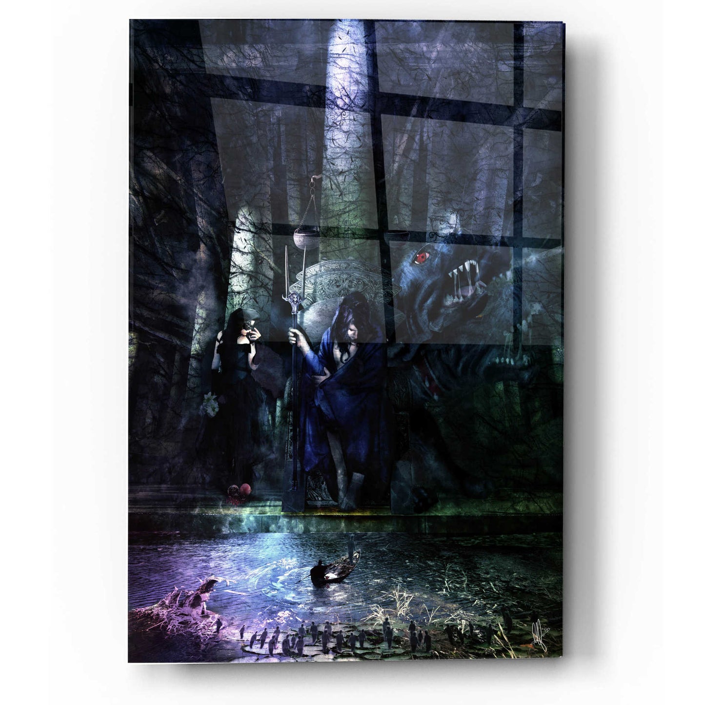 "Hades" by Mario Sanchez Nevado. Mario Nevado delivers some of the best surreal artworks of the digital era, but it's his sensitive but caustic approach to storytelling that makes his style to be an unique emotional experience. Acrylic wall art looks amazing in your home or business. Printed on the back of the acrylic giving it depth and easy maintenance. The highly durable and hard-to-damage qualities make high definition acrylic the ideal wall art for hotels, rental properties, and restaurants. Now Epic Art brings you unmatched value in contemporary wall decor for your home as well. From small sizes to extra large sizes, it is easy to hang, won't shatter like glass if it ever falls down, and is easy to maintain. Simply dust it off or use a damp soft cloth for cleaning.