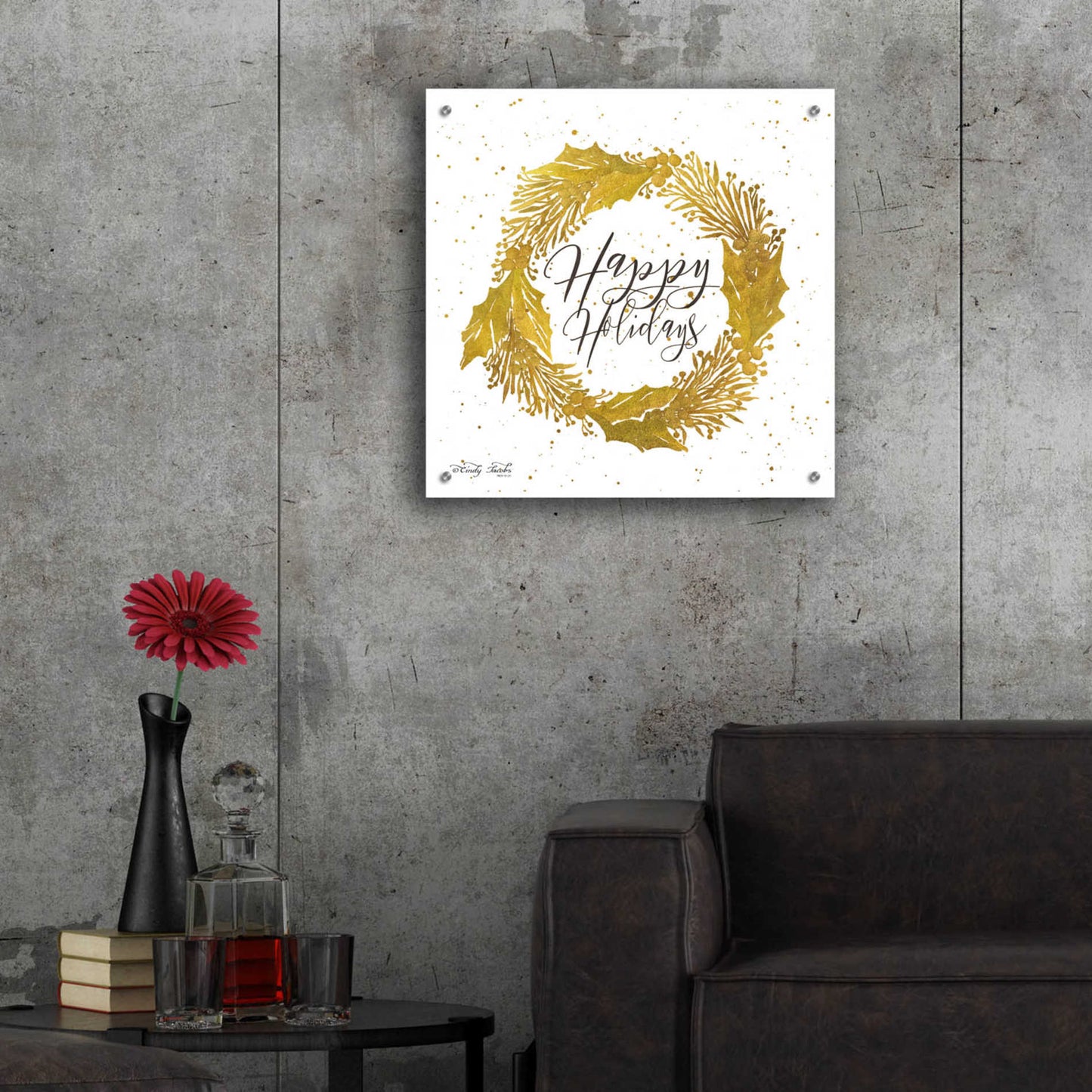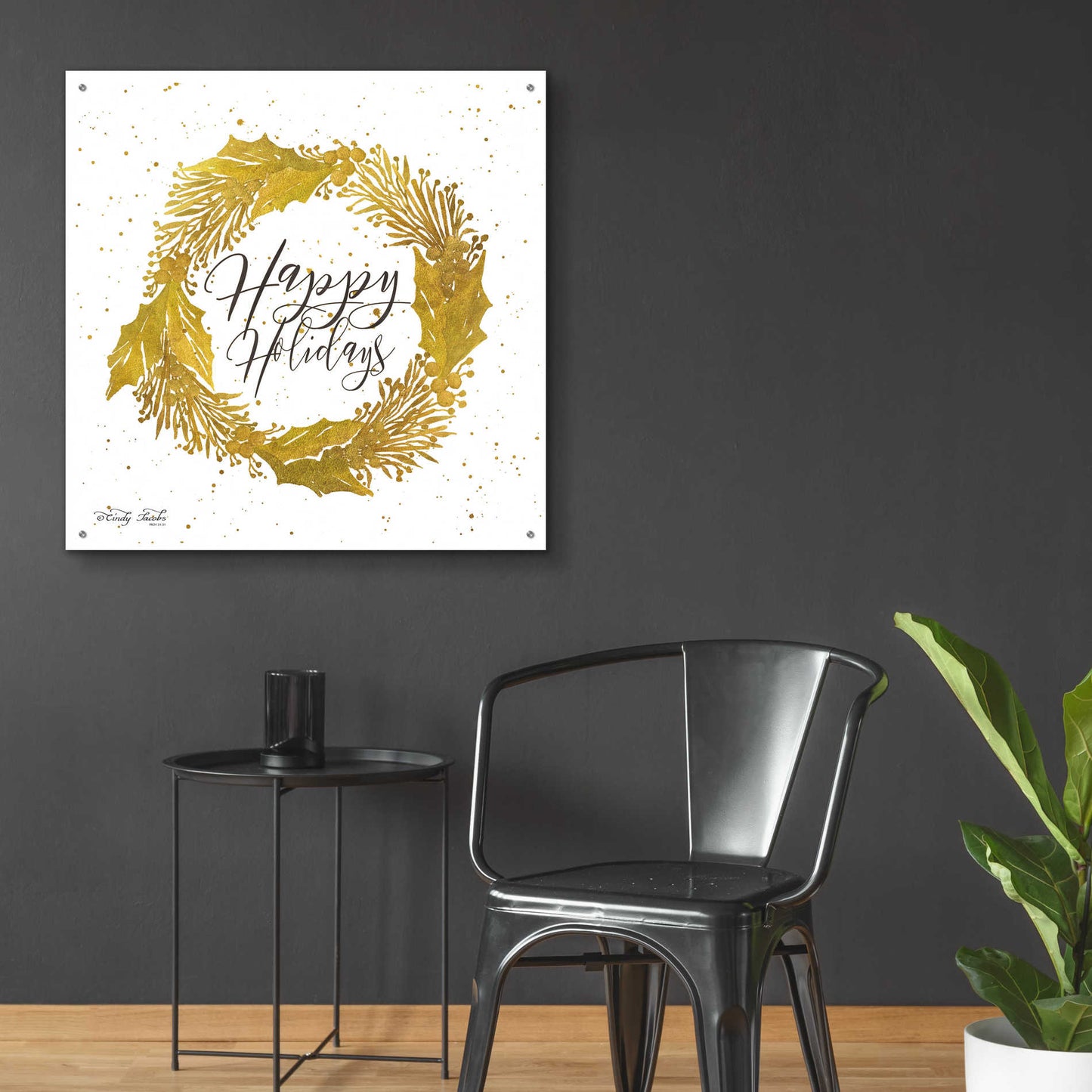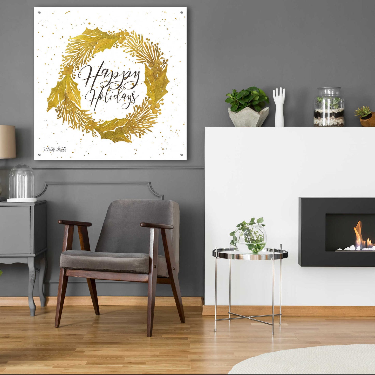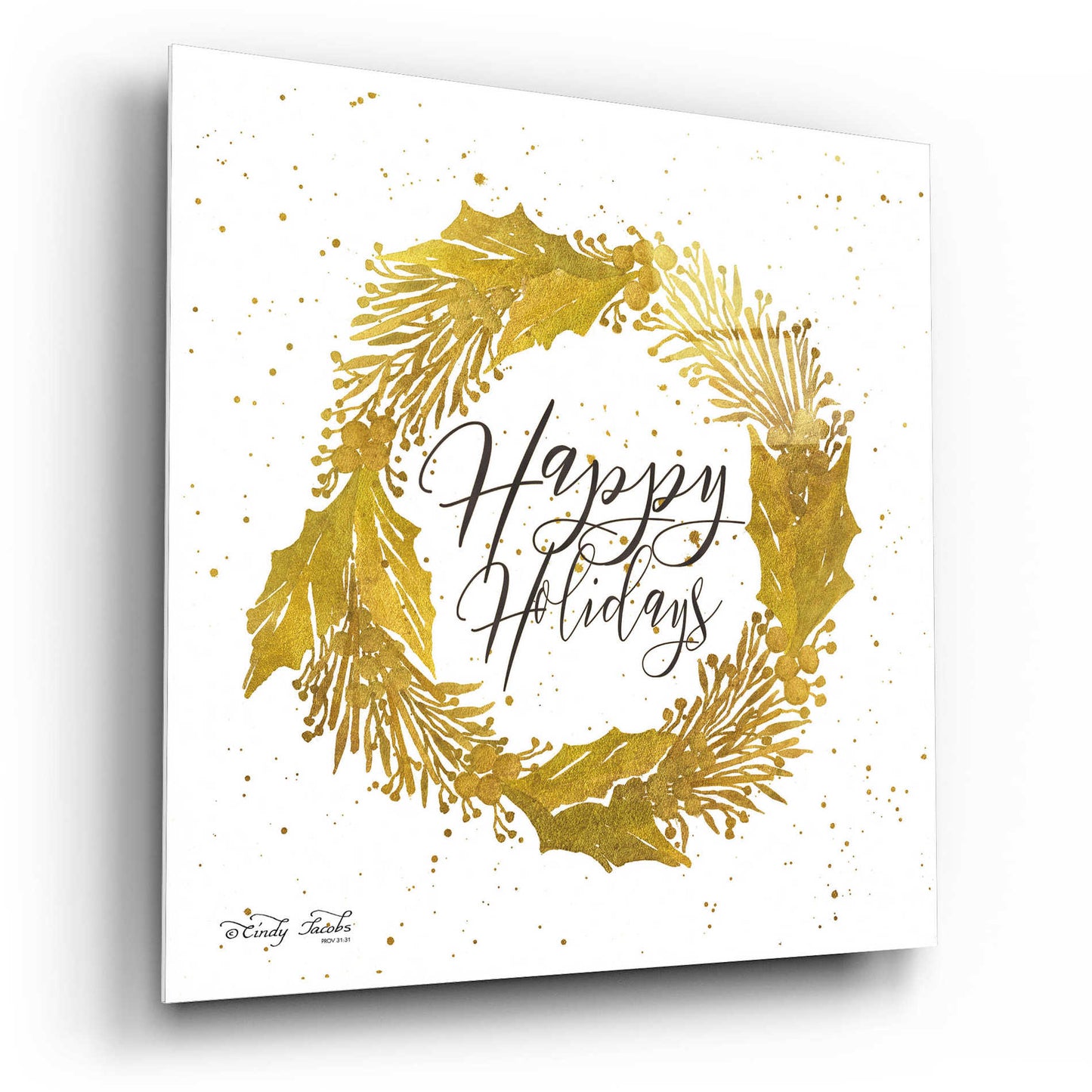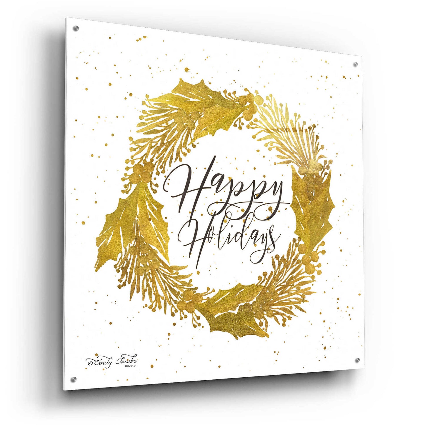Epic Art 'Happy Holidays Gold Wreath' by Cindy Jacobs, Acrylic Glass Wall Art