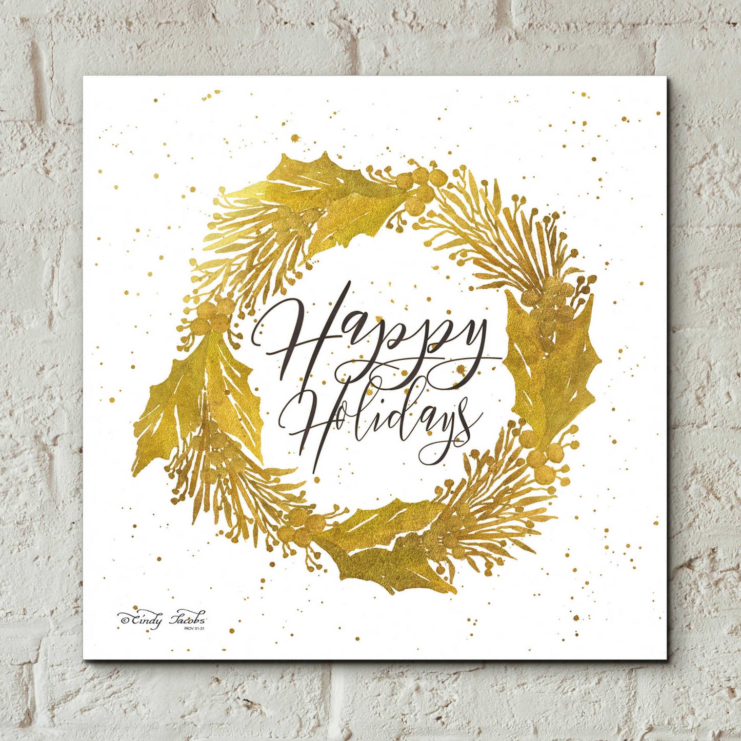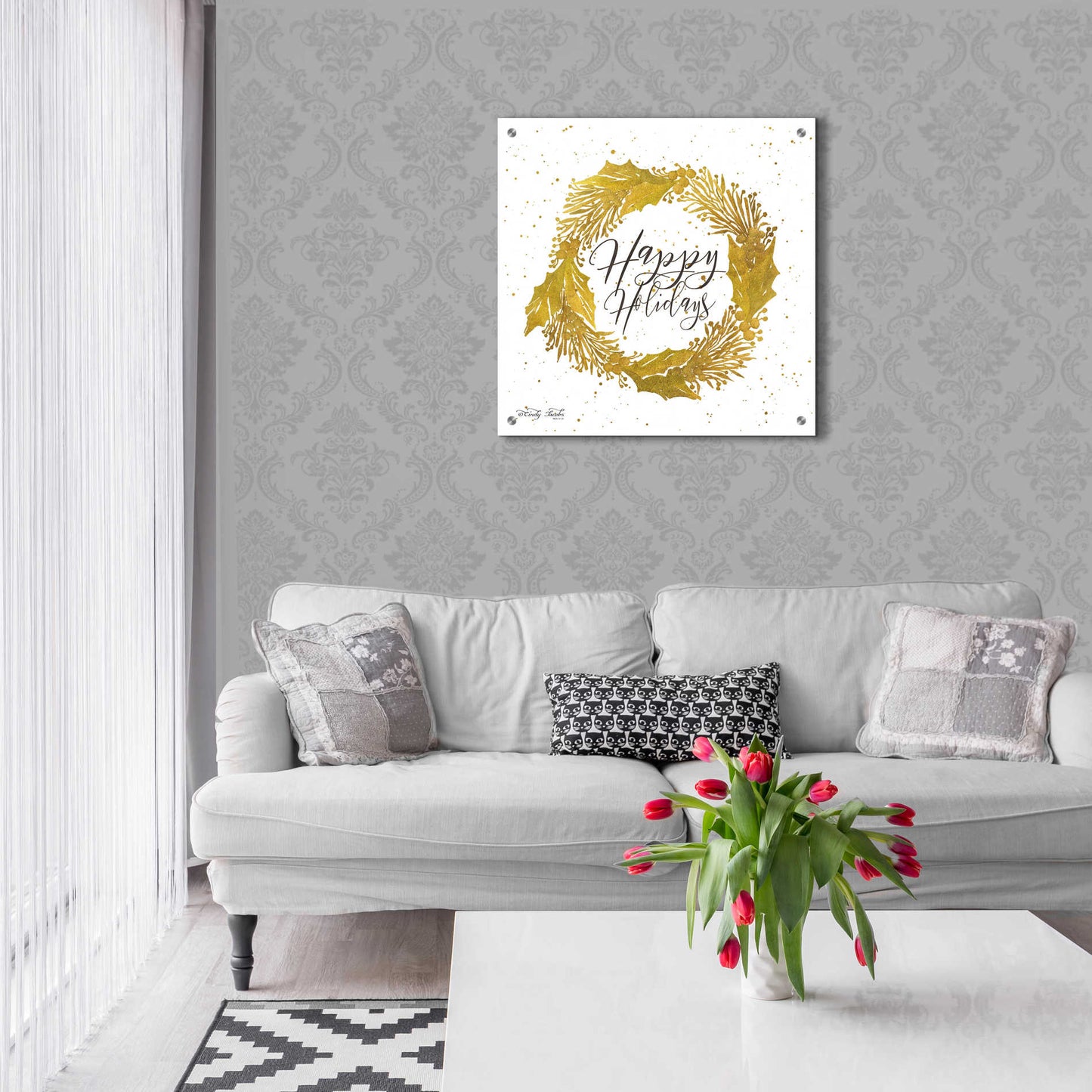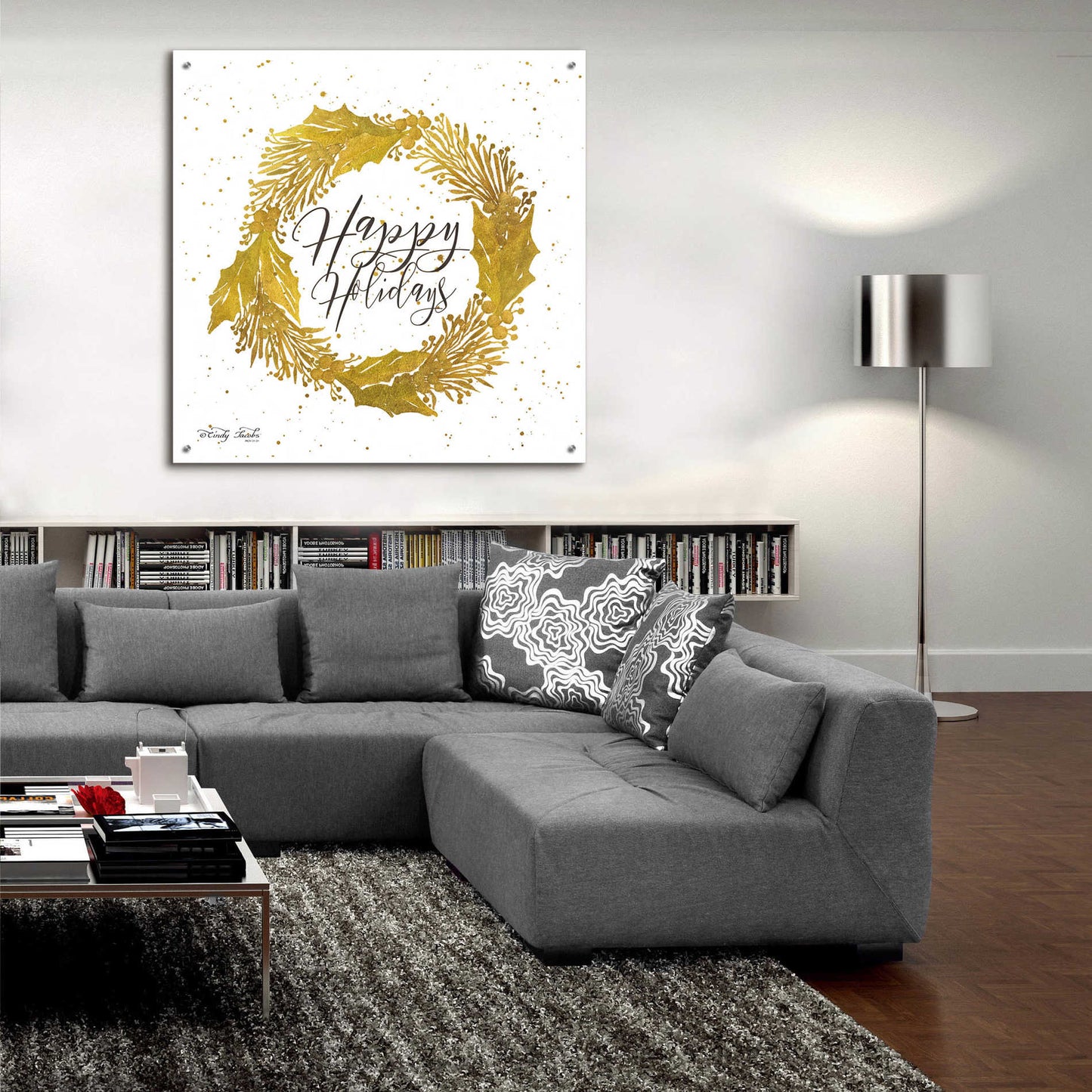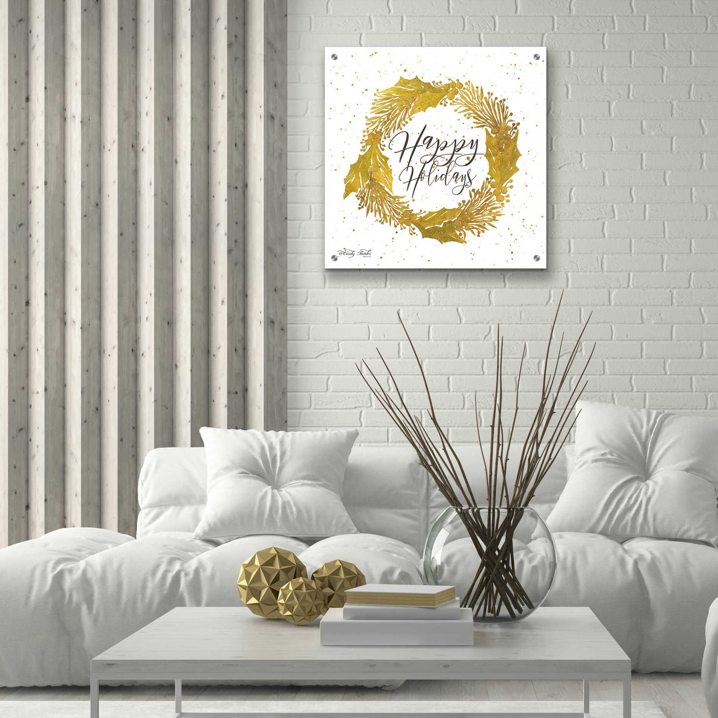Epic Art 'Happy Holidays Gold Wreath' by Cindy Jacobs, Acrylic Glass Wall Art