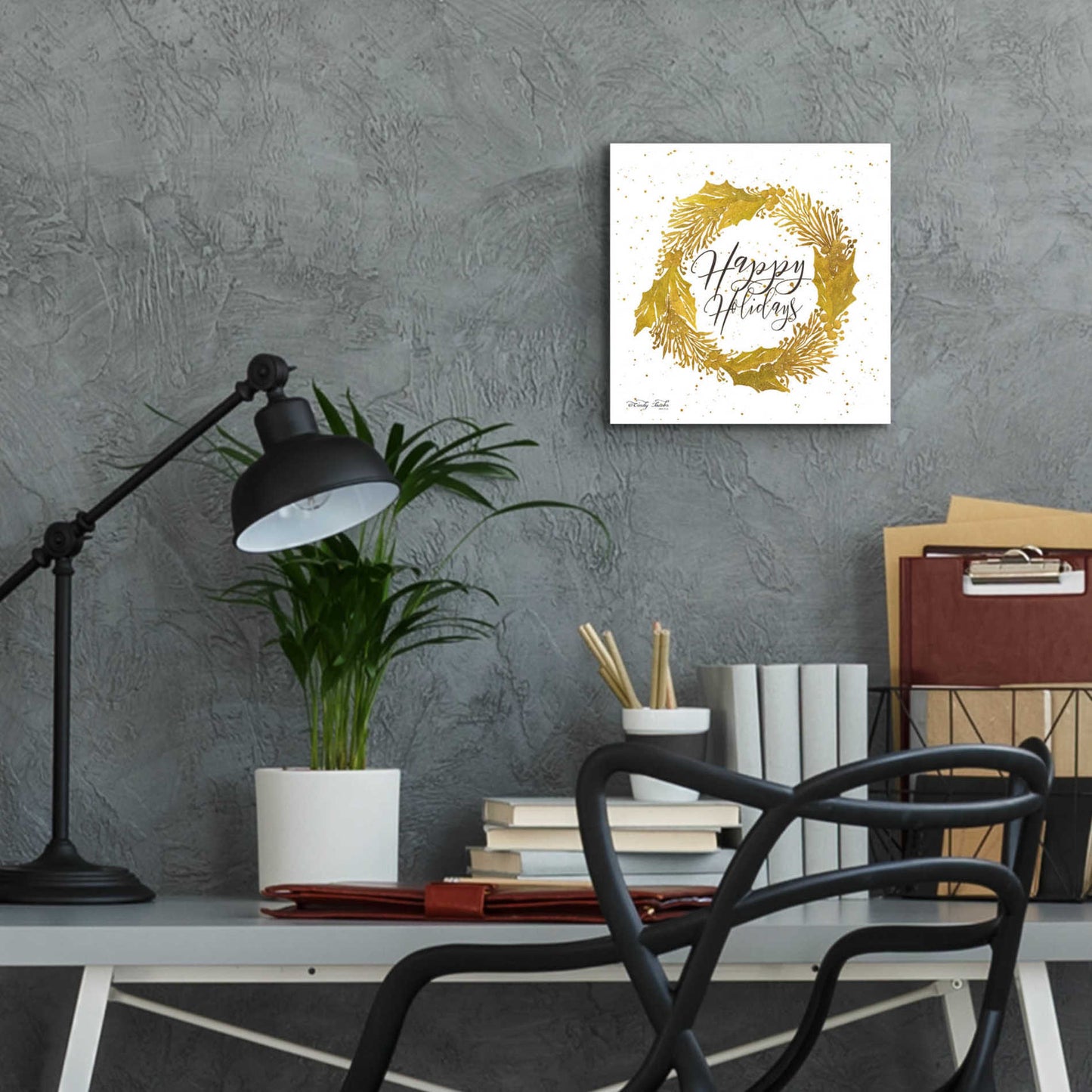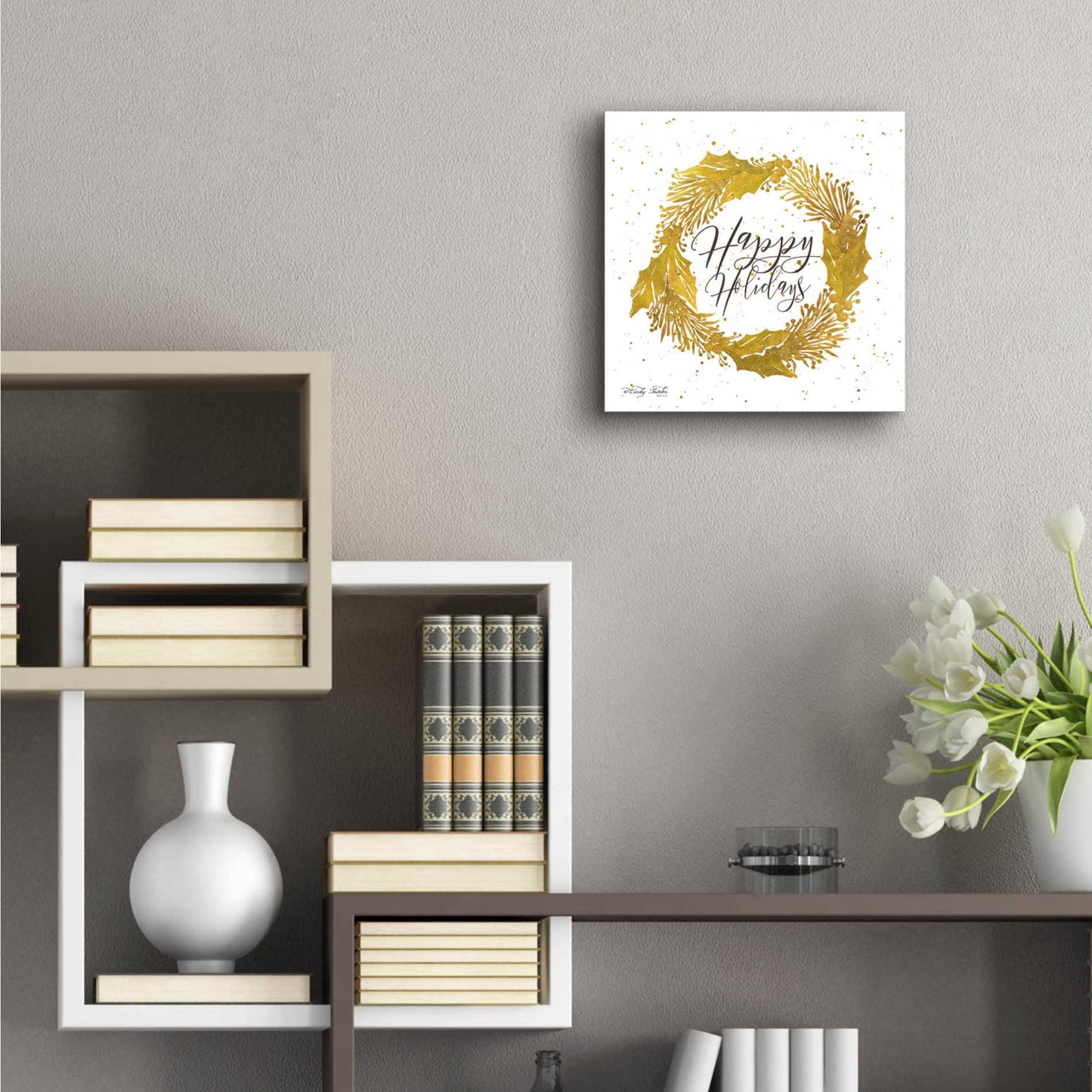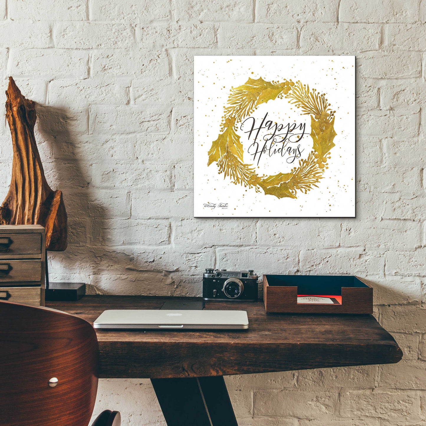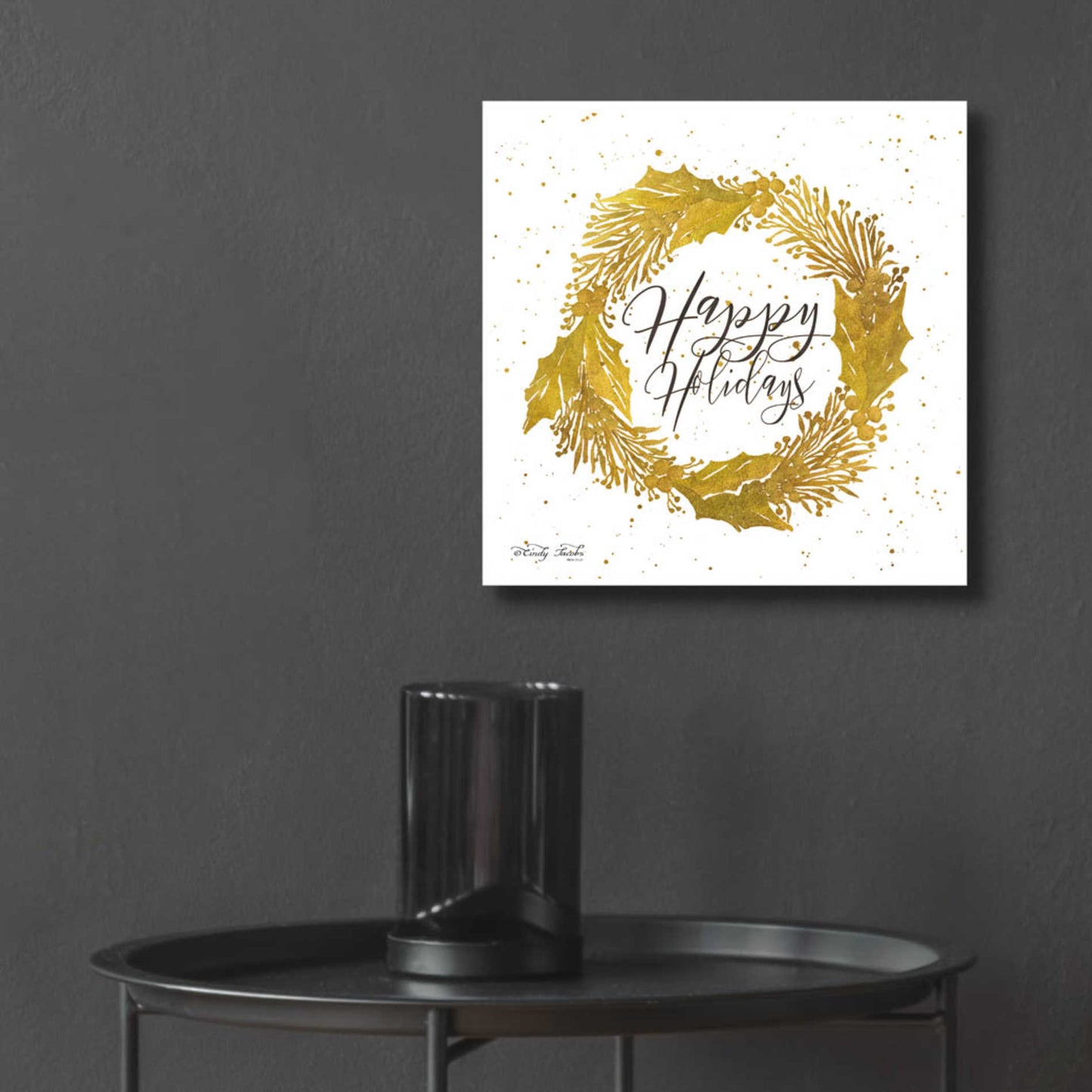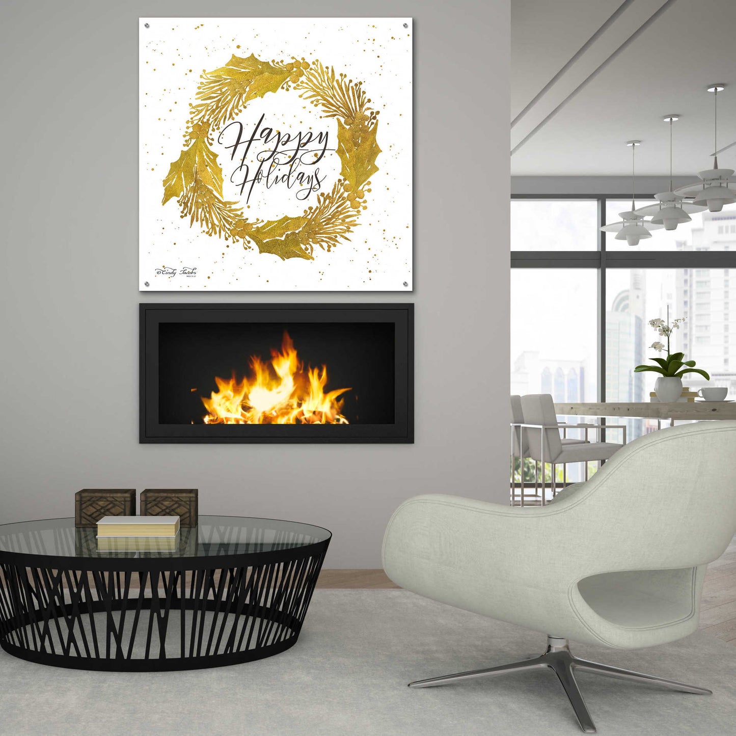 Epic Art 'Happy Holidays Gold Wreath' by Cindy Jacobs, Acrylic Glass Wall Art