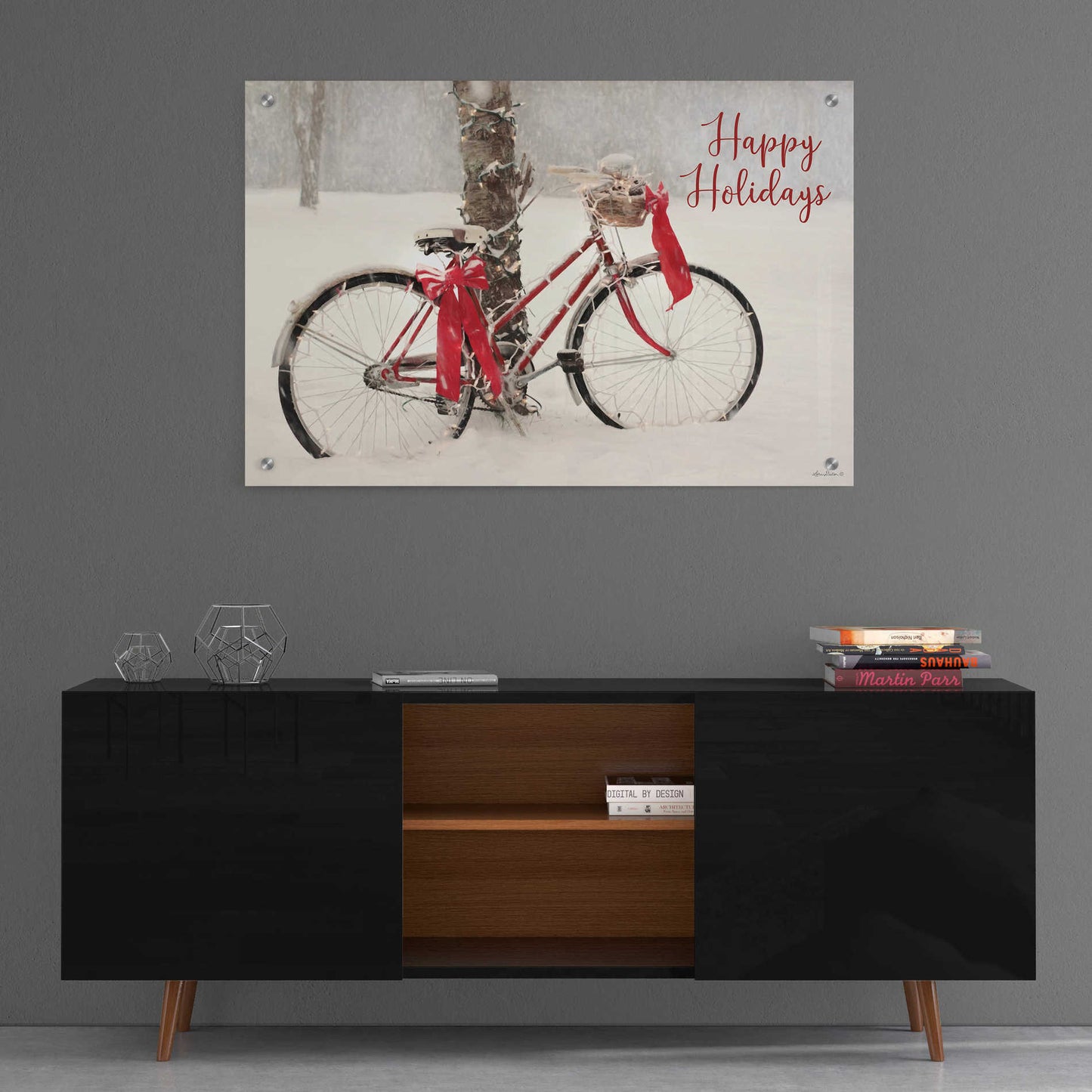 Epic Art 'Happy Holidays Snowy Bike' by Lori Deiter, Acrylic Glass Wall Art