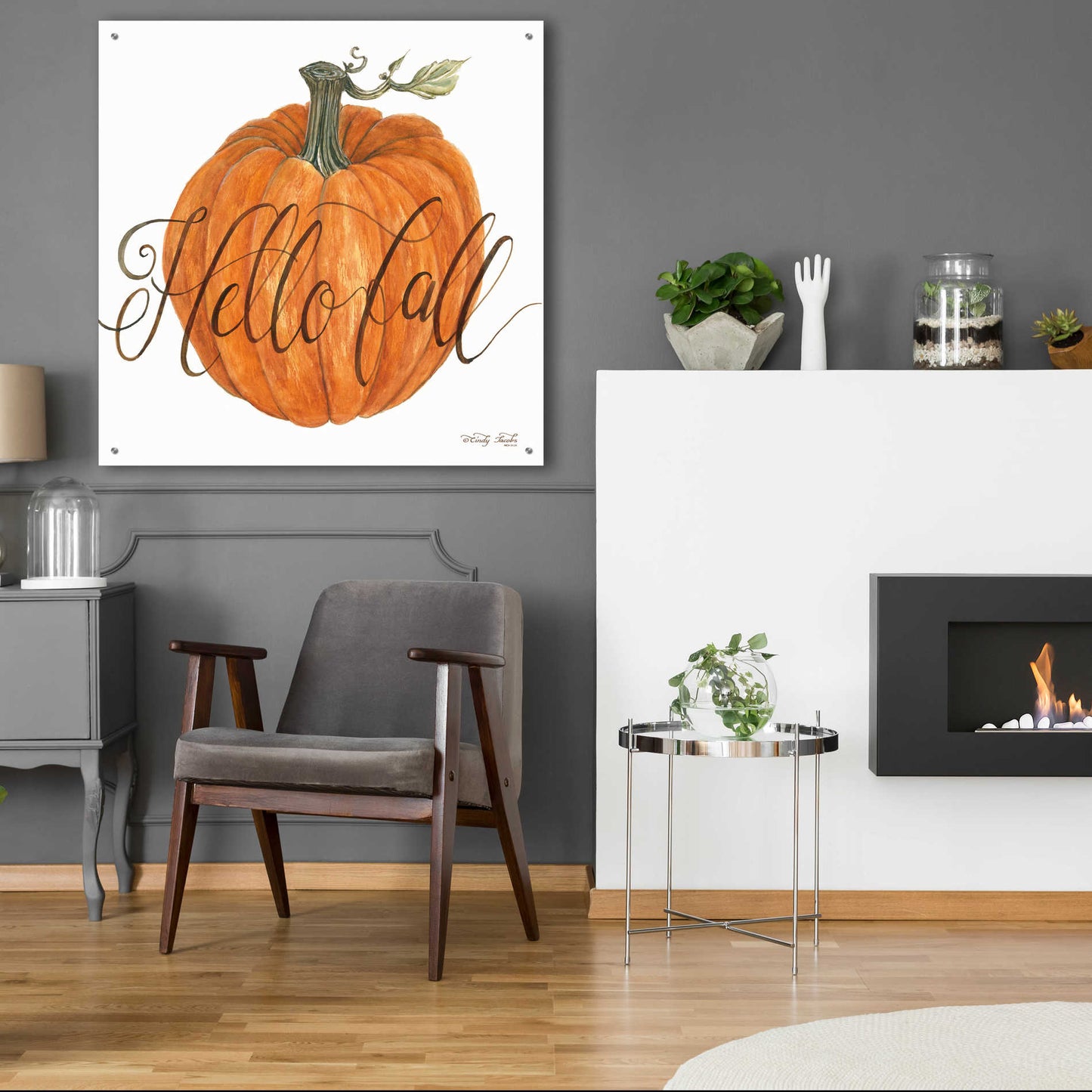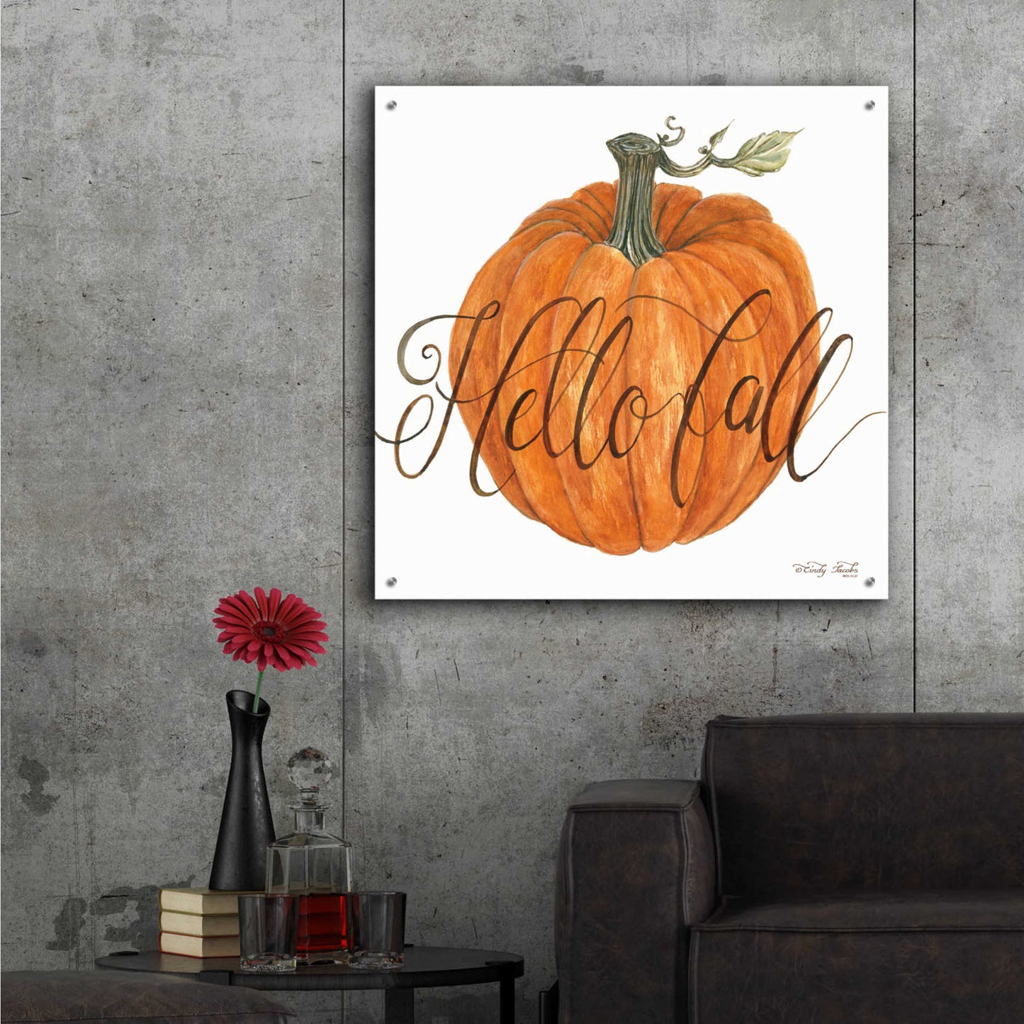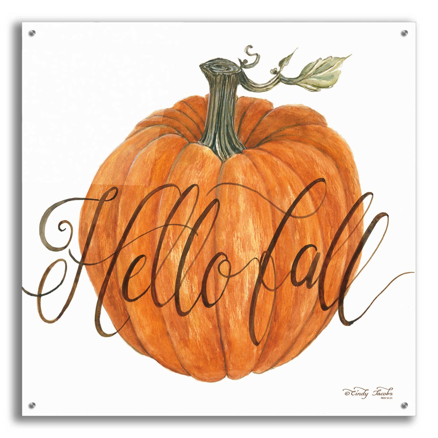 Epic Art 'Hello Fall Pumpkin' by Cindy Jacobs, Acrylic Glass Wall Art