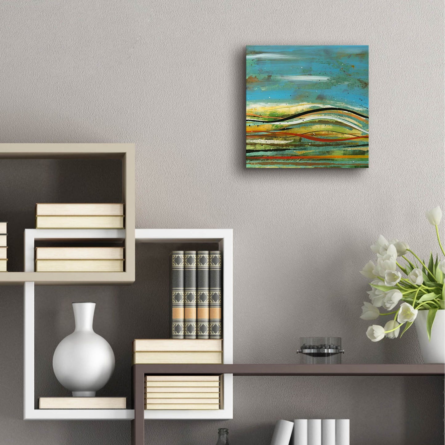 - Modern art with vibrant colors and extraordinary depth comes ready to hang with a mounted hanging plate on the back