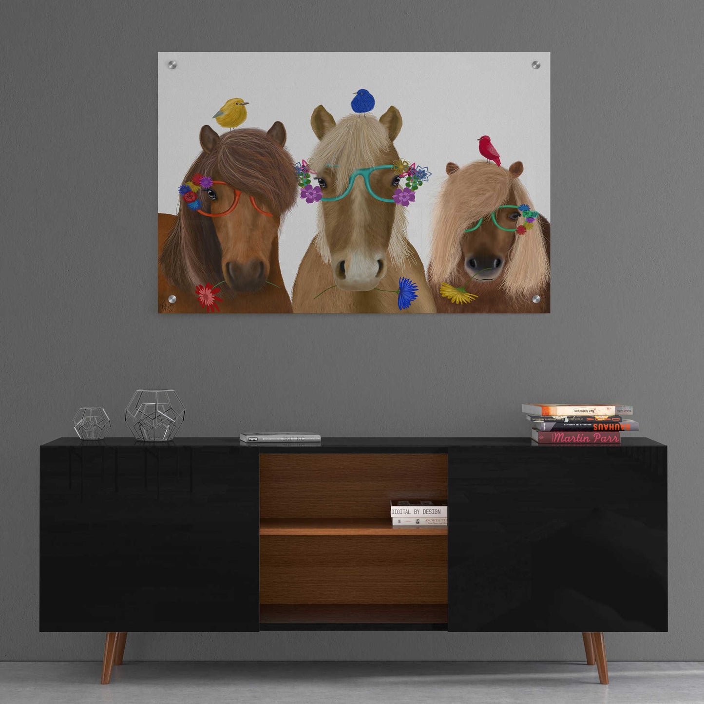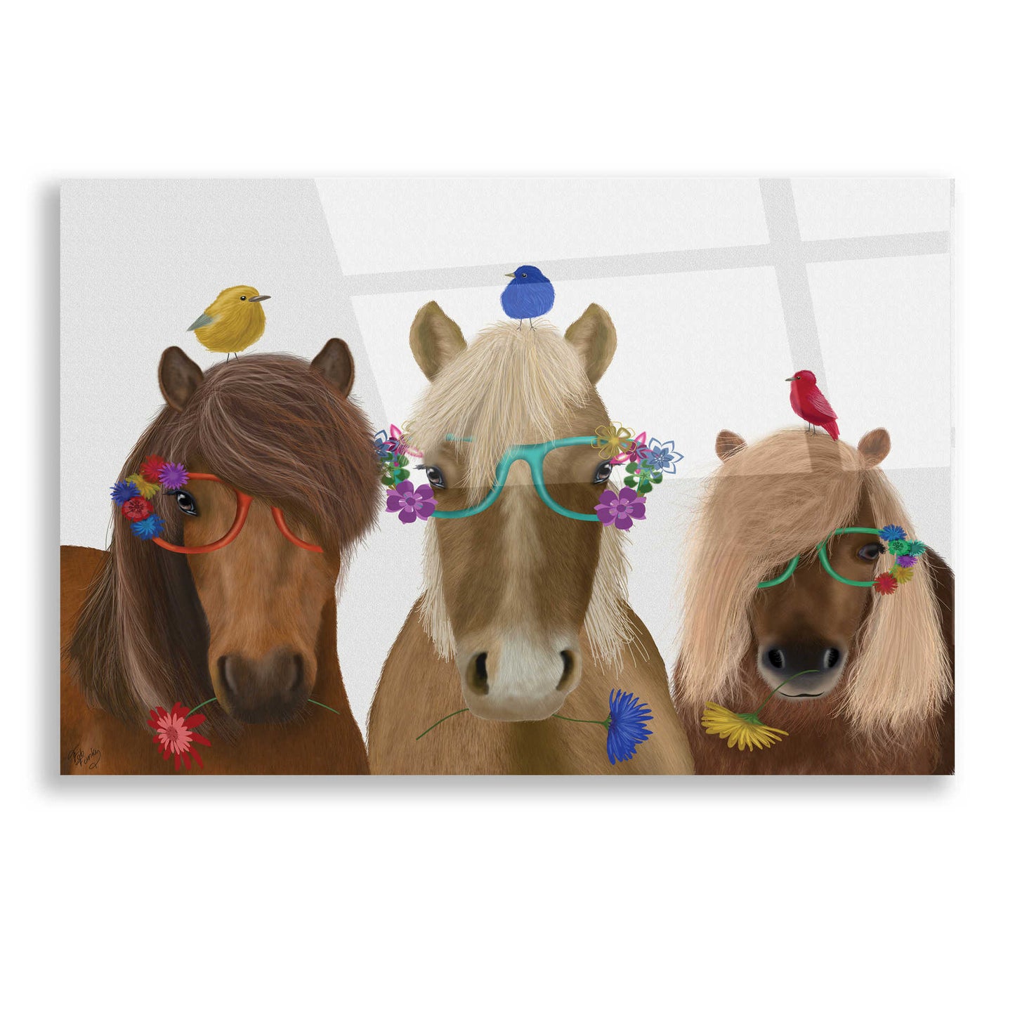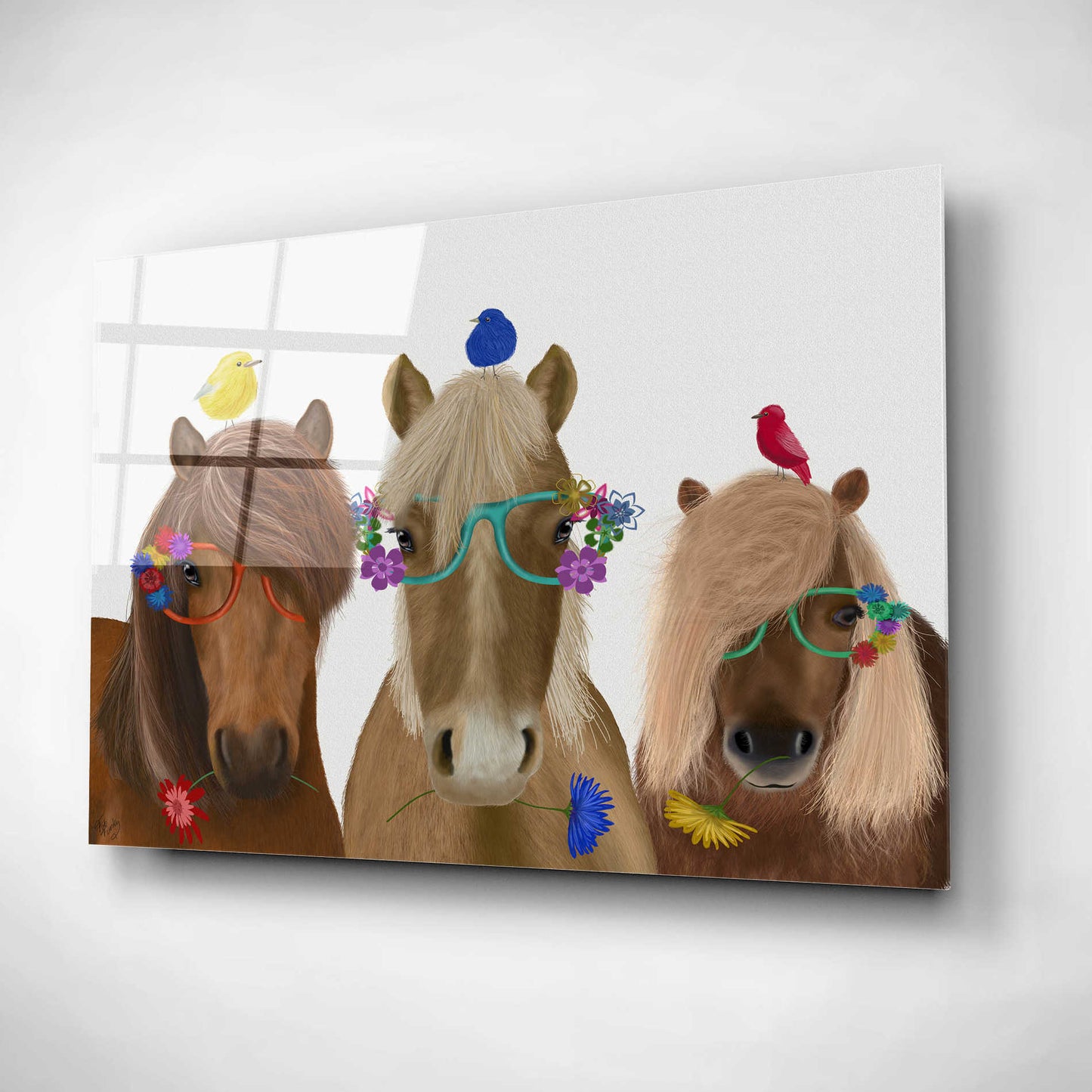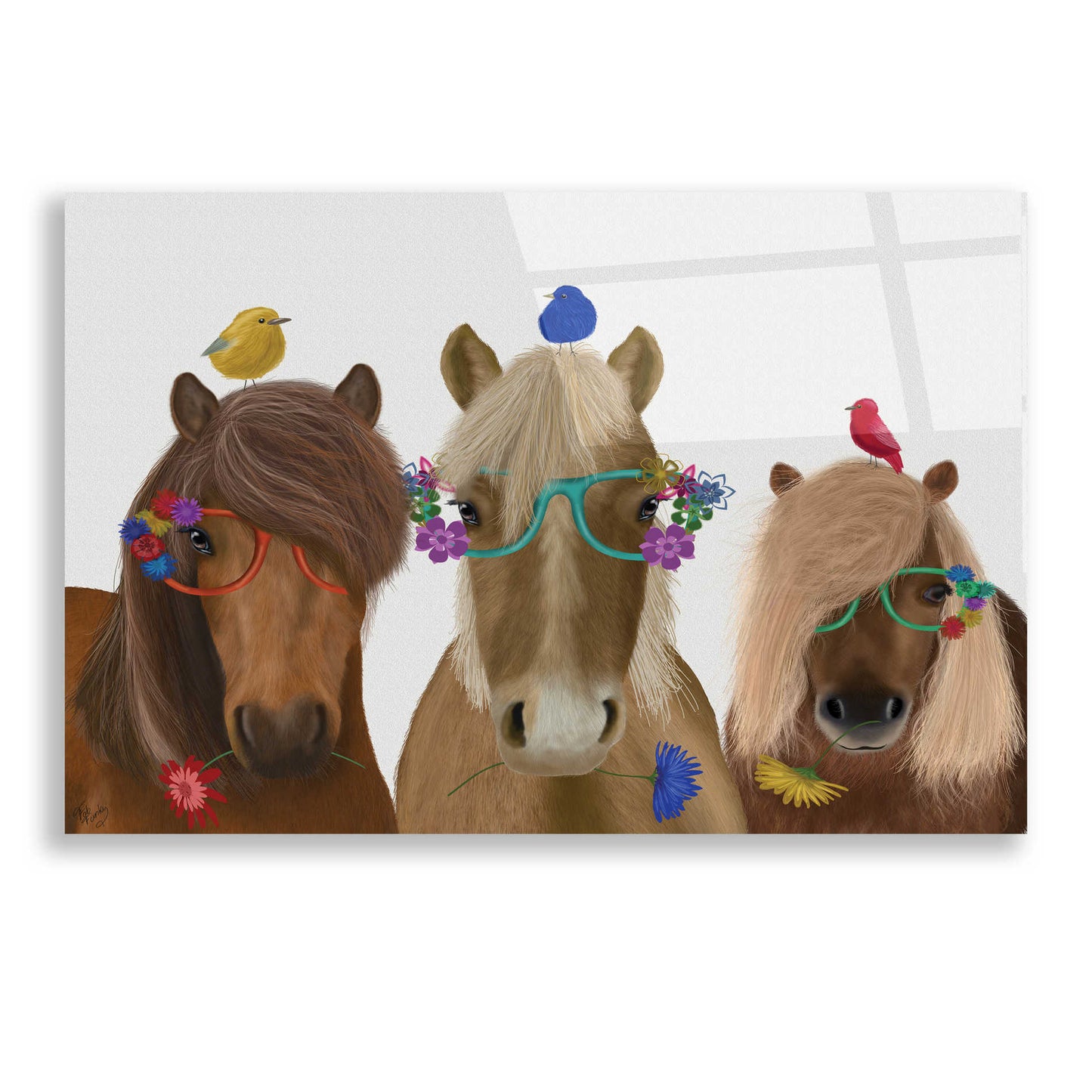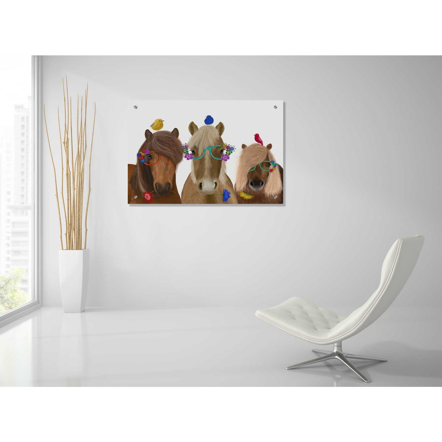 Epic Art 'Horse Trio with Flower Glasses' by Fab Funky, Acrylic Glass Wall Art