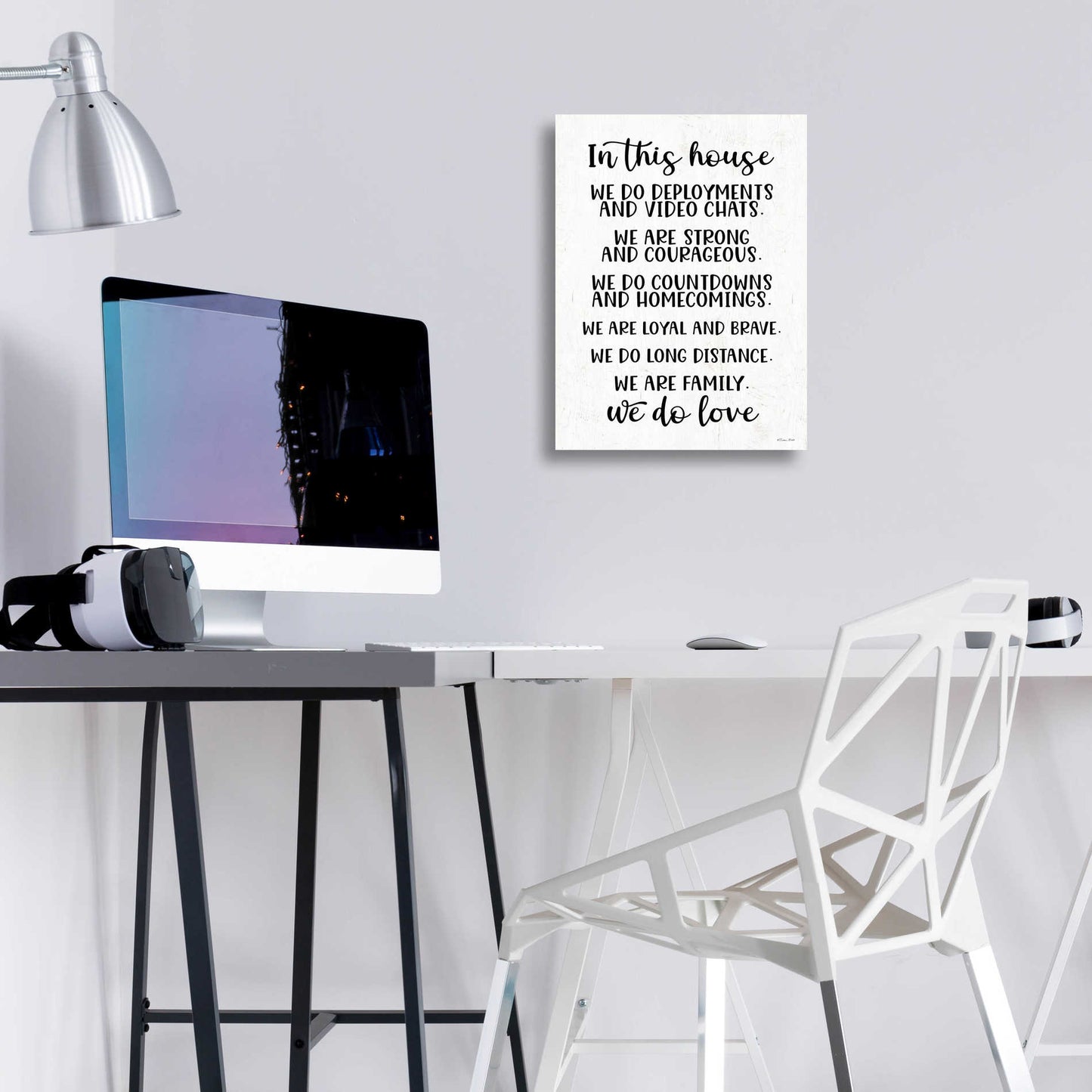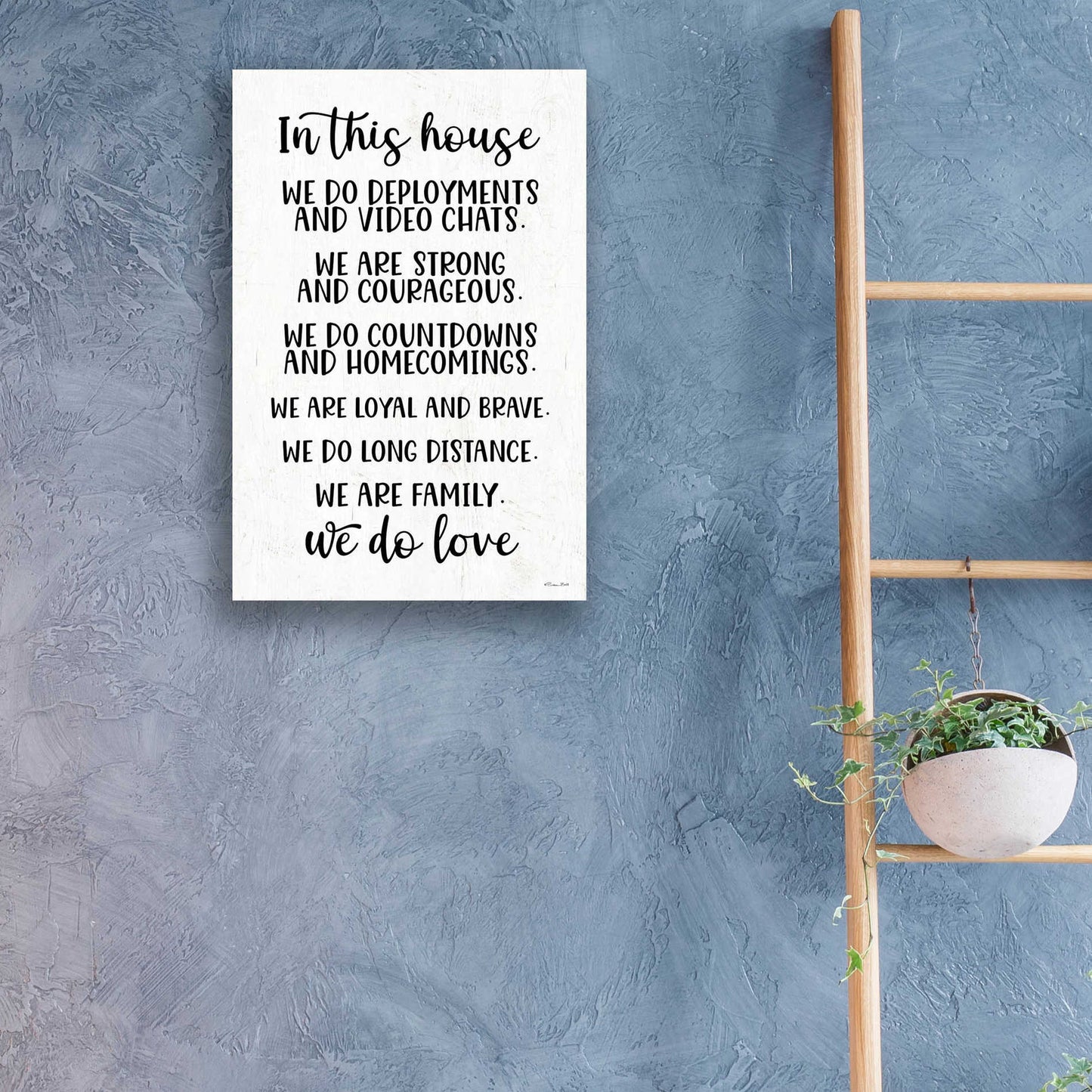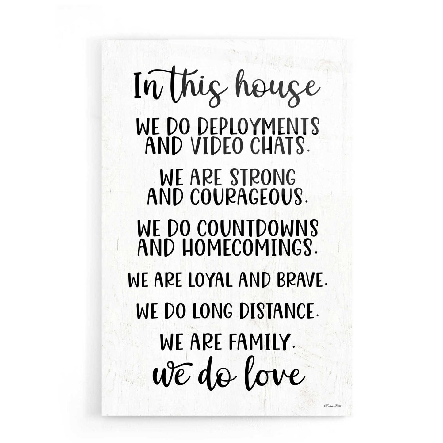 "In This House Military" by Susan Ball. Susan discovered her love for art when she began tole painting with her mom in high school. Several craft shows and product lines later, she discovered her niche in inspirational, typography art. After battling breast cancer, she creates art to motivate, encourage, and inspire people as well as appreciate the little things in life. Acrylic wall art looks amazing in your home or business. Printed on the back of the acrylic giving it depth and easy maintenance. The highly durable and hard-to-damage qualities make high definition acrylic the ideal wall art for hotels, rental properties, and restaurants. Now Epic Art brings you unmatched value in contemporary wall decor for your home as well. From small sizes to extra large sizes, it is easy to hang, won't shatter like glass if it ever falls down, and is easy to maintain. Simply dust it off or use a damp soft cloth for cleaning.