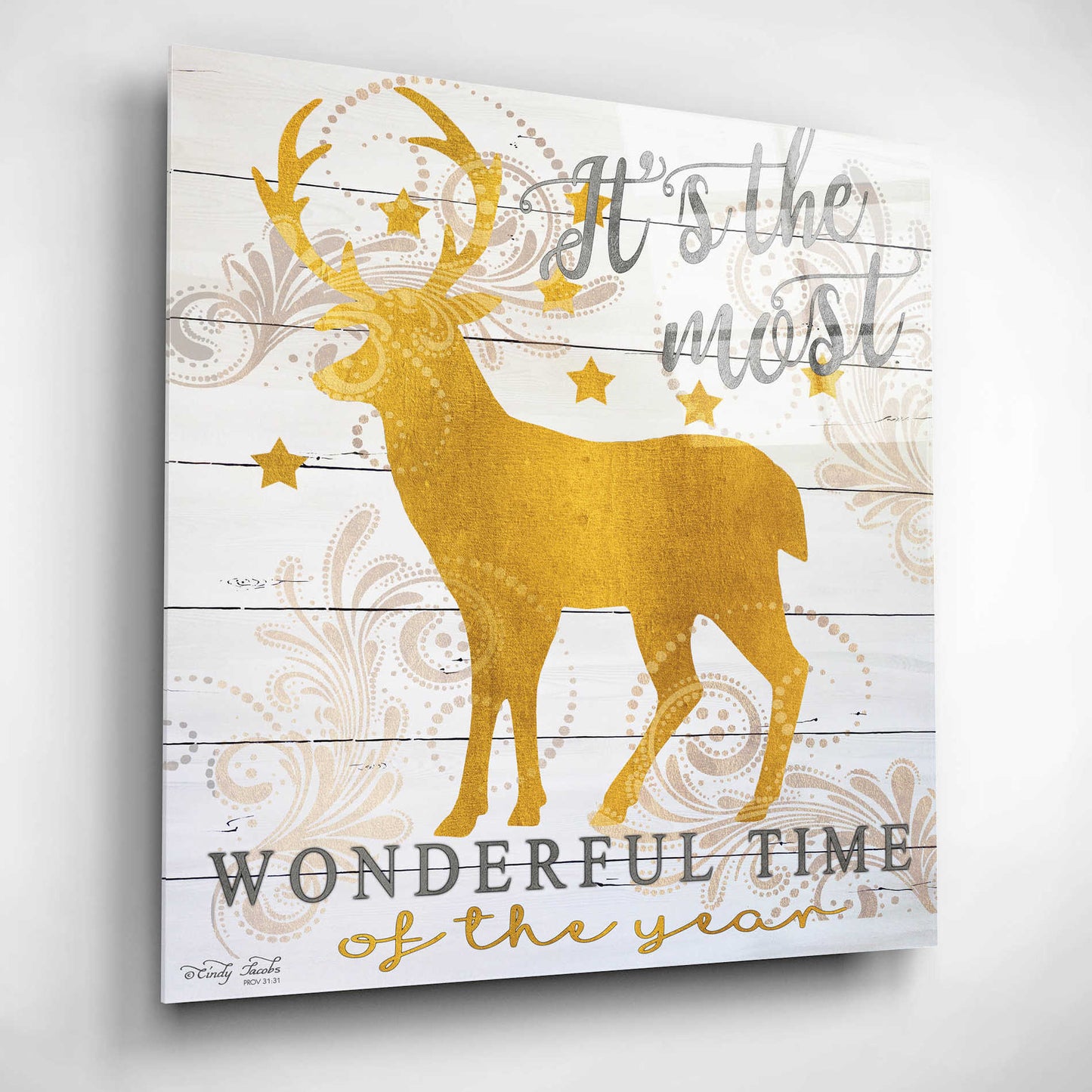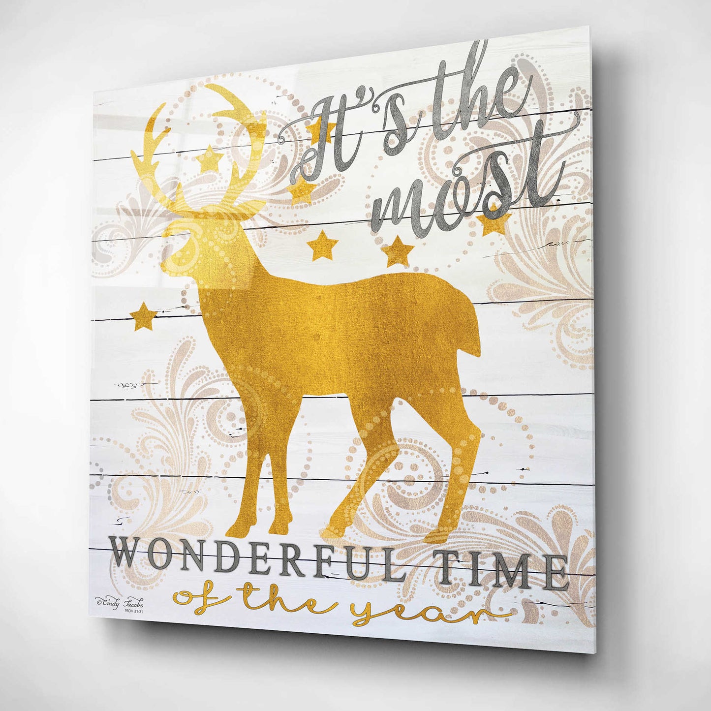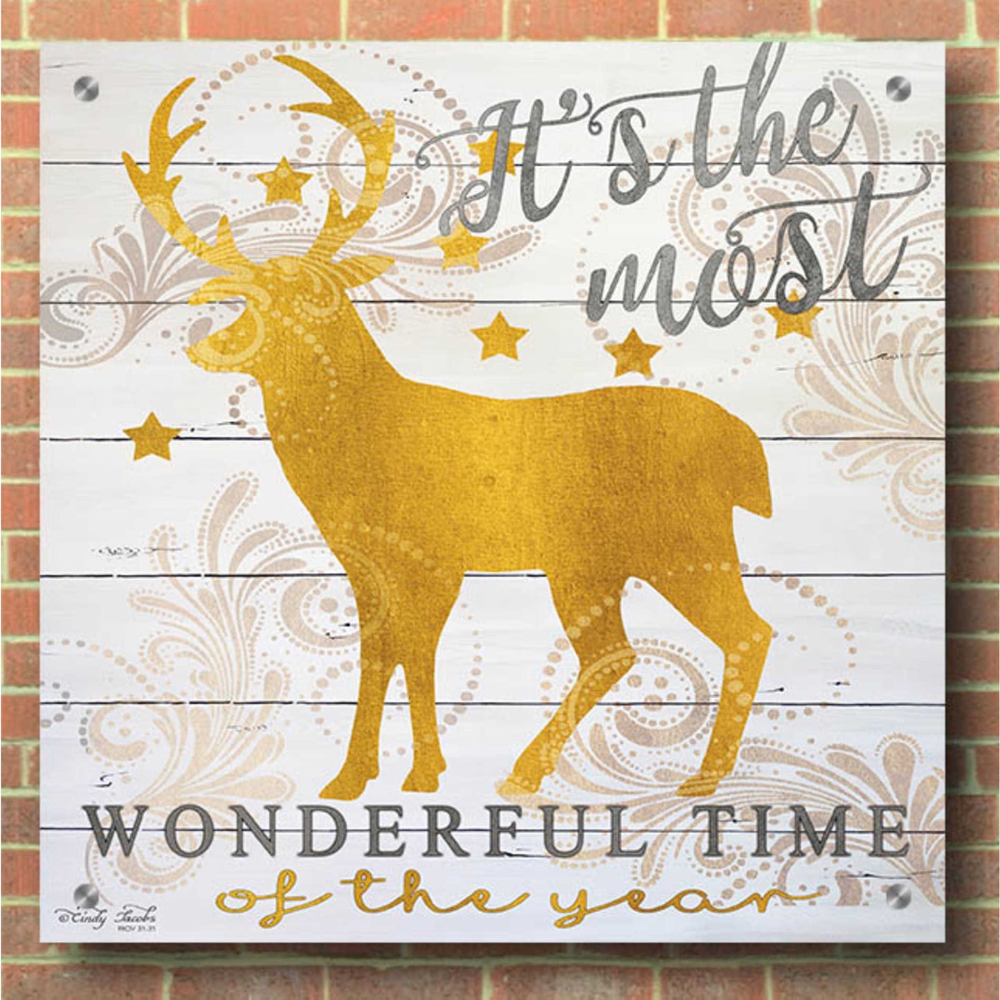 Epic Art 'It's the Most Wonderful Time Deer' by Cindy Jacobs, Acrylic Glass Wall Art