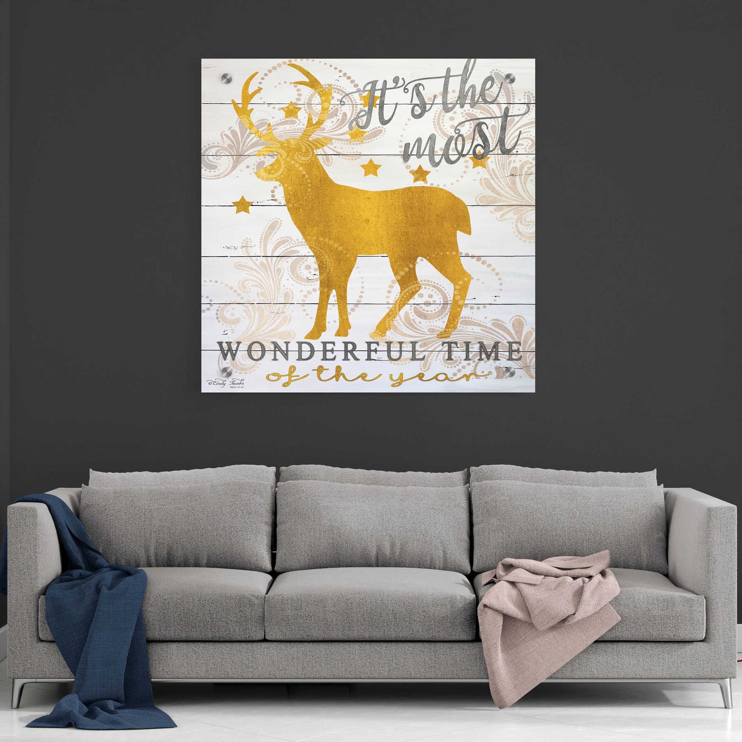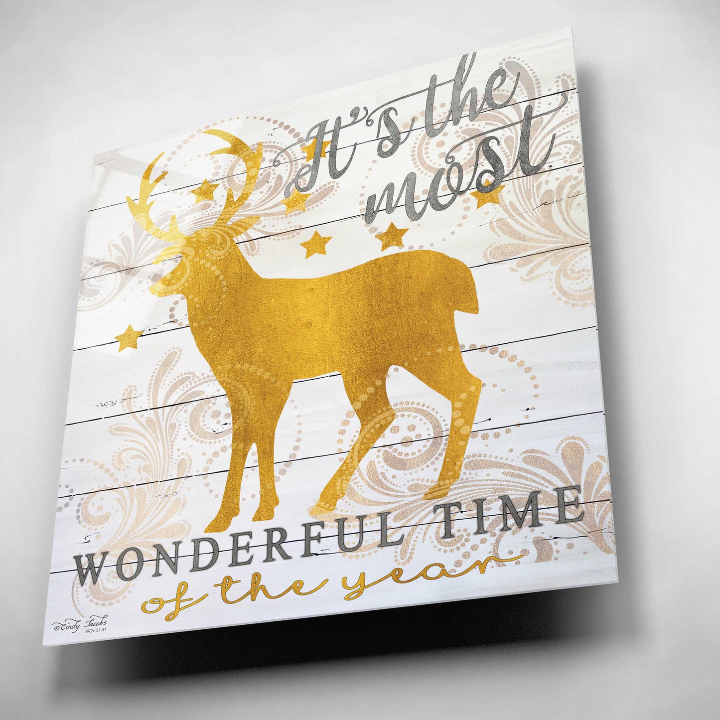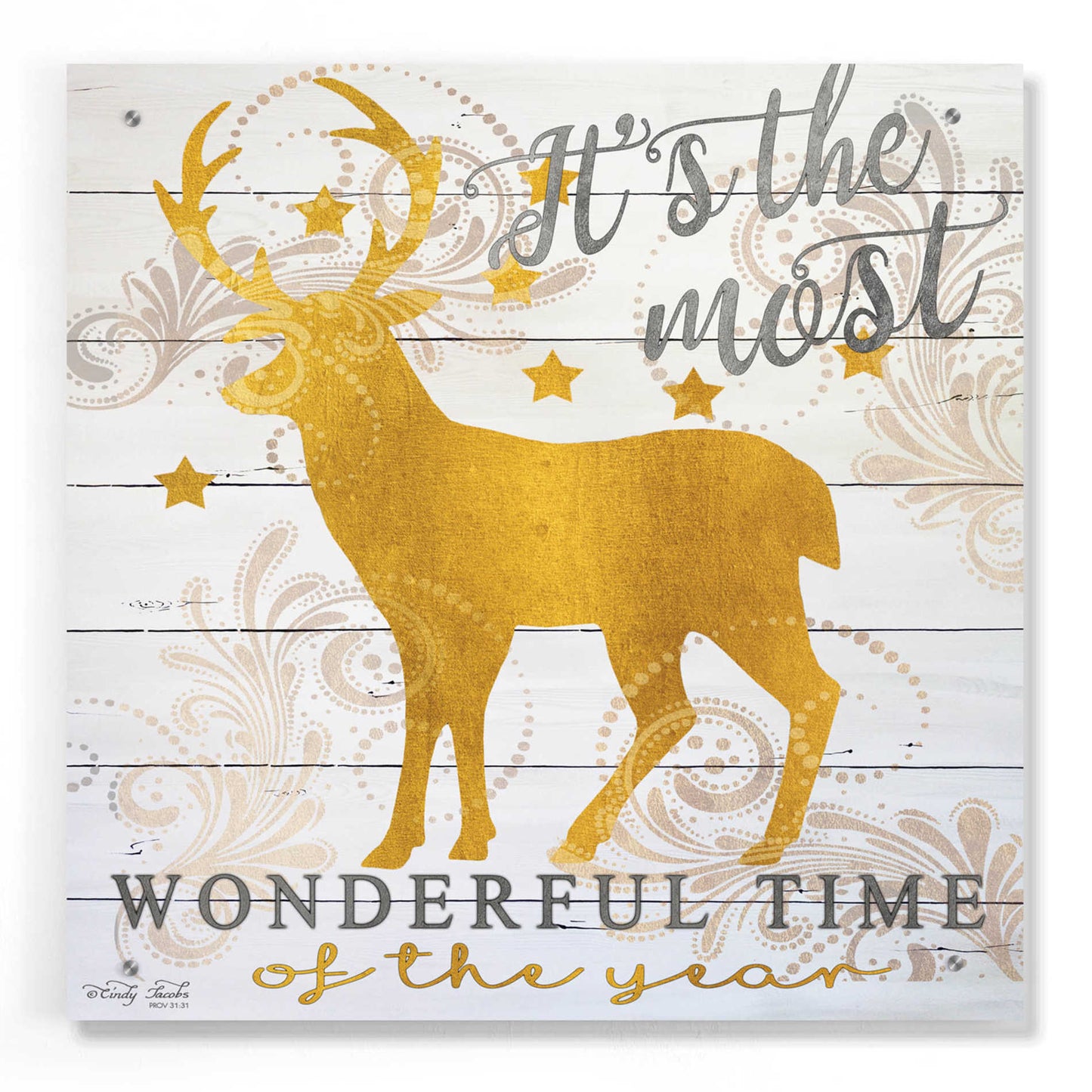 Epic Art 'It's the Most Wonderful Time Deer' by Cindy Jacobs, Acrylic Glass Wall Art