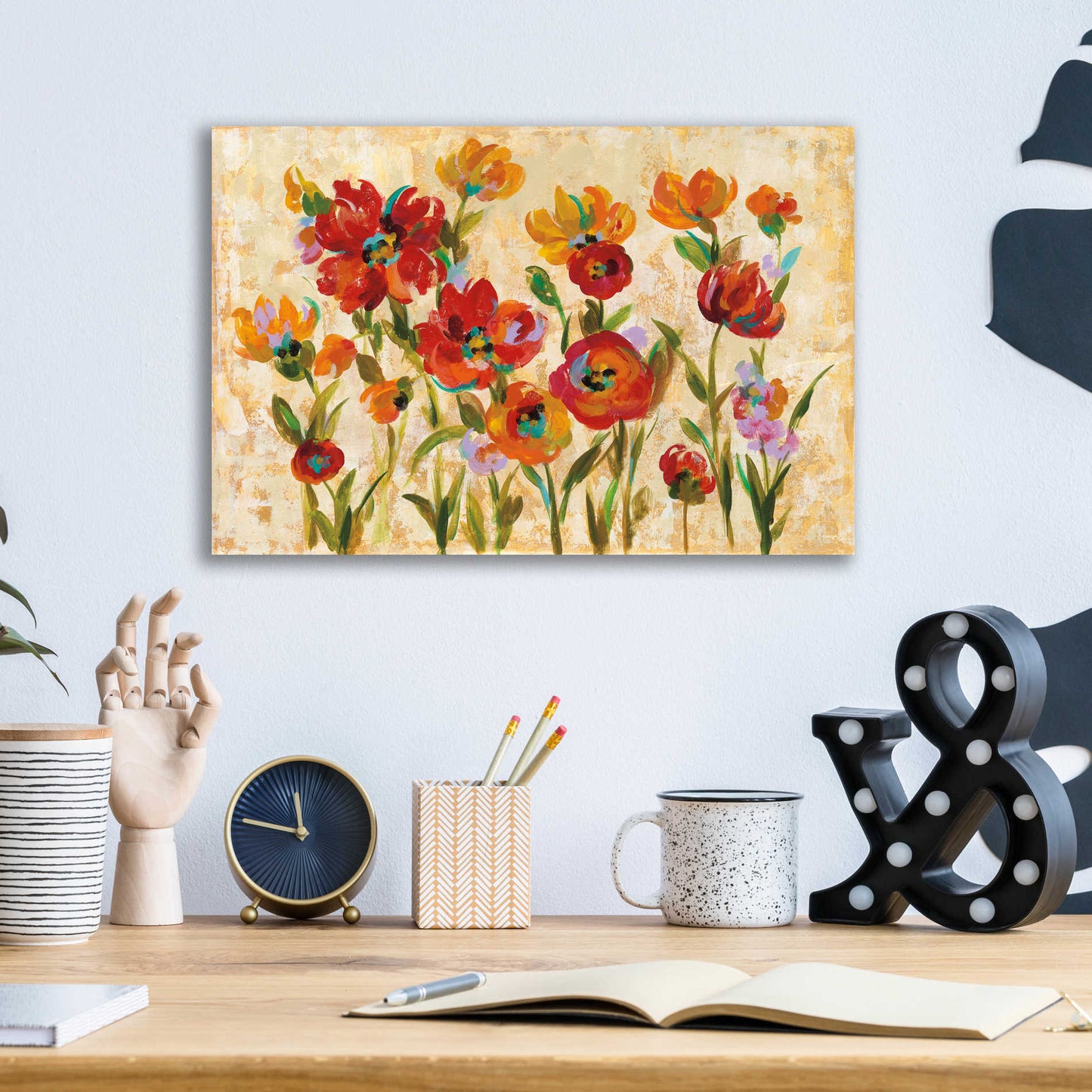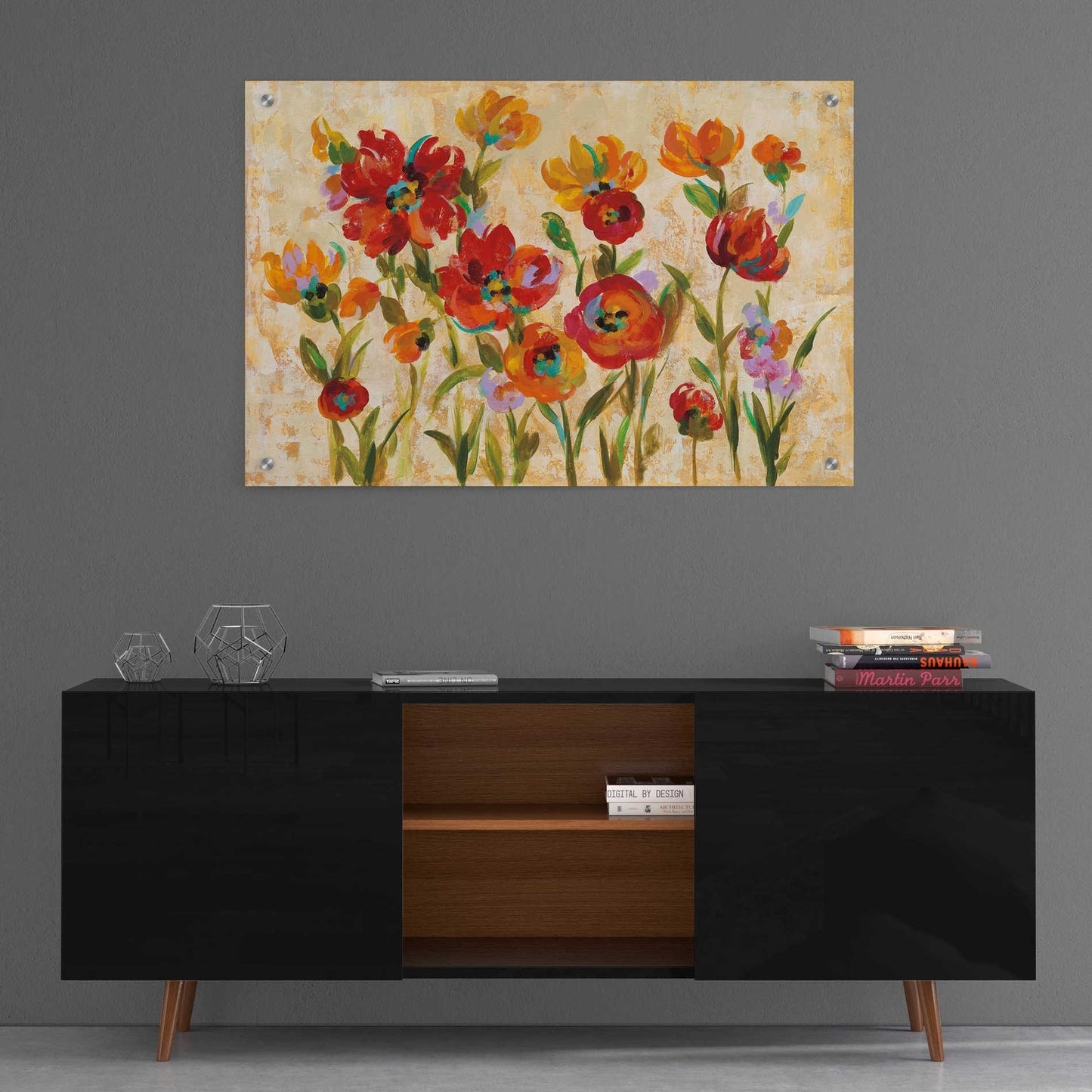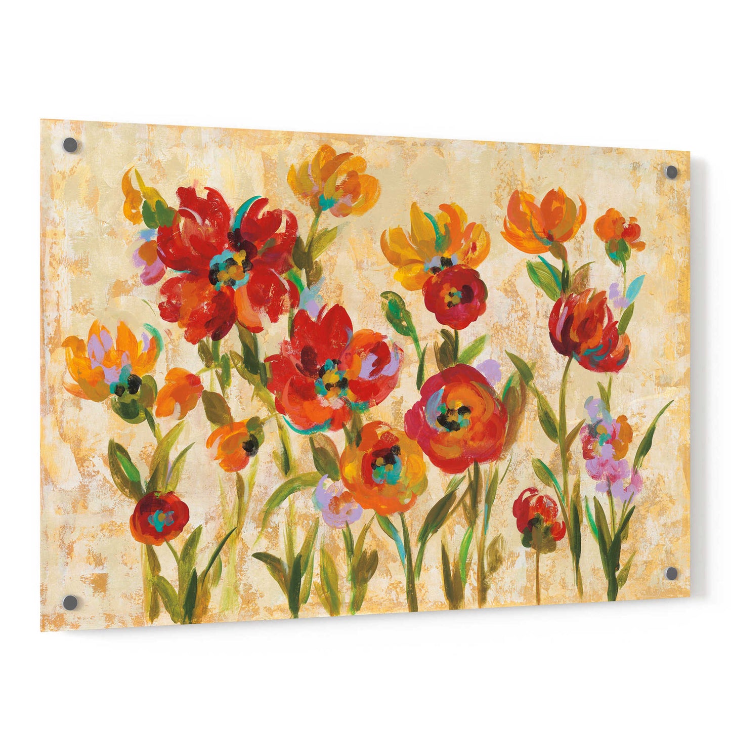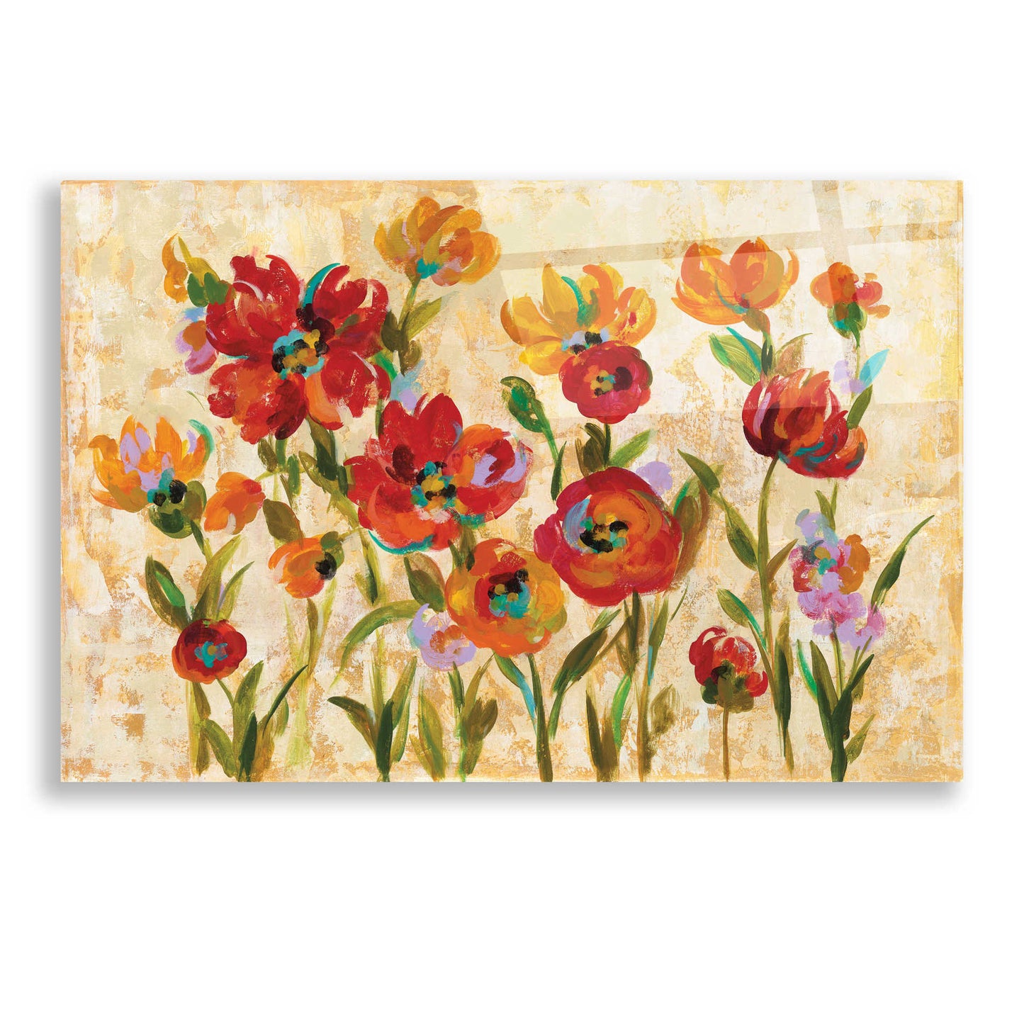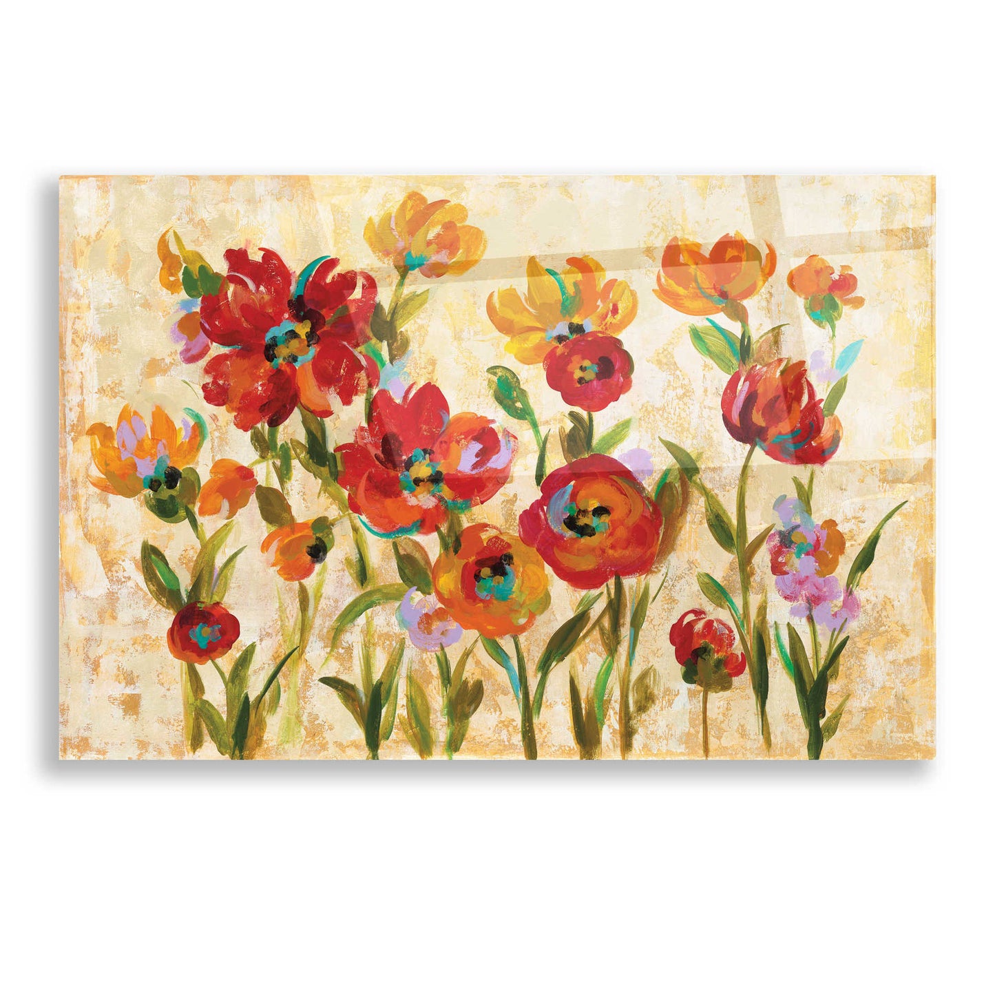 "July in the Garden I" by Silvia Vassileva. Silvia Vassileva pursued her love of art at the Academy of Fine Art in Bulgaria, where she earned both her bachelor's and master's degrees. She spent six years painting and exhibiting her work in Japan before moving to the U.S. Silvia describes her style as very free and bold. She makes her paintings come alive by using contrast and unusual color palettes. Silvia's home studio, which she designed herself, is bright, contemporary and minimalist. Acrylic wall art looks amazing in your home or business. Printed on the back of the acrylic giving it depth and easy maintenance. The highly durable and hard-to-damage qualities make high definition acrylic the ideal wall art for hotels, rental properties, and restaurants. Now Epic Art brings you unmatched value in contemporary wall decor for your home as well. From small sizes to extra large sizes, it is easy to hang, won't shatter like glass if it ever falls down, and is easy to maintain. Simply dust it off or use a damp soft cloth for cleaning.