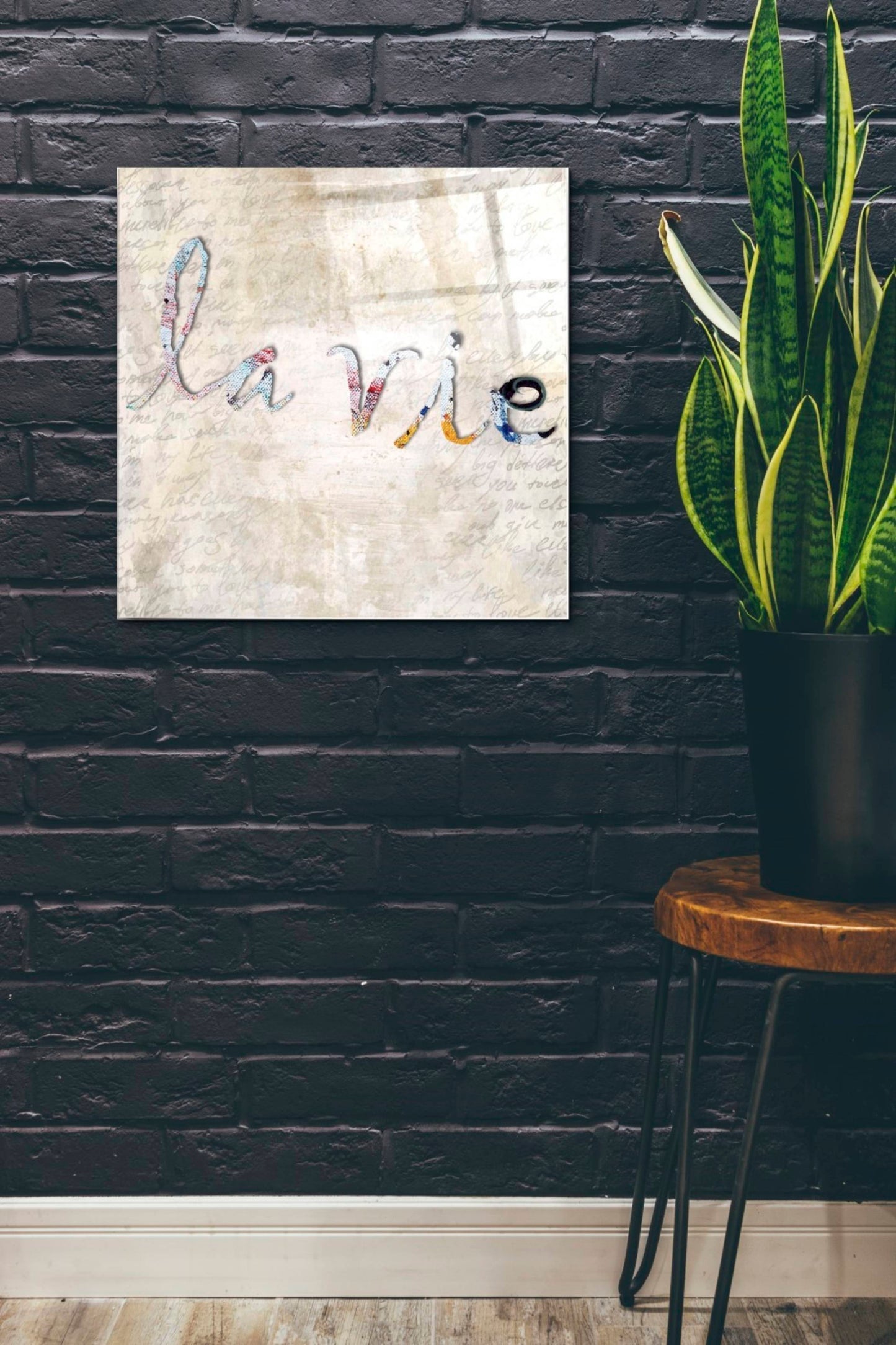 "La Vie" by Karen Smith printed on crystal clear acrylic glass. Karen is a self-taught digital artist in Sheffield, South Yorkshire. As a professional vocalist and published author, it is Banksy"s street art, that inspired her to work in the commercial art industry. She has taken various commissions from music and performing arts organizations. She has also sold her work, "City of Sheffield" via Yorkshire Pantry, York and Henderson"s Relish in Sheffield. Acrylic wall art looks amazing in your home or business. Printed on the back of the acrylic giving it depth and easy maintenance. The super durable and hard-to-damage qualities make it the ideal wall art for hotels, rental properties, and restaurants. Now Epic Art brings it to you at unbelievably low prices making it very affordable for your home as well. From small sizes to extra large sizes, it is easy to hang, won"t shatter like glass if it ever falls down, and is easy to maintain. Simply dust it off or use a damp soft cloth for cleaning. For small sizes, mounting brackets and padded bumpers will be attached for simple hanging. For the larger sizes, pre-drilled holes and fitted metal standoffs are included for easy wall installation.