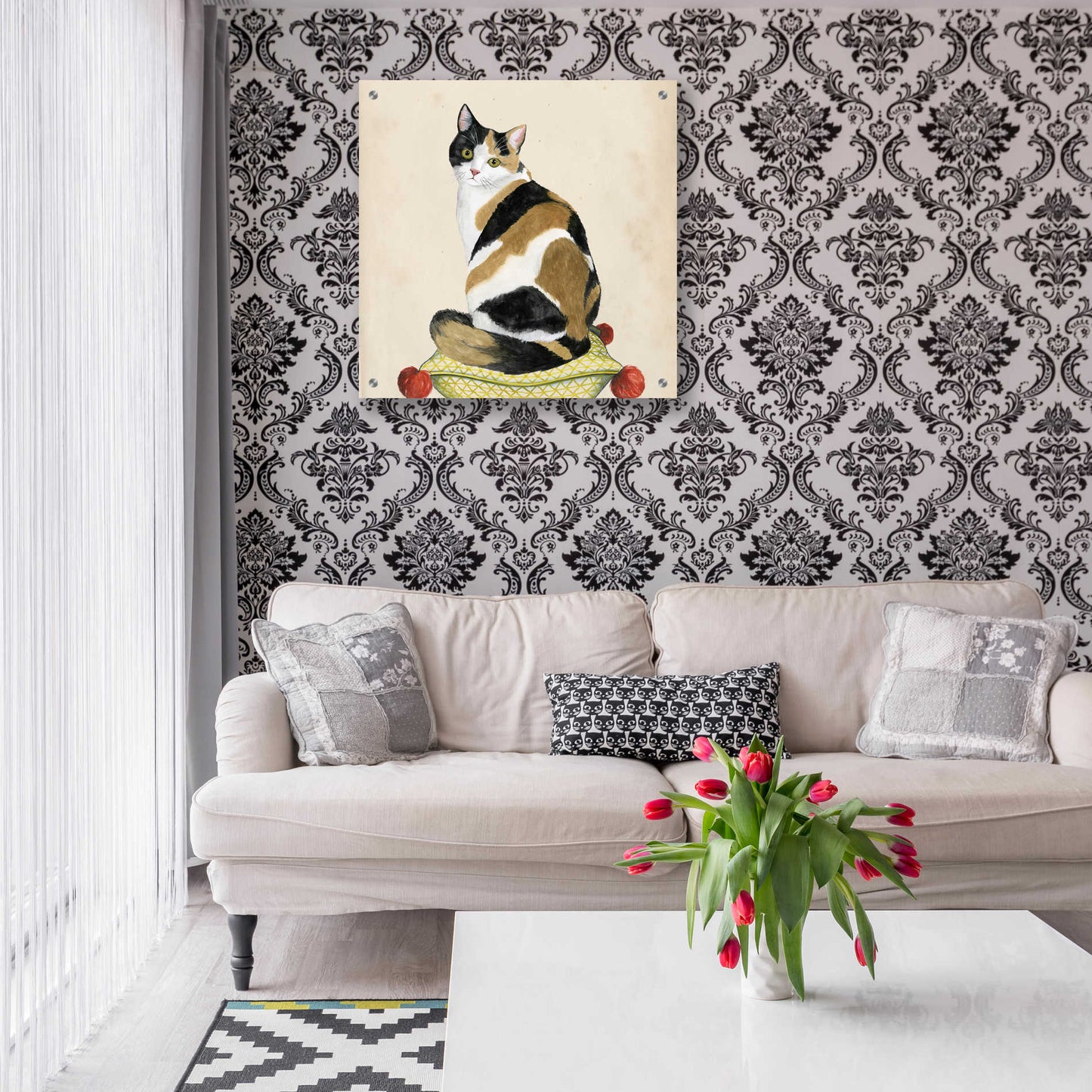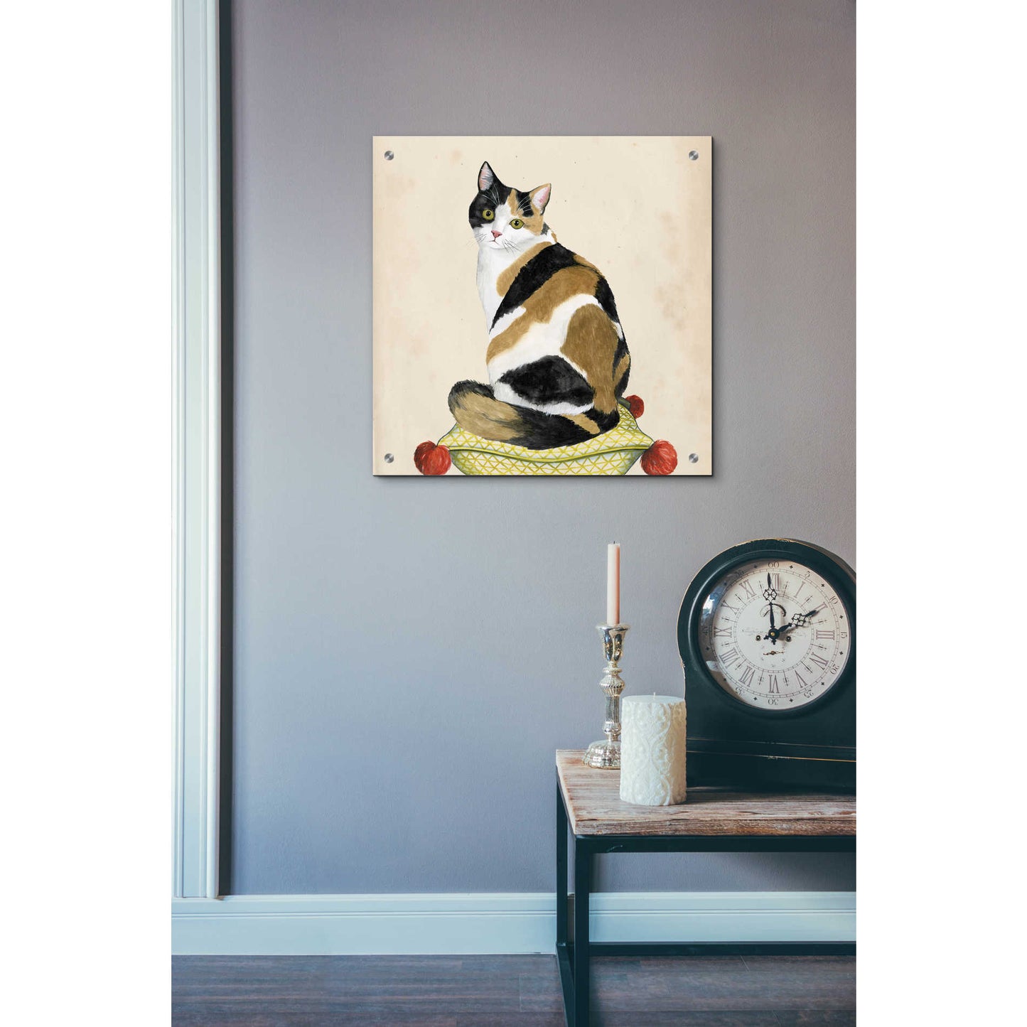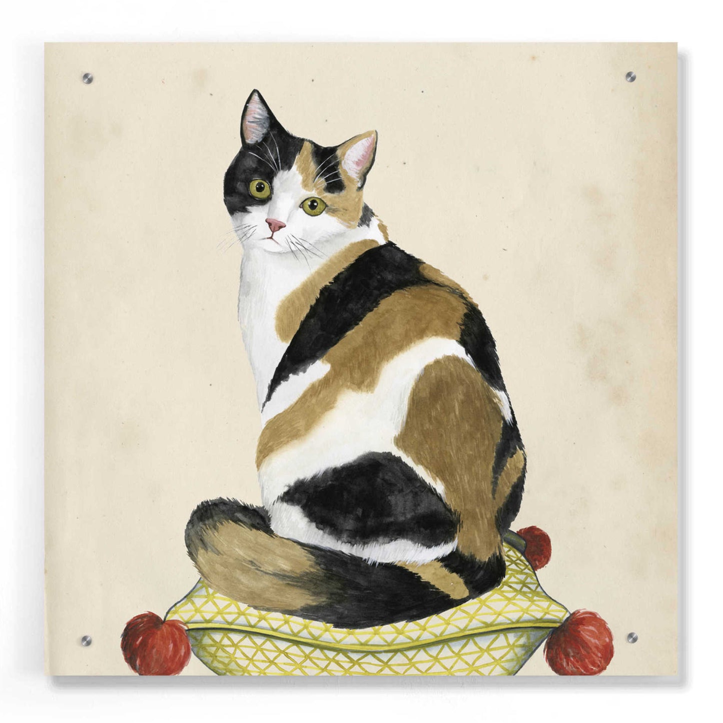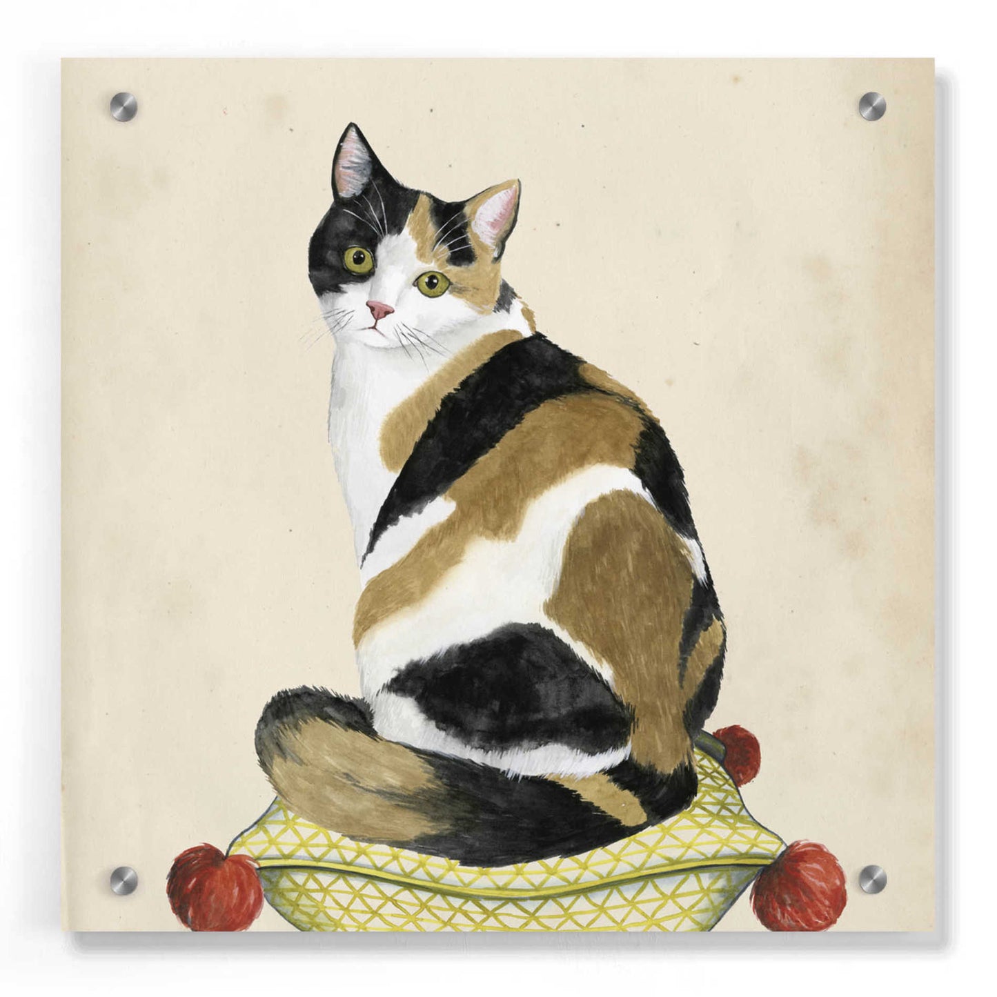 "Lady Cat III" by Grace Popp. Grace Popp"s primary medium has become watercolor, which she periodically supplements with other materials. She is inspired" by nature, films, history, current events, and other artists both past and present. Acrylic wall art looks amazing in your home or business. Printed on the back of the acrylic giving it depth and easy maintenance. The highly durable and hard-to-damage qualities make high definition acrylic the ideal wall art for hotels, rental properties, and restaurants. Now Epic Art brings you unmatched value in contemporary wall decor for your home as well. From small sizes to extra large sizes, it is easy to hang, won"t shatter like glass if it ever falls down, and is easy to maintain. Simply dust it off or use a damp soft cloth for cleaning.