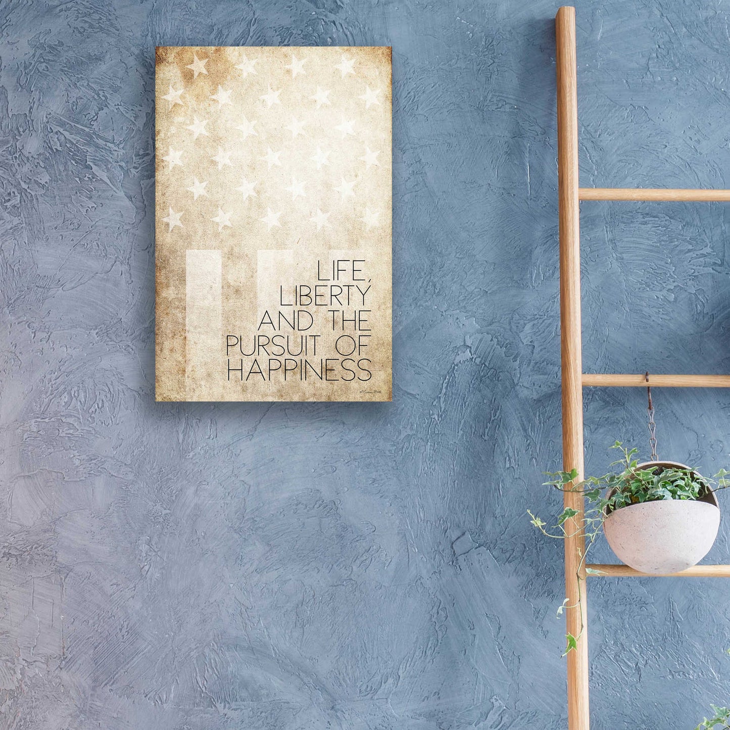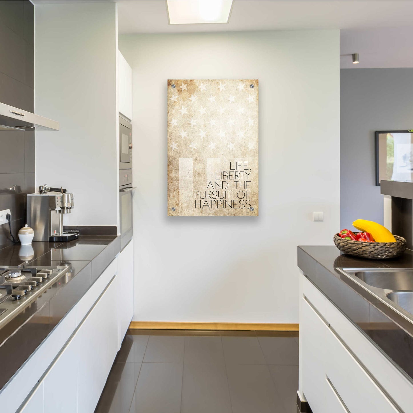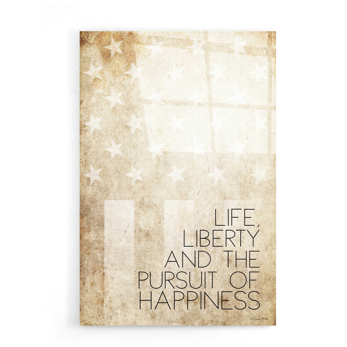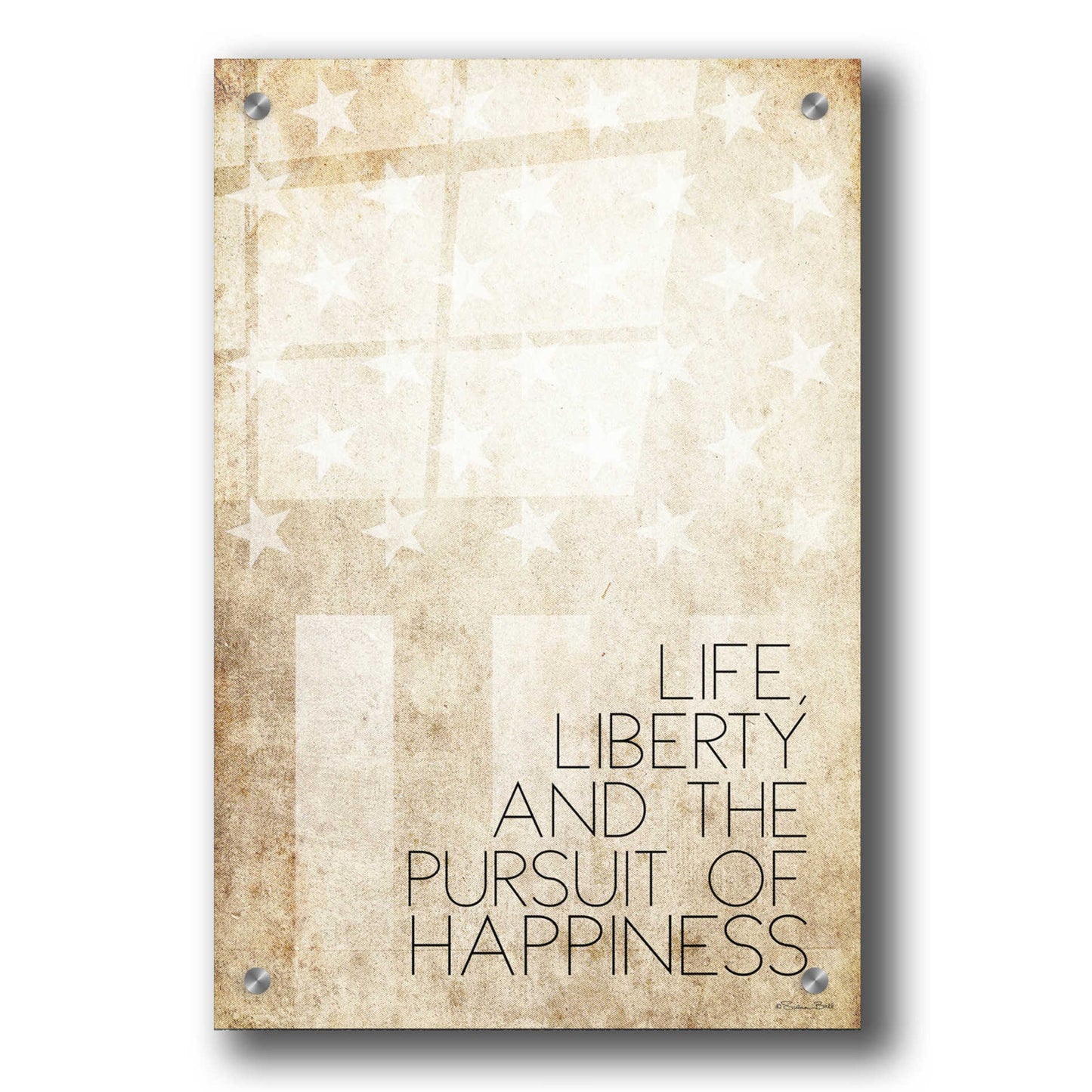 "Life, Liberty and Happiness" by Susan Ball. Susan discovered her love for art when she began tole painting with her mom in high school. Several craft shows and product lines later, she discovered her niche in inspirational, typography art. After battling breast cancer, she creates art to motivate, encourage, and inspire people as well as appreciate the little things in life. Acrylic wall art looks amazing in your home or business. Printed on the back of the acrylic giving it depth and easy maintenance. The highly durable and hard-to-damage qualities make high definition acrylic the ideal wall art for hotels, rental properties, and restaurants. Now Epic Art brings you unmatched value in contemporary wall decor for your home as well. From small sizes to extra large sizes, it is easy to hang, won't shatter like glass if it ever falls down, and is easy to maintain. Simply dust it off or use a damp soft cloth for cleaning.
