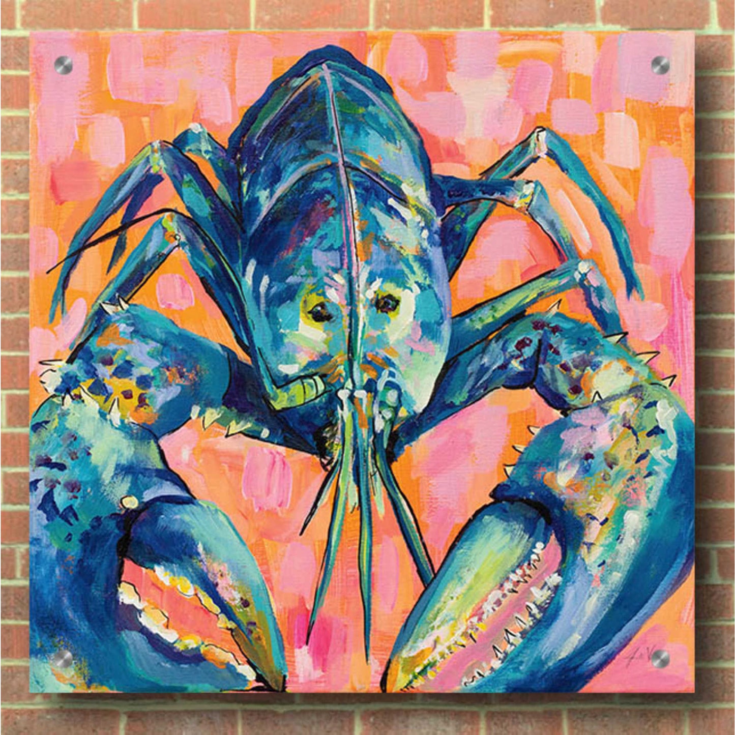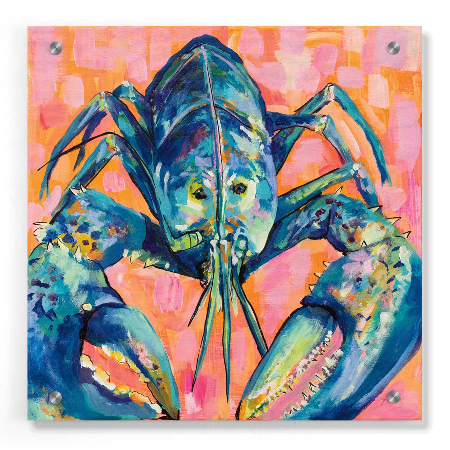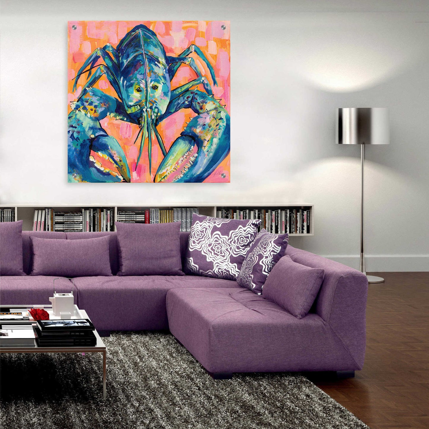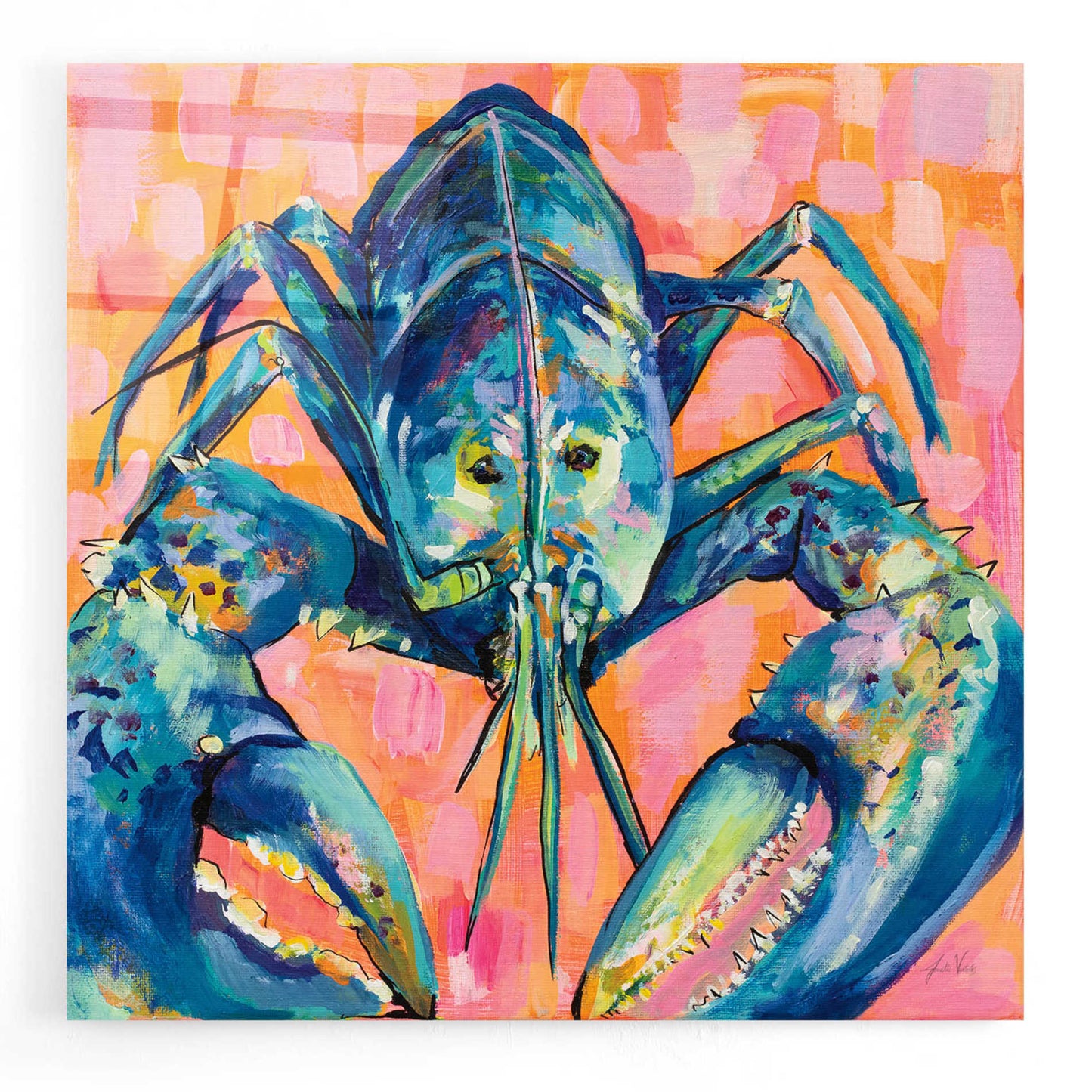 "Lilly Lobster I" by Jeanette Vertentes. Jeanette's contemporary paintings pay homage to North Stonington, Connecticut, where she lives with her dogs and gardens. She adds each artwork vibrancy with the use of color, texture, movement and bold compositions. As a child, she trained under the painter John Lutes. She earned a Bachelor of Fine Art with a concentration in painting from Rhode Island College. You can find Jeanette's work displayed throughout spring and summer. She teaches throughout the winter and works on commissions worldwide. Acrylic wall art looks amazing in your home or business. Printed on the back of the acrylic giving it depth and easy maintenance. The highly durable and hard-to-damage qualities make high definition acrylic the ideal wall art for hotels, rental properties, and restaurants. Now Epic Art brings you unmatched value in contemporary wall decor for your home as well. From small sizes to extra large sizes, it is easy to hang, won't shatter like glass if it ever falls down, and is easy to maintain. Simply dust it off or use a damp soft cloth for cleaning.
