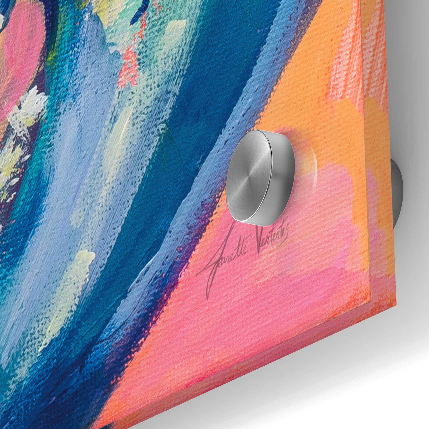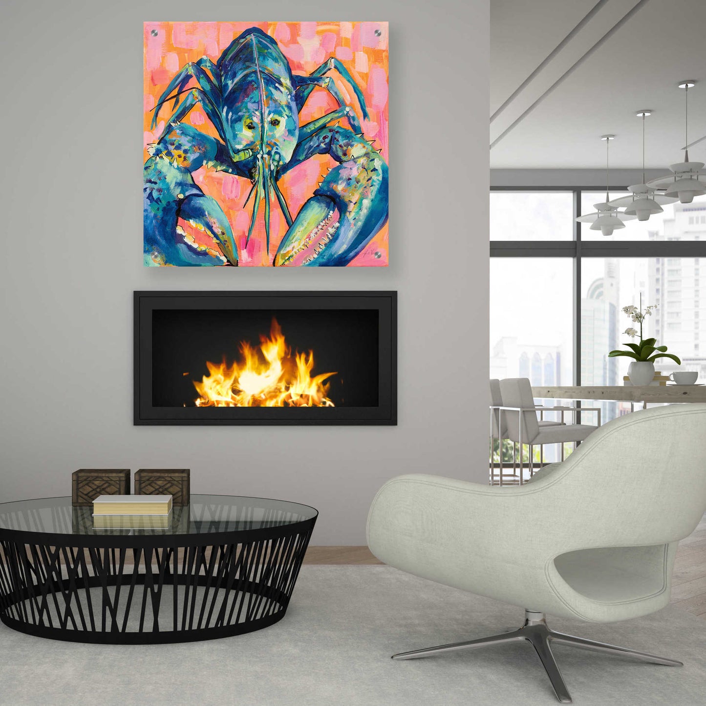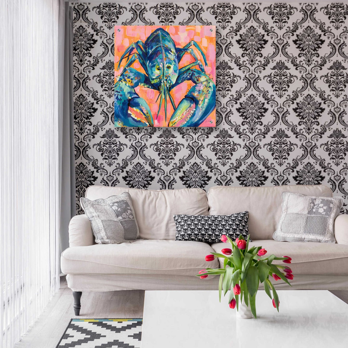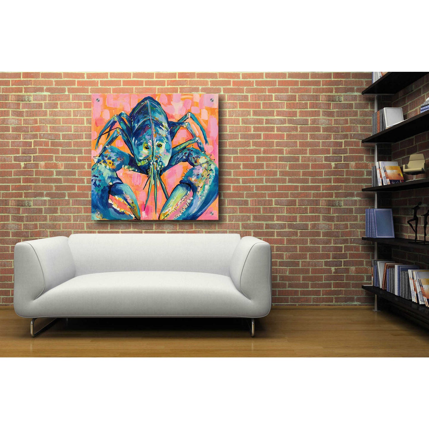 "Lilly Lobster I" by Jeanette Vertentes. Jeanette's contemporary paintings pay homage to North Stonington, Connecticut, where she lives with her dogs and gardens. She adds each artwork vibrancy with the use of color, texture, movement and bold compositions. As a child, she trained under the painter John Lutes. She earned a Bachelor of Fine Art with a concentration in painting from Rhode Island College. You can find Jeanette's work displayed throughout spring and summer. She teaches throughout the winter and works on commissions worldwide. Acrylic wall art looks amazing in your home or business. Printed on the back of the acrylic giving it depth and easy maintenance. The highly durable and hard-to-damage qualities make high definition acrylic the ideal wall art for hotels, rental properties, and restaurants. Now Epic Art brings you unmatched value in contemporary wall decor for your home as well. From small sizes to extra large sizes, it is easy to hang, won't shatter like glass if it ever falls down, and is easy to maintain. Simply dust it off or use a damp soft cloth for cleaning.