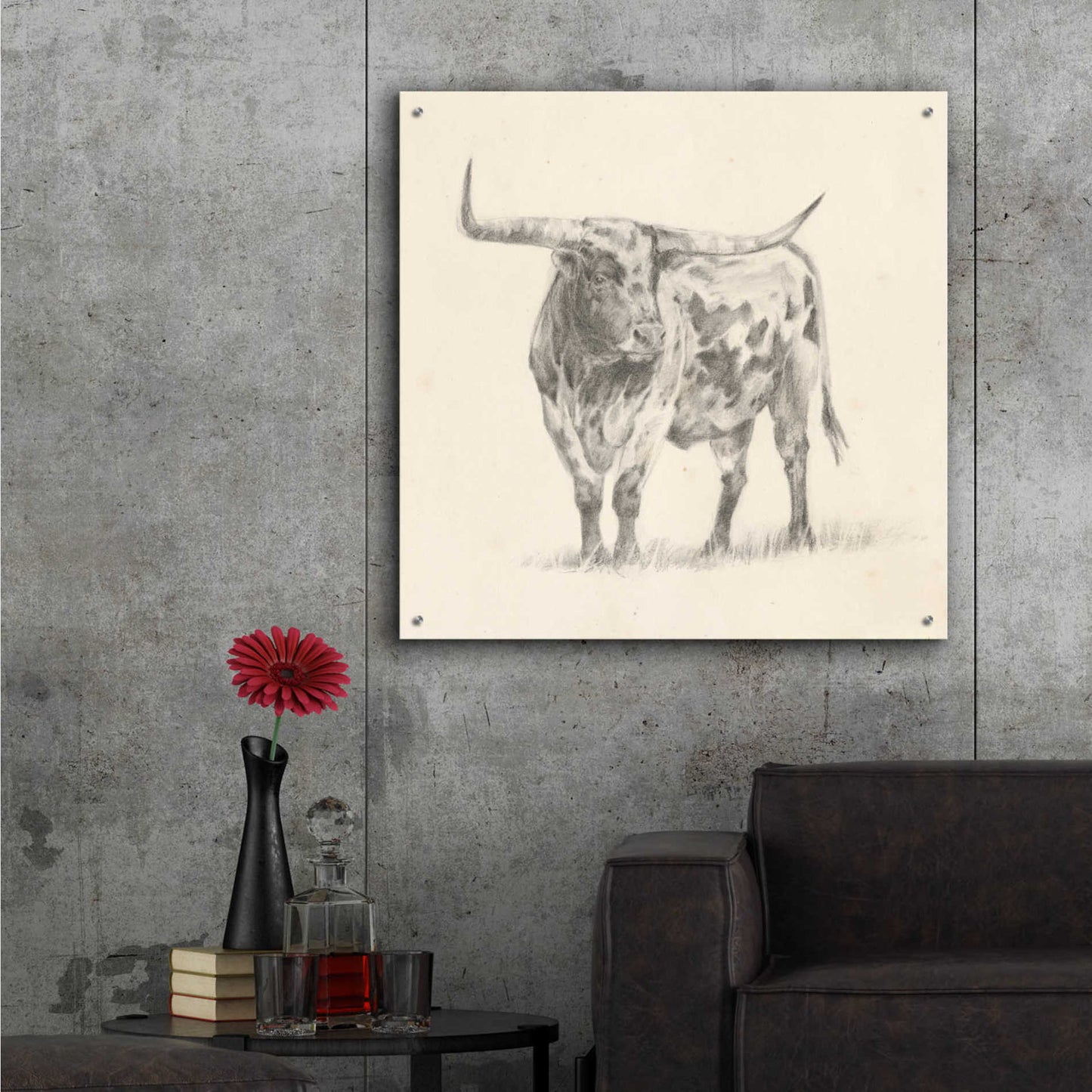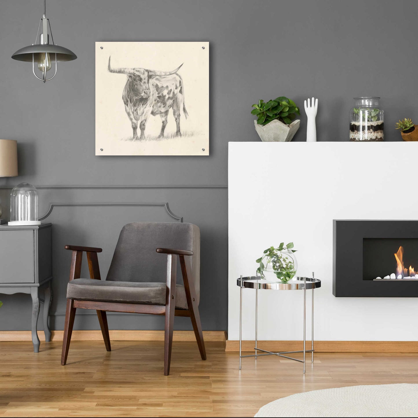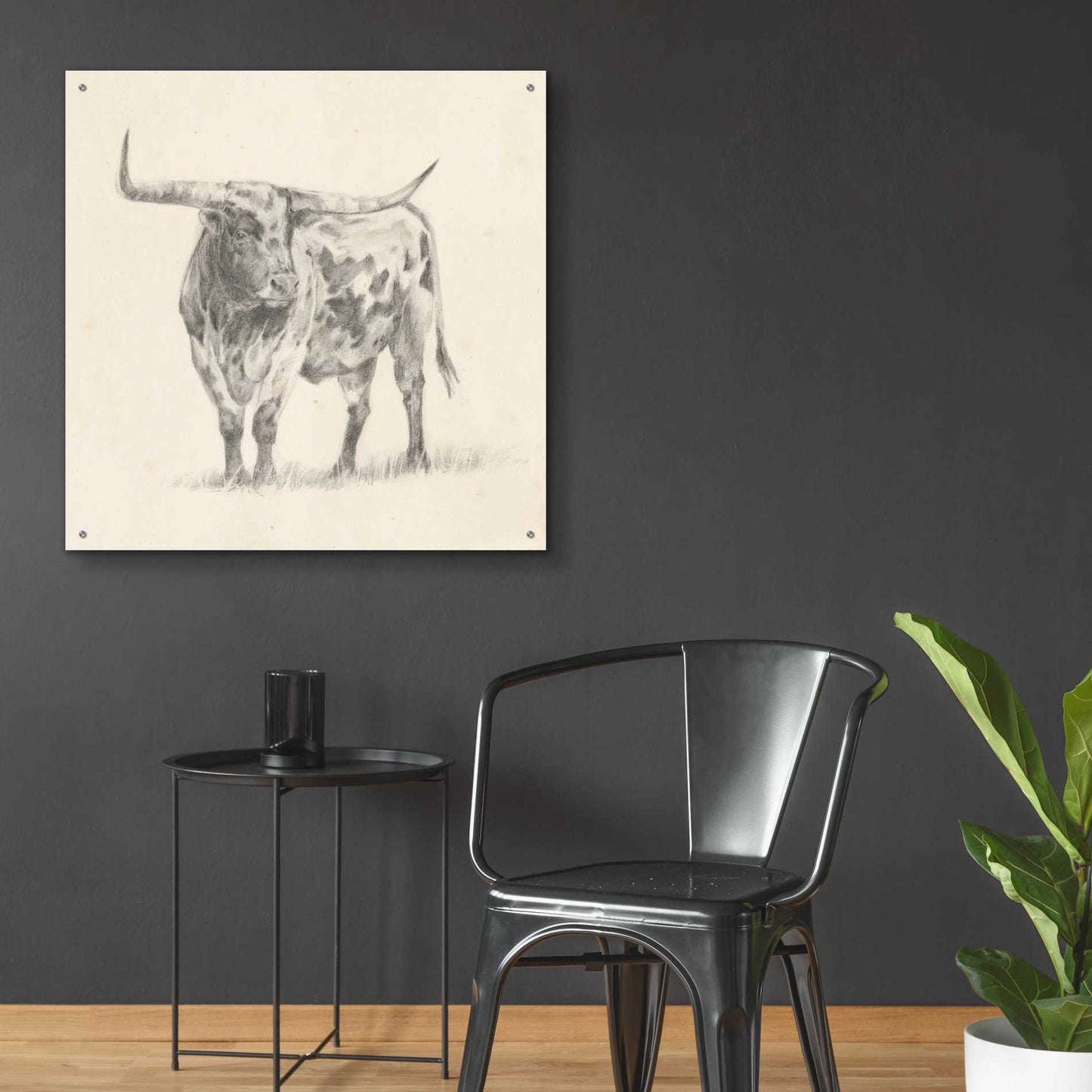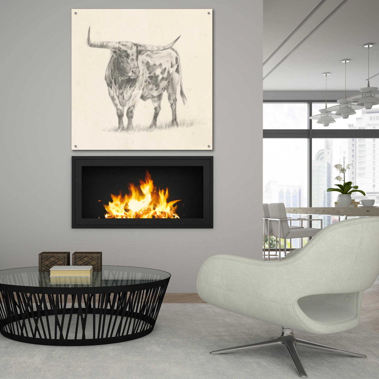 Epic Art 'Longhorn Steer Sketch II' by Ethan Harper, Acrylic Glass Wall Art