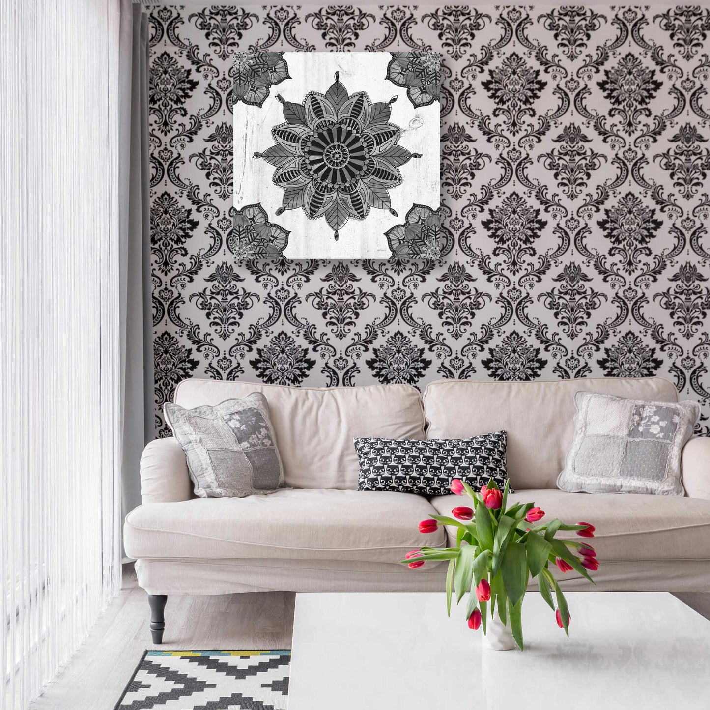 "Mandala Morning VI Black and White" by Ann Tavoletti.