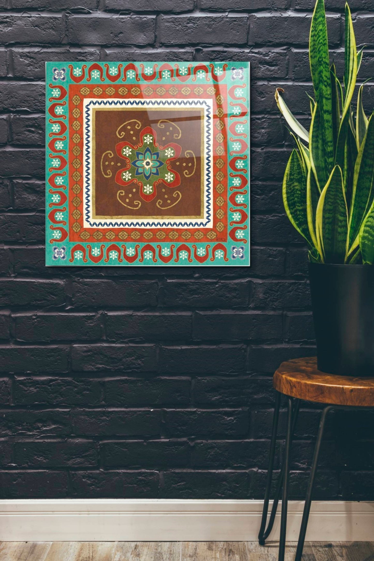 "Mexican Fiesta IV" by Veronique Charron printed on crystal clear acrylic glass.Veronique Charron is a French Canadian artist residing in Charlevoix, Quebec. The environment surrounding her country home provides the inspiration for her graphic designs. Although she had formally studied graphic art and design, Veronique"s style of artwork has evolved into a unique mixture of textures, colors, and fashionable flair. Acrylic wall art looks amazing in your home or business. Printed on the back of the acrylic giving it depth and easy maintenance. The super durable and hard-to-damage qualities make it the ideal wall art for hotels, rental properties, and restaurants. Now Epic Art brings it to you at unbelievably low prices making it very affordable for your home as well. From small sizes to extra large sizes, it is easy to hang, won"t shatter like glass if it ever falls down, and is easy to maintain. Simply dust it off or use a damp soft cloth for cleaning.For small sizes, mounting brackets and padded bumpers will be attached for simple hanging. For the larger sizes, pre-drilled holes and fitted metal standoffs are included for easy wall installation.