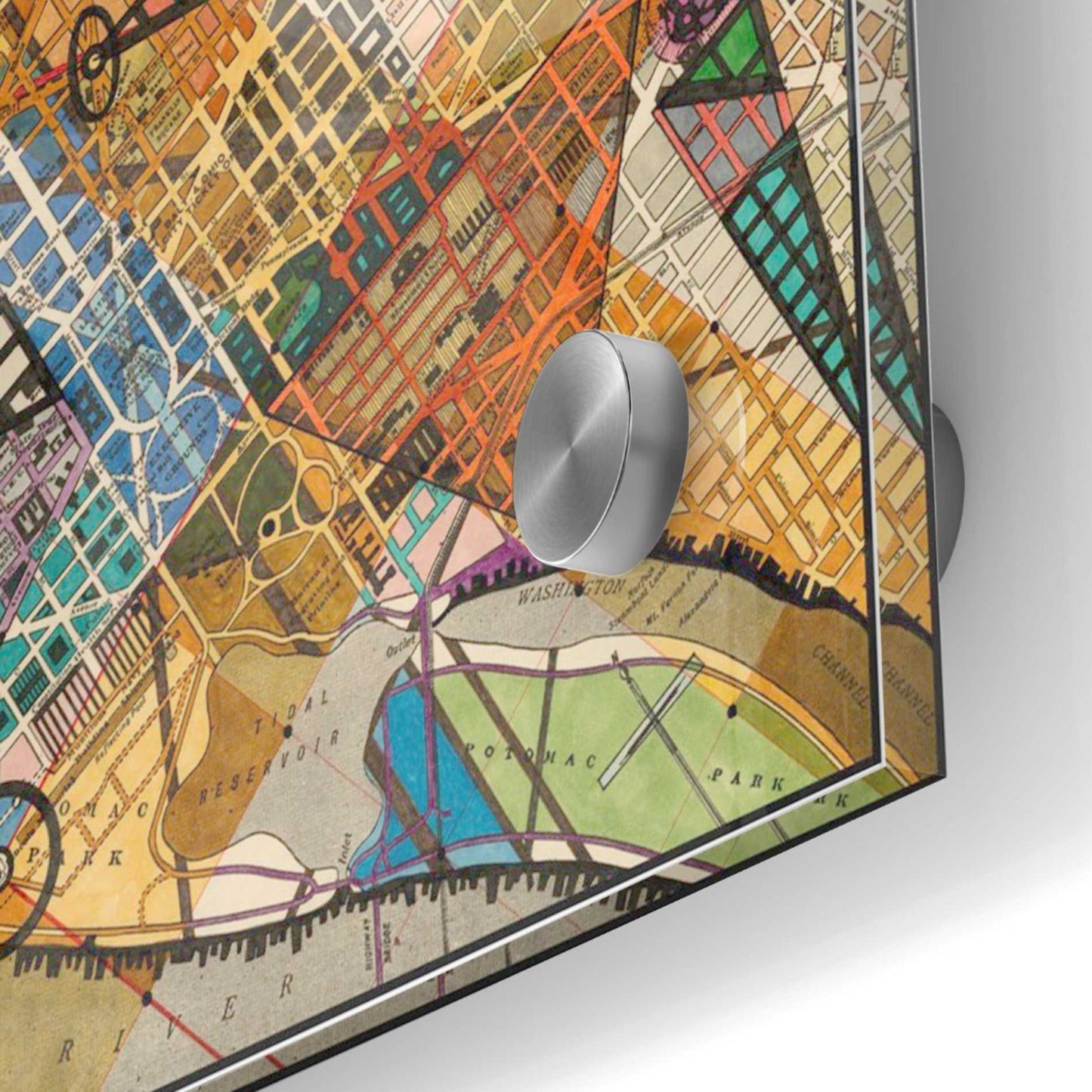 "Modern Map of D.C." by Nikki Galapon printed on crystal clear acrylic glass. Nikki Galapon is a visual artist based in Richmond, Virginia. She studied at the Virginia Tech School of Architecture + Design, then went on to receive a Master of Architecture from the Savannah College of Art and Design in 1994. She works in oil, acrylic, watercolor, ink, mixed media and collage, combining methods and experimenting with new ones. Architectural training is apparent in many of her works, often creating a system or set of rules to serve as the underlying structure for the piece to be developed. Nikki"s work ranges from vibrant, textured, abstract, expressionist oil paintings to highly detailed drawings of geometric constructions reminiscent of architectural deconstructivism. Acrylic wall art looks amazing in your home or business. Printed on the back of the acrylic giving it depth and easy maintenance. The super durable and hard-to-damage qualities make it the ideal wall art for hotels, rental properties, and restaurants. Now Epic Art brings it to you at unbelievably low prices making it very affordable for your home as well. From small sizes to extra large sizes, it is easy to hang, won"t shatter like glass if it ever falls down, and is easy to maintain. Simply dust it off or use a damp soft cloth for cleaning. For small sizes, mounting brackets and padded bumpers will be attached for simple hanging. For the larger sizes, pre-drilled holes and fitted metal standoffs are included for easy wall installation.
