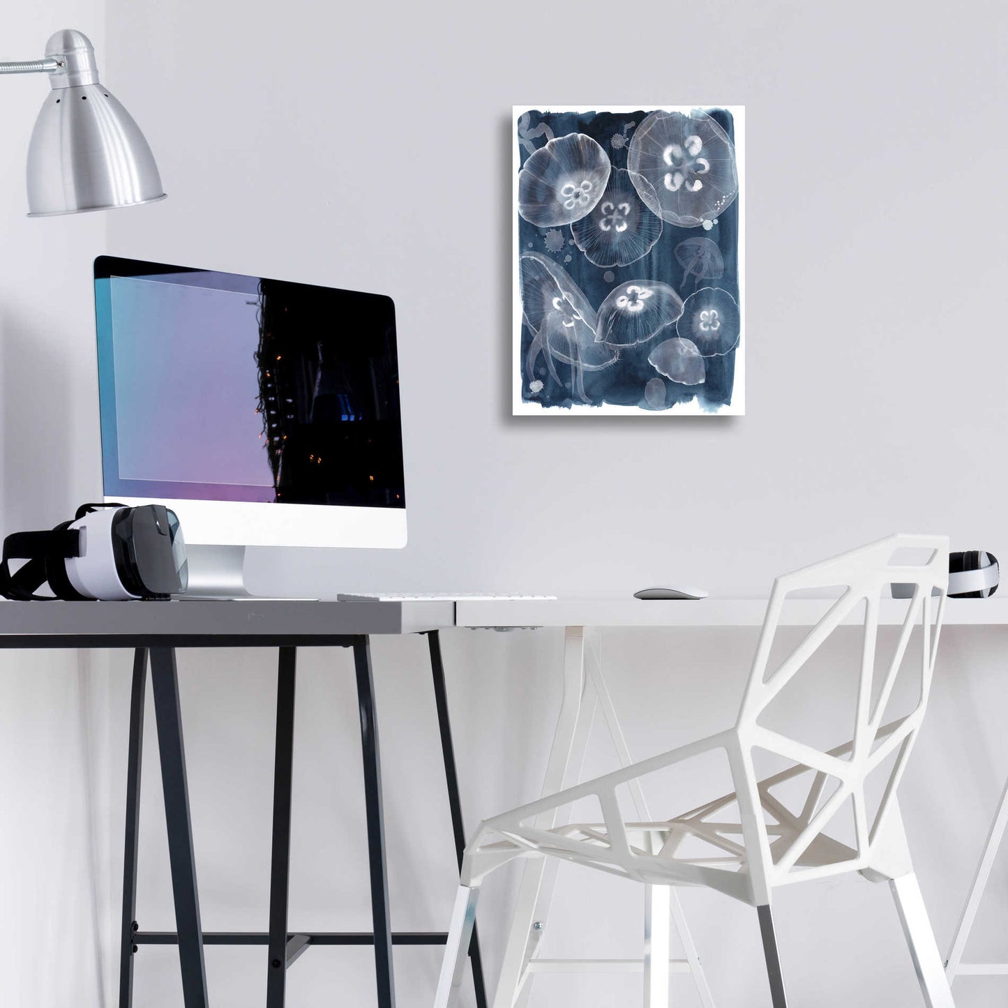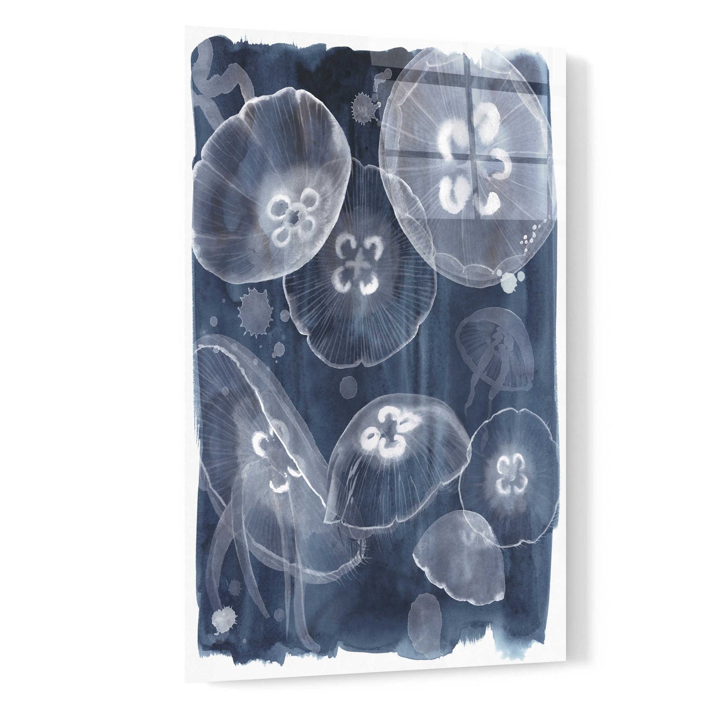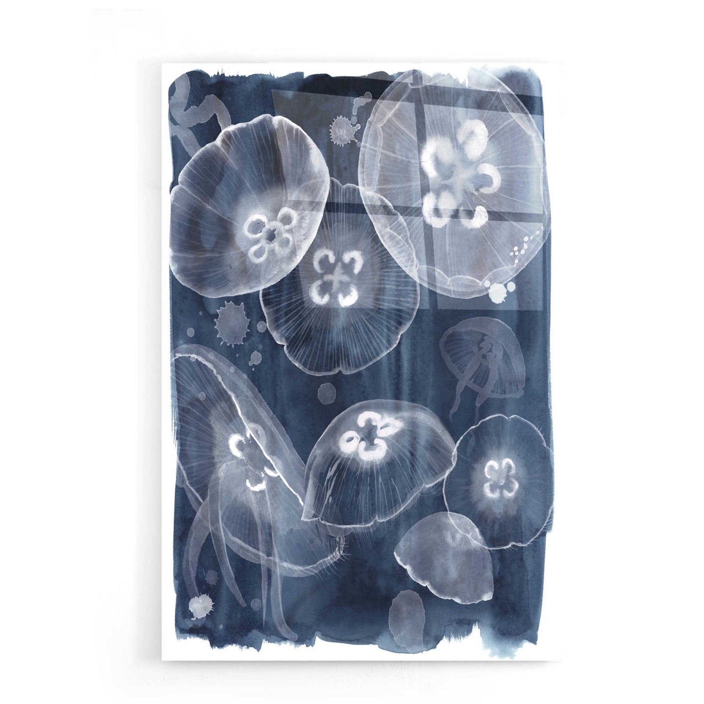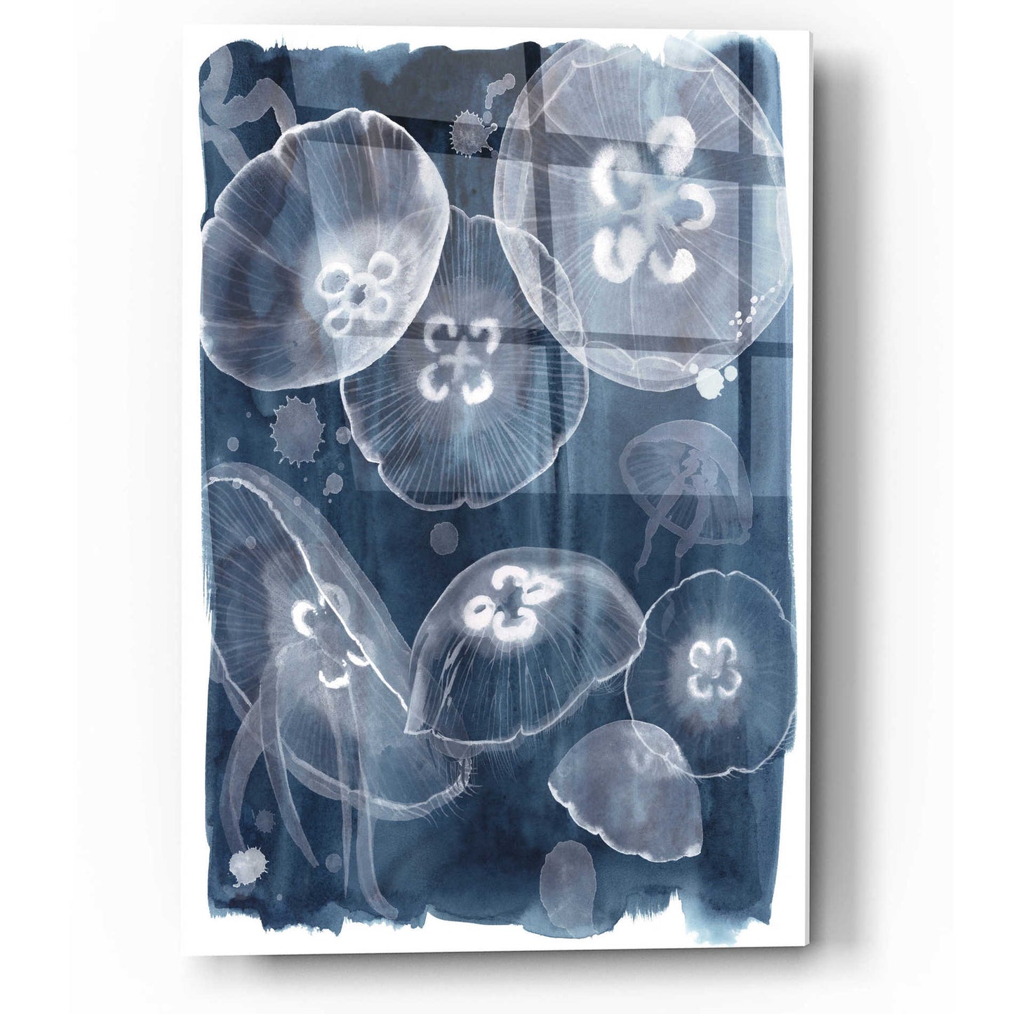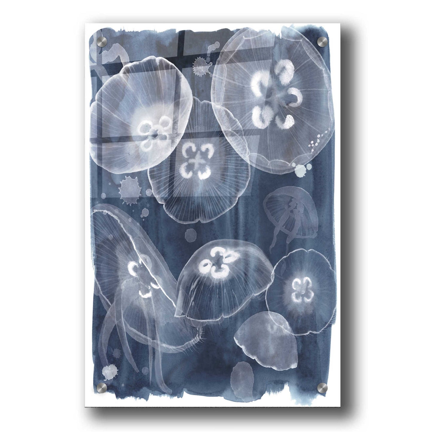 "Moon Jellies II" by Grace Popp. Grace Popp"s primary medium has become watercolor, which she periodically supplements with other materials. She is inspired" by nature, films, history, current events, and other artists both past and present. Acrylic wall art looks amazing in your home or business. Printed on the back of the acrylic giving it depth and easy maintenance. The highly durable and hard-to-damage qualities make high definition acrylic the ideal wall art for hotels, rental properties, and restaurants. Now Epic Art brings you unmatched value in contemporary wall decor for your home as well. From small sizes to extra large sizes, it is easy to hang, won"t shatter like glass if it ever falls down, and is easy to maintain. Simply dust it off or use a damp soft cloth for cleaning.