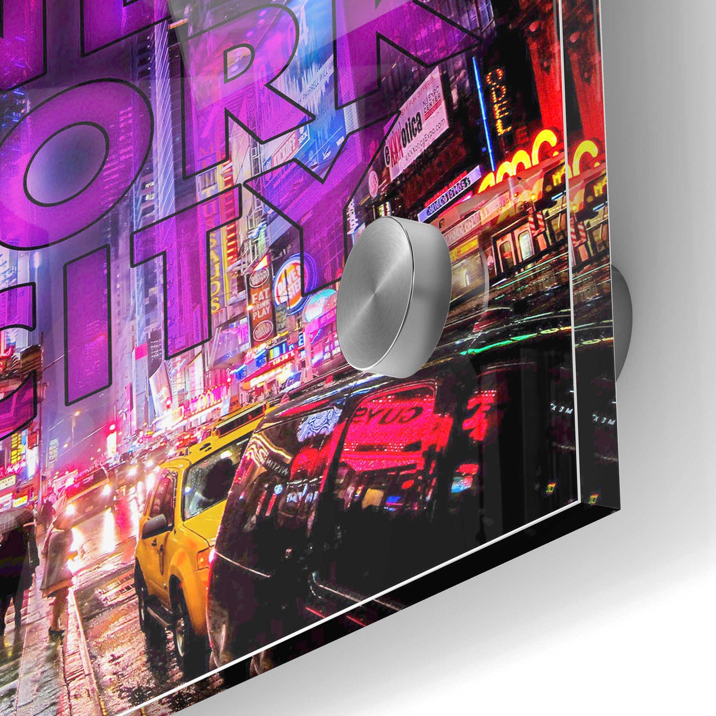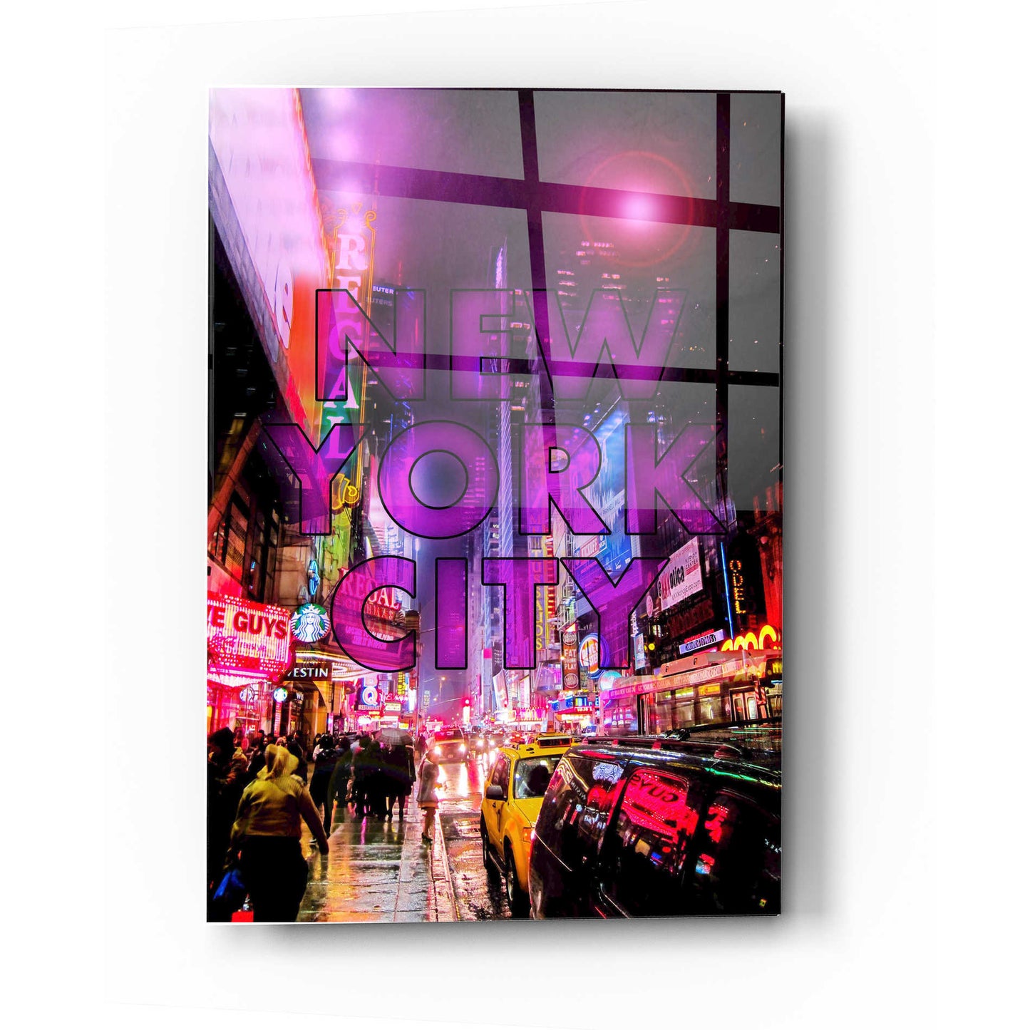 "New York City Color" by Nicklas Gustafsson printed on crystal clear acrylic glass. A distorted photograph of a Manhattan night scene comes to life with the hustle and bustle of a big city. Nicklas Gustafsson is a graphic designer and photographer from Stockholm, Sweden. He combines photography with drawing and different digital techniques. He is constantly learning and improving new skills/techniques to add to his skill set. Acrylic wall art looks amazing in your home or business. Printed on the back of the acrylic giving it depth and easy maintenance. The super durable and hard-to-damage qualities make it the ideal wall art for hotels, rental properties, and restaurants. Now Epic Art brings it to you at unbelievably low prices making it very affordable for your home as well. From small sizes to extra large sizes, it is easy to hang, won"t shatter like glass if it ever falls down, and is easy to maintain. Simply dust it off or use a damp soft cloth for cleaning. For small sizes, mounting brackets and padded bumpers will be attached for simple hanging. For the larger sizes, pre-drilled holes and fitted metal standoffs are included for easy wall installation.