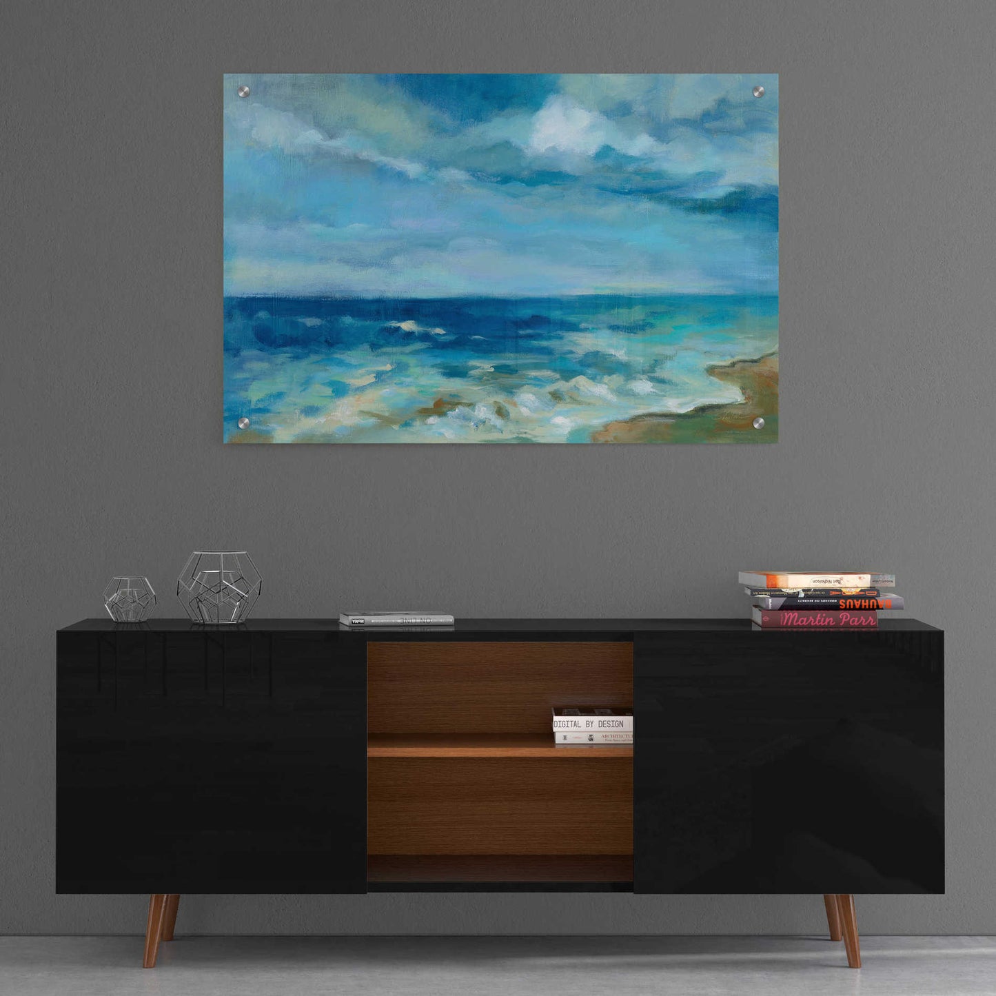 "Ocean Waves" by Silvia Vassileva. Silvia Vassileva pursued her love of art at the Academy of Fine Art in Bulgaria, where she earned both her bachelor's and master's degrees. She spent six years painting and exhibiting her work in Japan before moving to the U.S. Silvia describes her style as very free and bold. She makes her paintings come alive by using contrast and unusual color palettes. Silvia's home studio, which she designed herself, is bright, contemporary and minimalist. Acrylic wall art looks amazing in your home or business. Printed on the back of the acrylic giving it depth and easy maintenance. The highly durable and hard-to-damage qualities make high definition acrylic the ideal wall art for hotels, rental properties, and restaurants. Now Epic Art brings you unmatched value in contemporary wall decor for your home as well. From small sizes to extra large sizes, it is easy to hang, won't shatter like glass if it ever falls down, and is easy to maintain. Simply dust it off or use a damp soft cloth for cleaning.