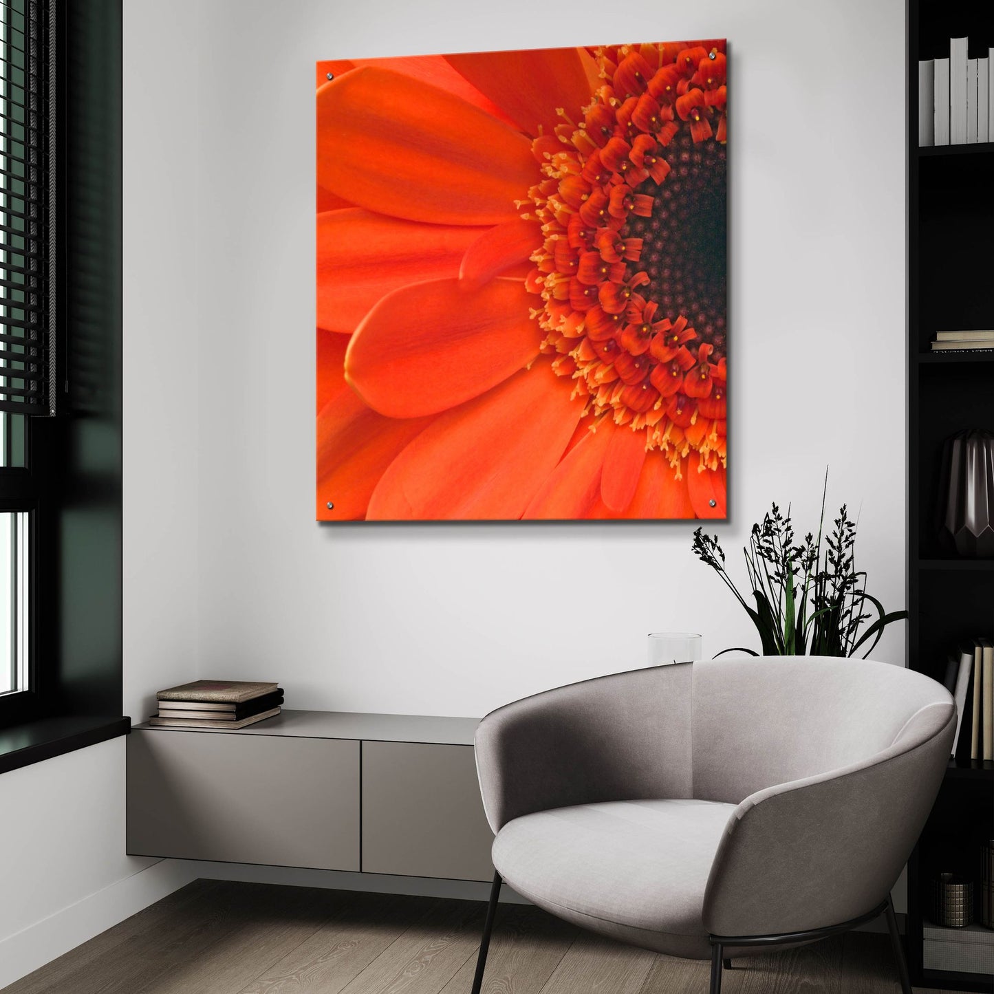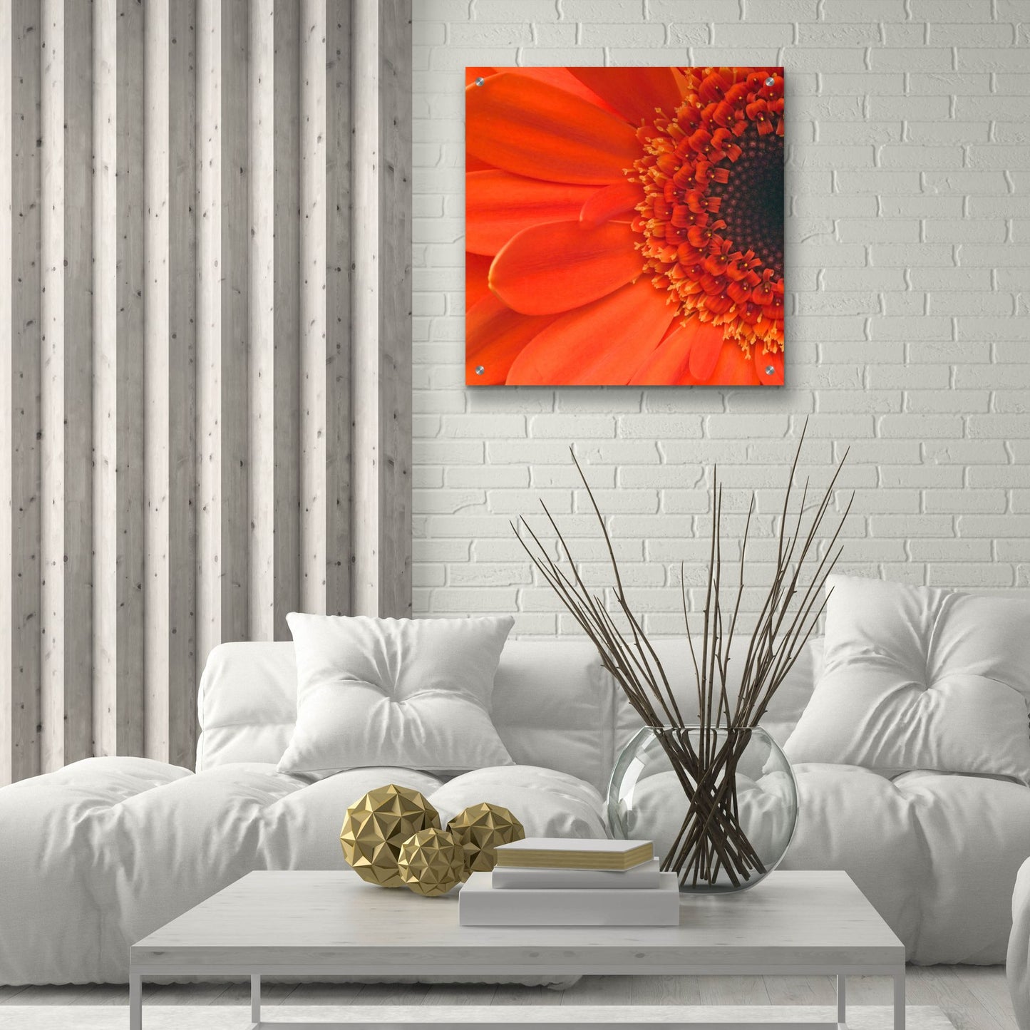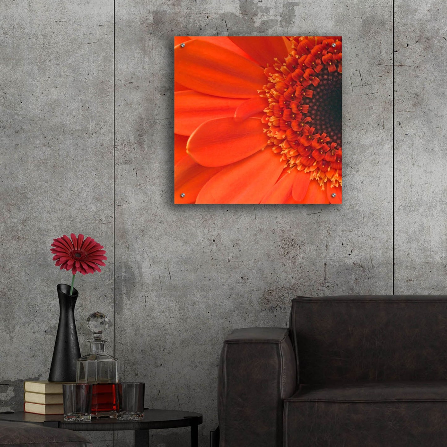 Epic Art 'Orange Gerbera Close up' by Tom Quartermaine, Acrylic Glass Wall Art