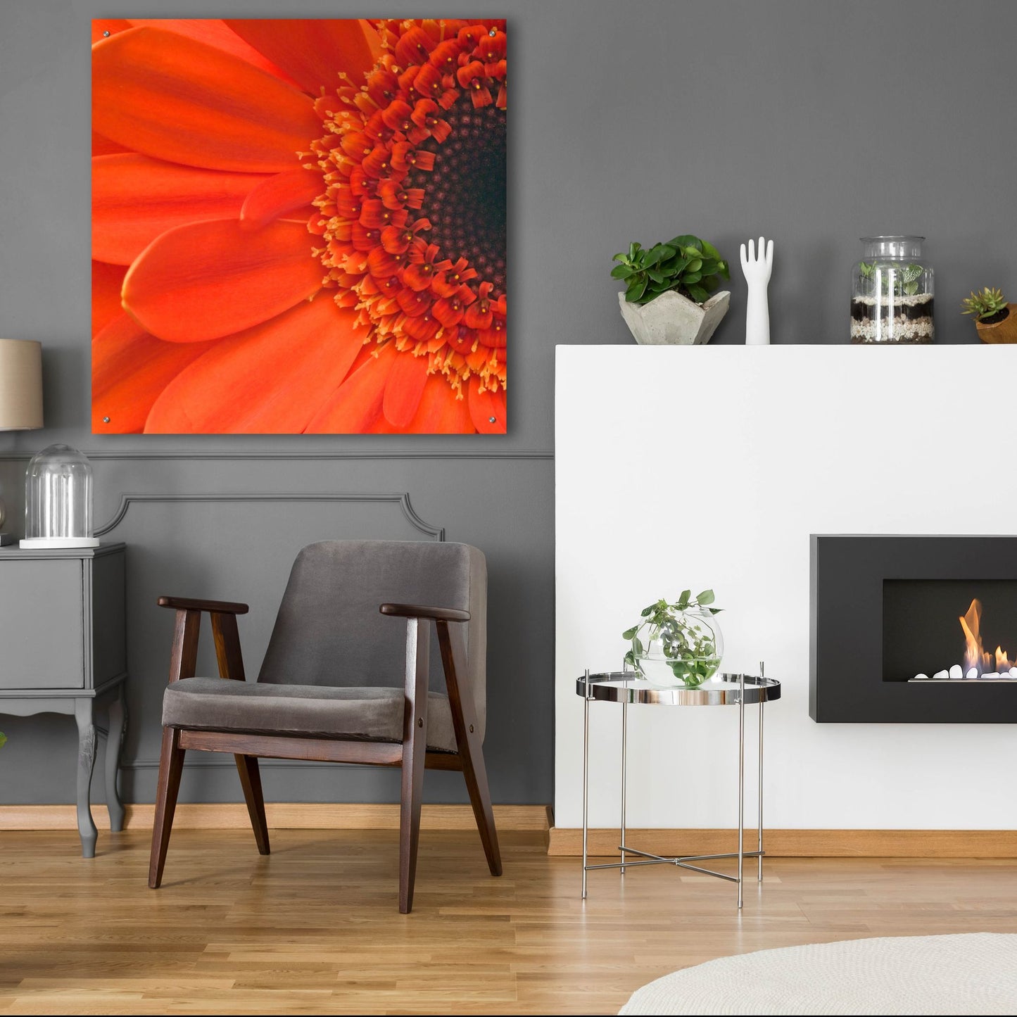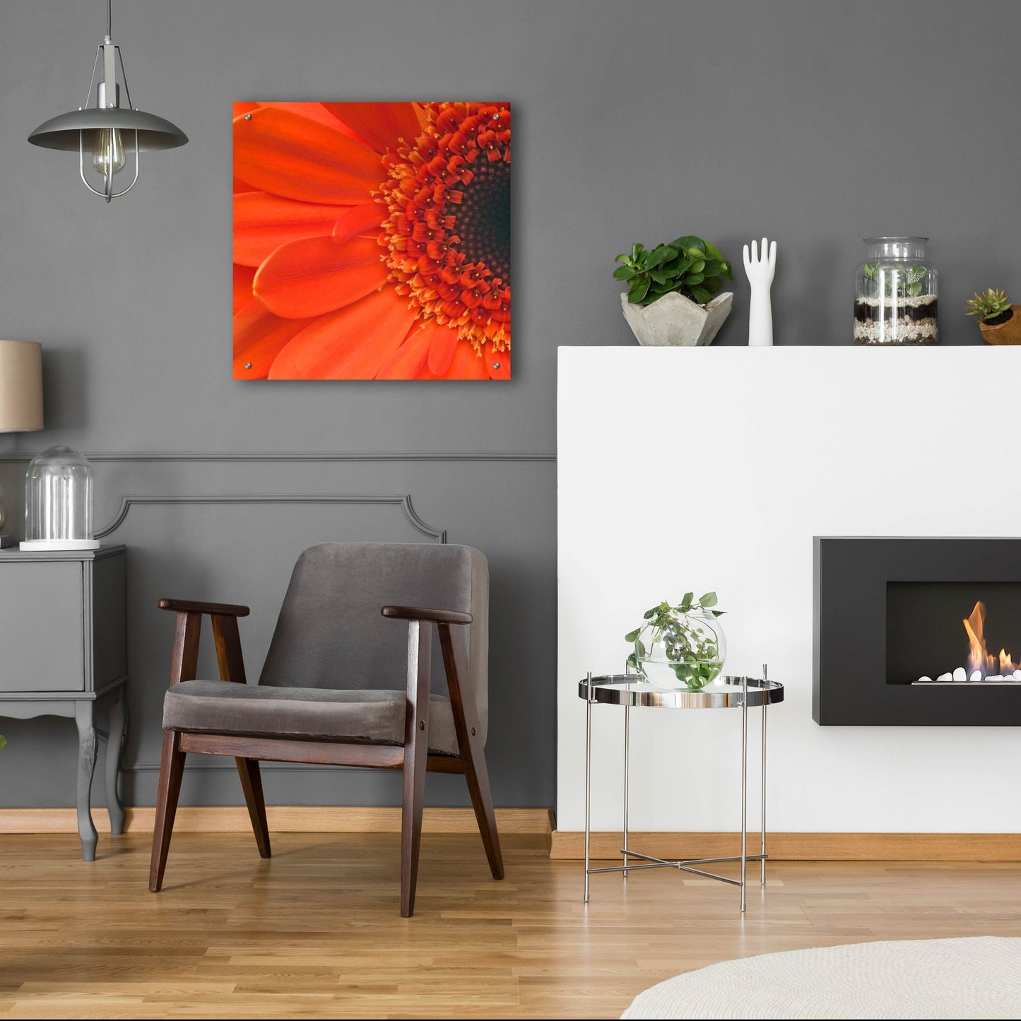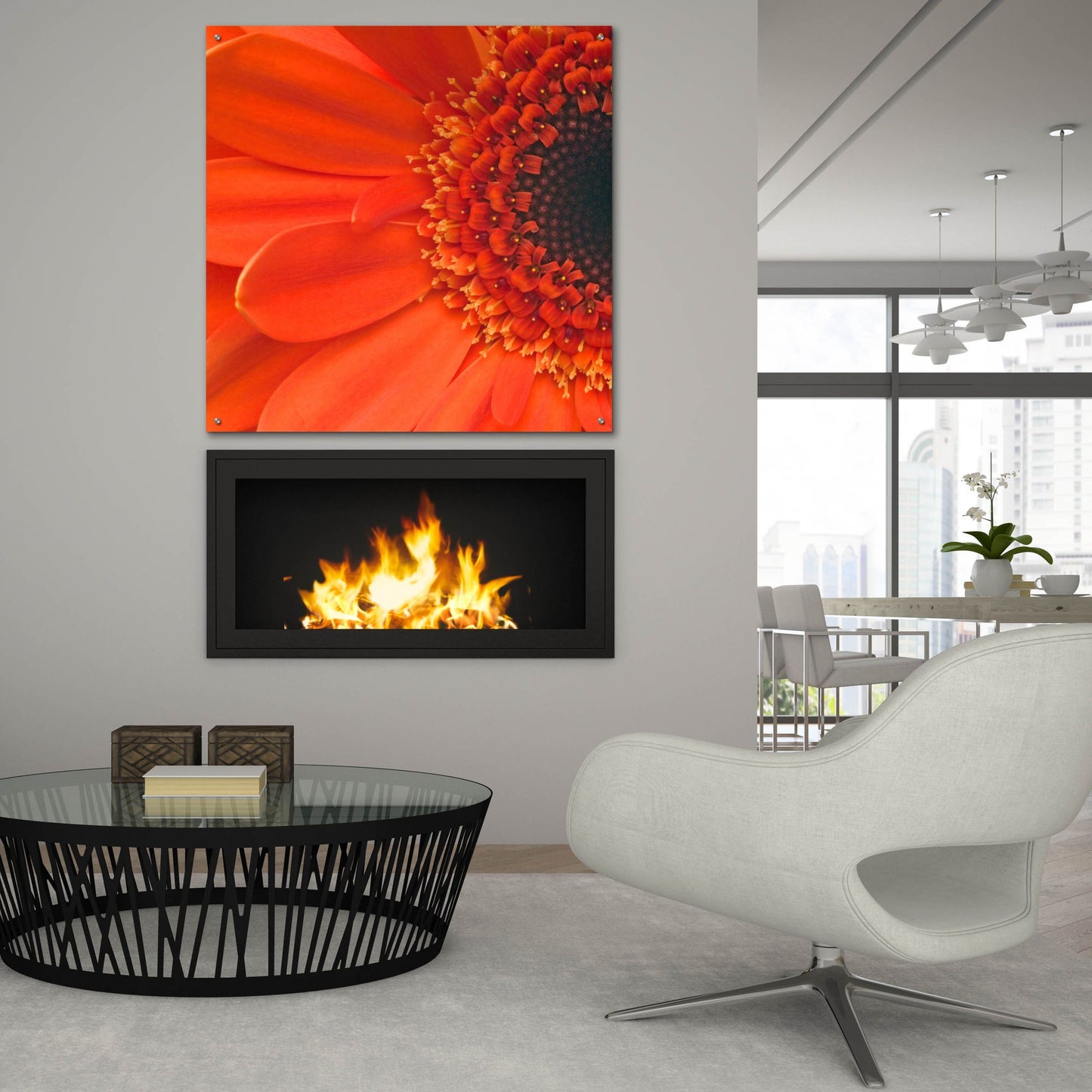 Epic Art 'Orange Gerbera Close up' by Tom Quartermaine, Acrylic Glass Wall Art