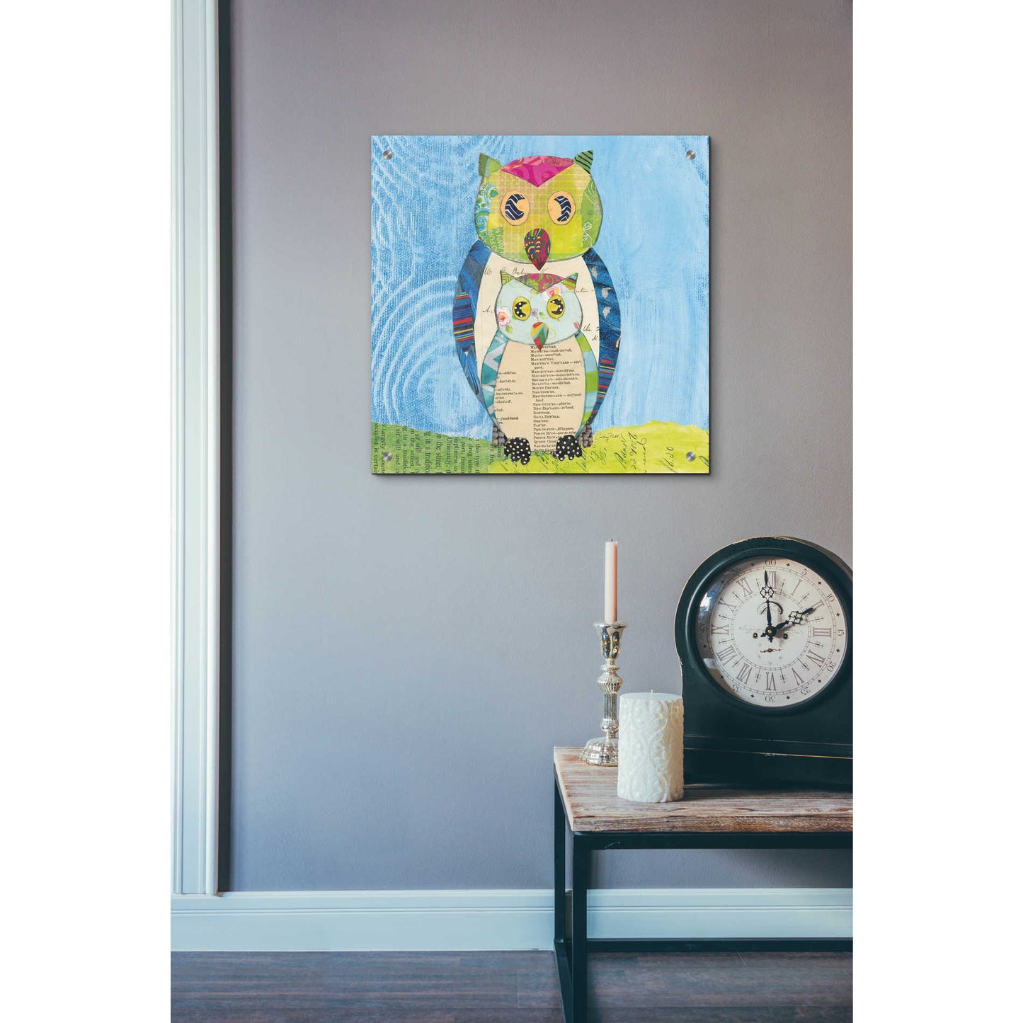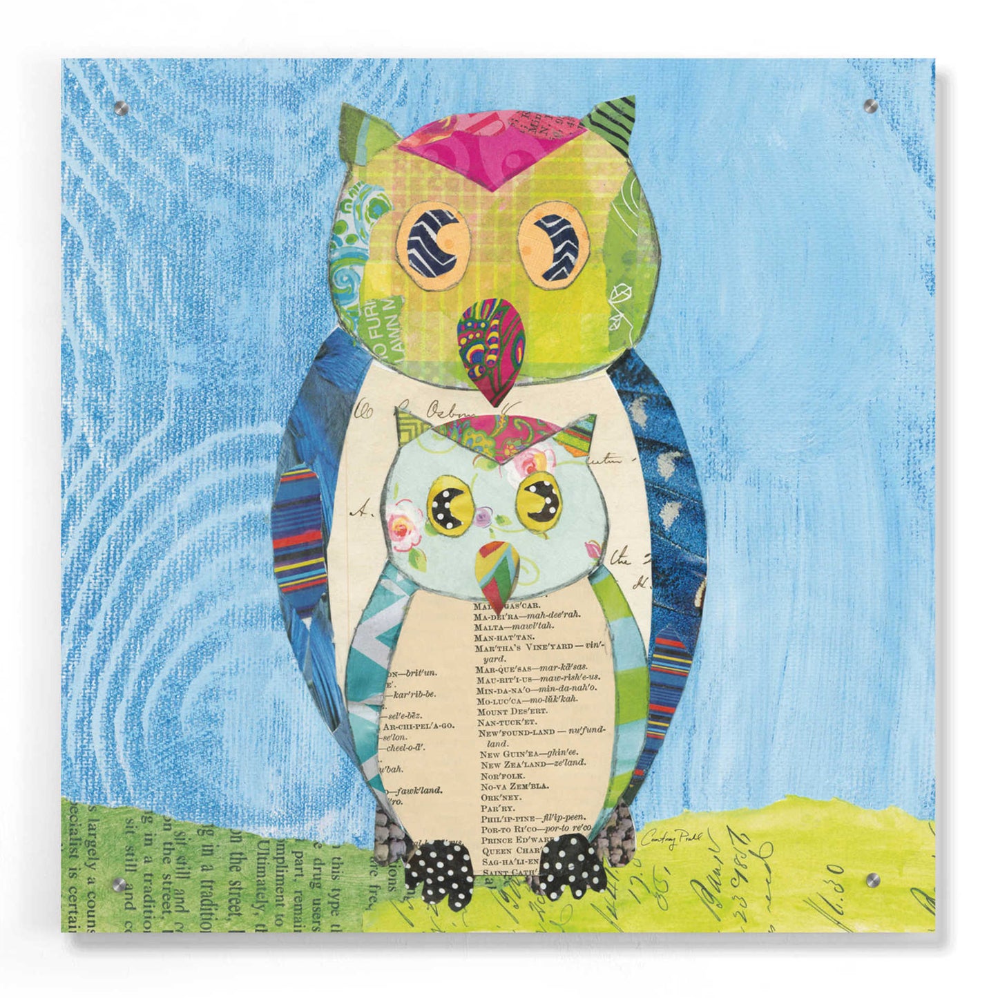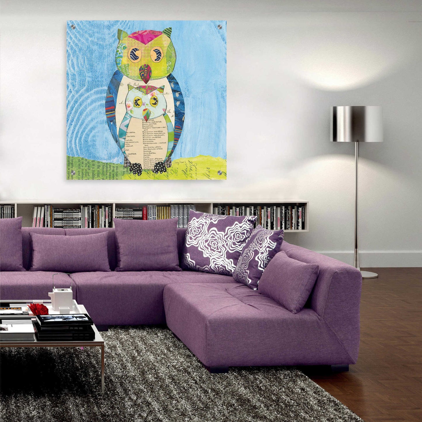 "Owl Family" by Courtney Prahl. Courtney is a mixed media artist. Collaging old and new materials are her signature style. She enjoys searching for vintage art materials to incorporate into her artwork. Residing in Maryland with her husband and two sons, she teaches art to children and is co-founder of her local art charity "Lend a Hand." Acrylic wall art looks amazing in your home or business. Printed on the back of the acrylic giving it depth and easy maintenance. The highly durable and hard-to-damage qualities make high definition acrylic the ideal wall art for hotels, rental properties, and restaurants. Now Epic Art brings you unmatched value in contemporary wall decor for your home as well. From small sizes to extra large sizes, it is easy to hang, won't shatter like glass if it ever falls down, and is easy to maintain. Simply dust it off or use a damp soft cloth for cleaning.