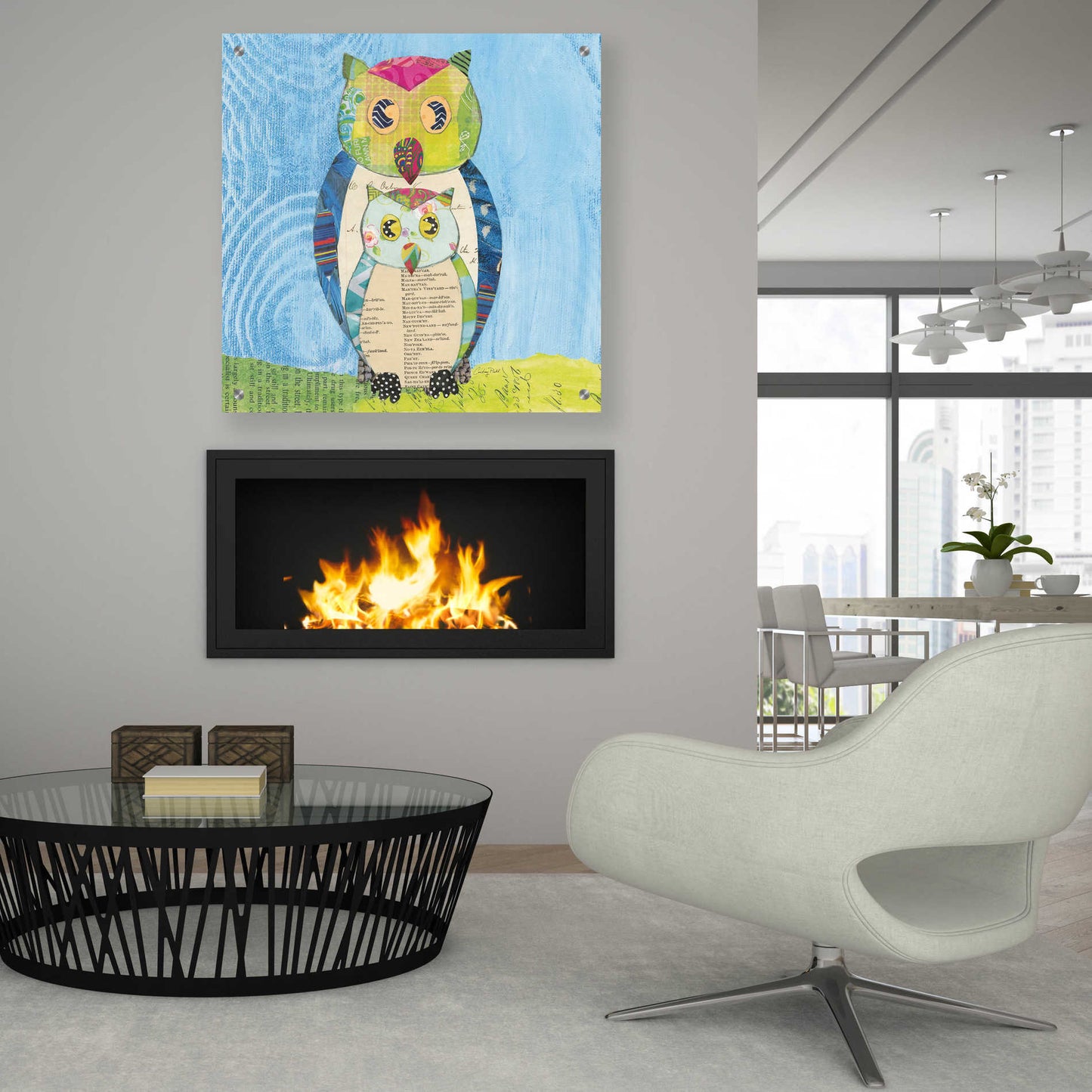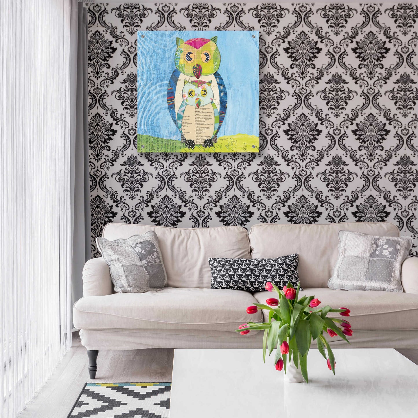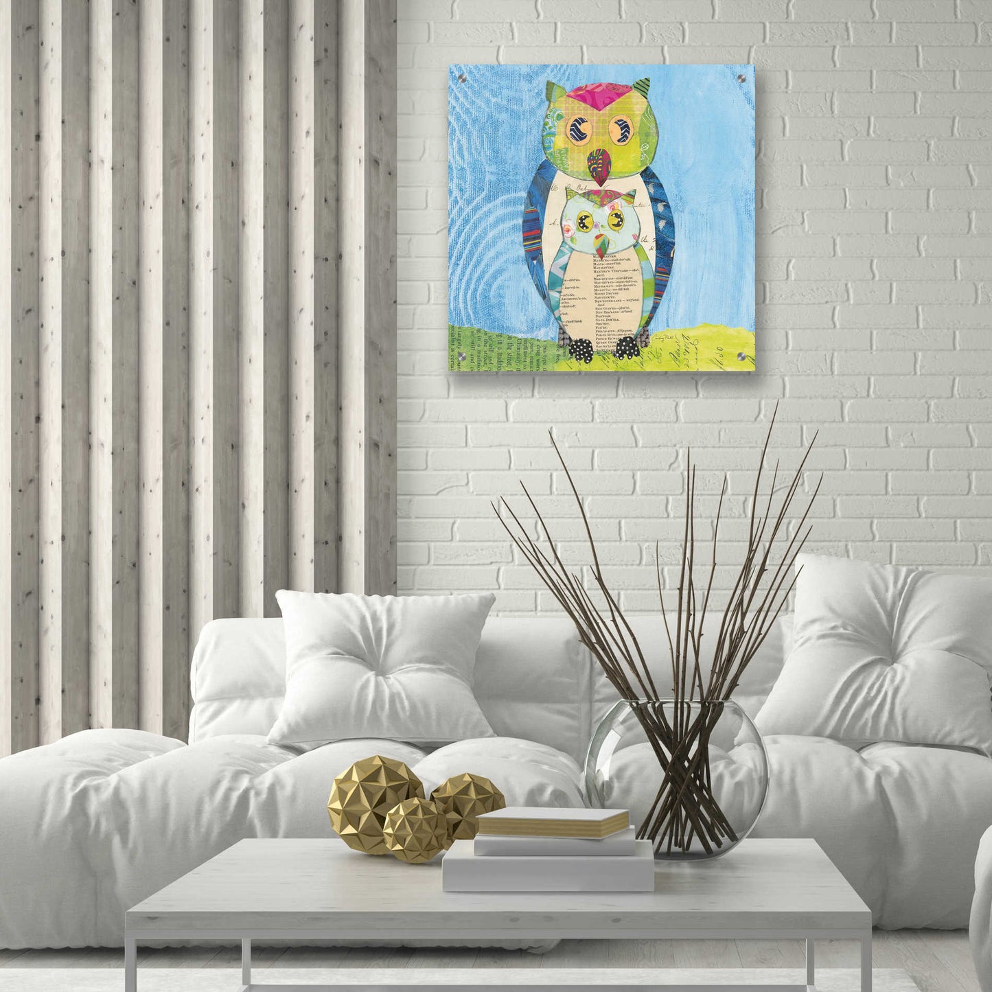 "Owl Family" by Courtney Prahl. Courtney is a mixed media artist. Collaging old and new materials are her signature style. She enjoys searching for vintage art materials to incorporate into her artwork. Residing in Maryland with her husband and two sons, she teaches art to children and is co-founder of her local art charity "Lend a Hand." Acrylic wall art looks amazing in your home or business. Printed on the back of the acrylic giving it depth and easy maintenance. The highly durable and hard-to-damage qualities make high definition acrylic the ideal wall art for hotels, rental properties, and restaurants. Now Epic Art brings you unmatched value in contemporary wall decor for your home as well. From small sizes to extra large sizes, it is easy to hang, won't shatter like glass if it ever falls down, and is easy to maintain. Simply dust it off or use a damp soft cloth for cleaning.