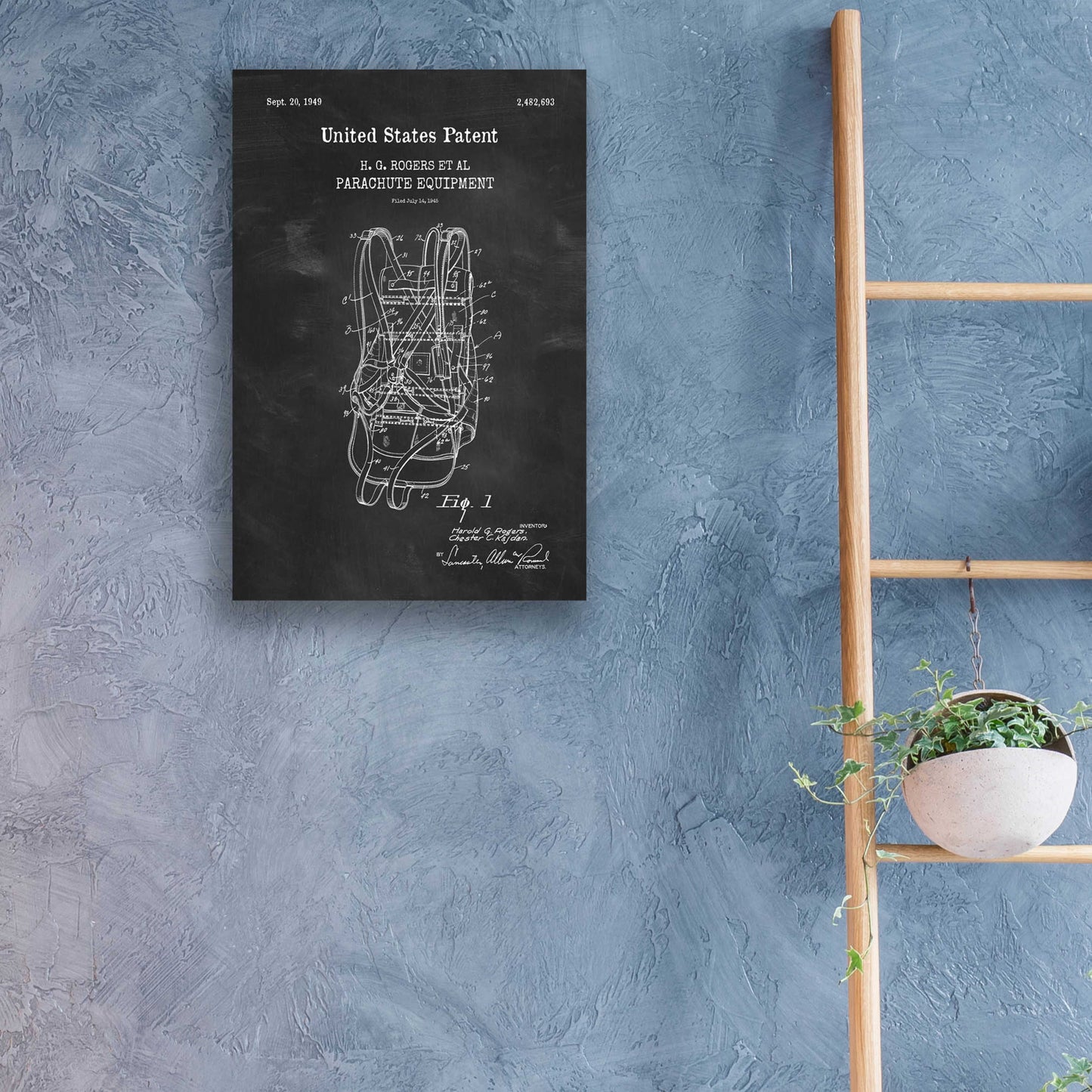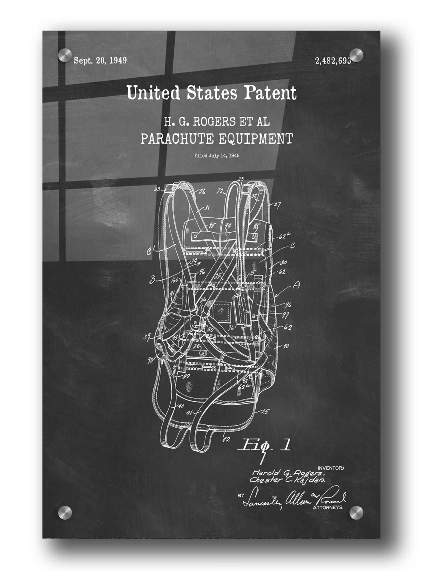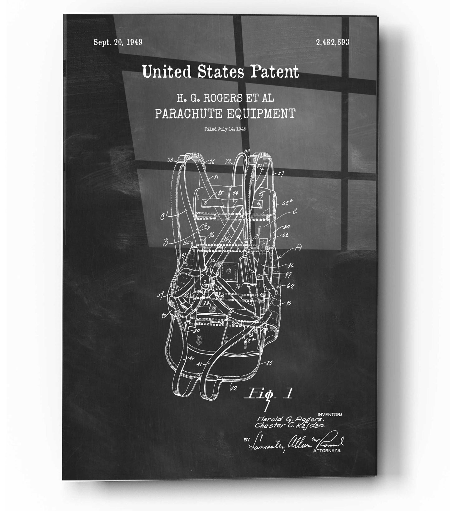 Parachute Blueprint Patent Chalkboard. An official US Patent remastered by Epic Art. Available on blackboard or parchment background.