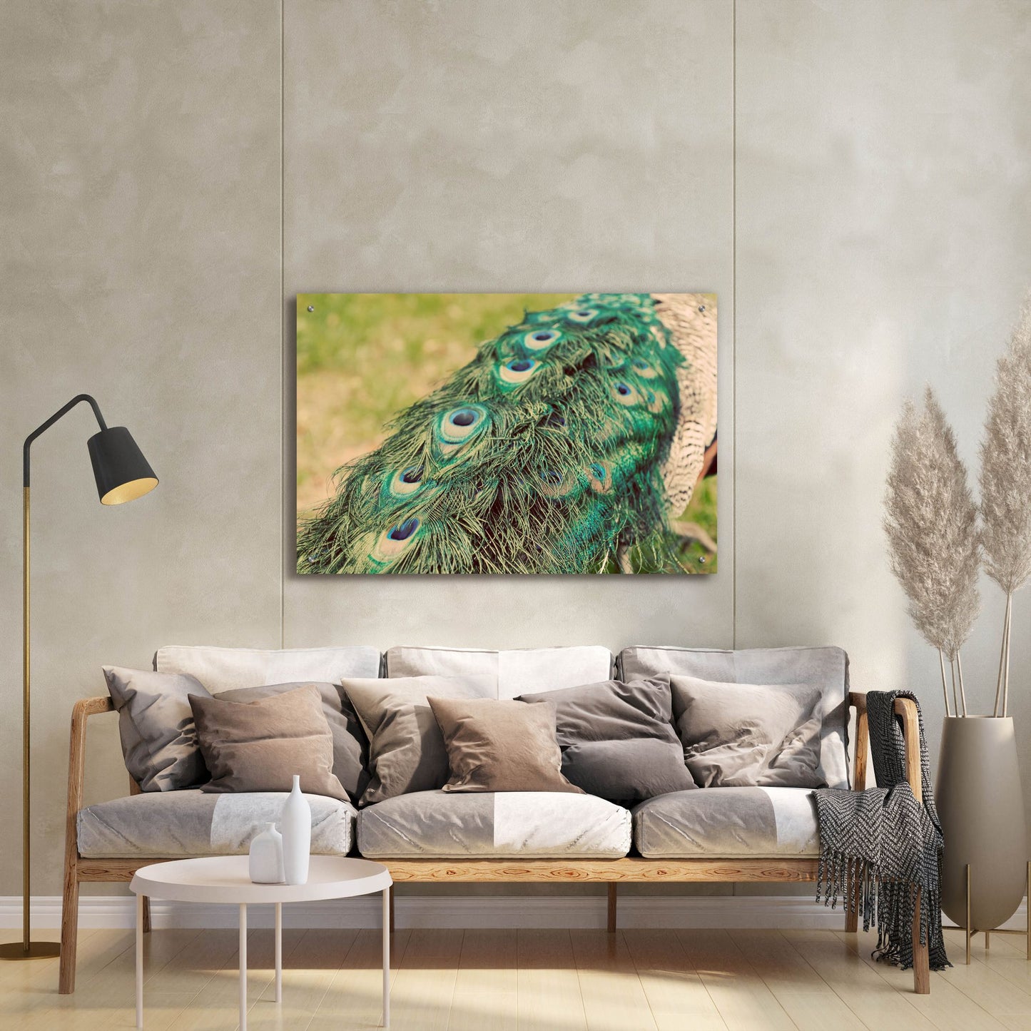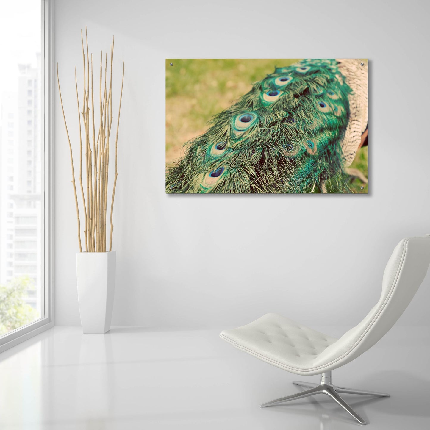 Epic Art 'Peacock Feather Tail 01' by Tom Quartermaine, Acrylic Glass Wall Art