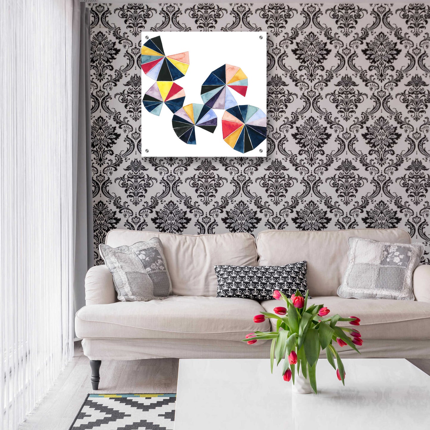 "Pinwheel Bright II" by Grace Popp. Grace Popp earned her BFA in Communication Arts from Virginia Commonwealth University. Her primary medium has become watercolor, which she periodically supplements with other materials. She is inspired by nature, films, history, current events, and other artists both past and present. She currently lives in Charlottesville VA, with her partner and two perfect cats, Hitch and Ollie. Acrylic wall art looks amazing in your home or business. Printed on the back of the acrylic giving it depth and easy maintenance. The highly durable and hard-to-damage qualities make high definition acrylic the ideal wall art for hotels, rental properties, and restaurants. Now Epic Art brings you unmatched value in contemporary wall decor for your home as well. From small sizes to extra large sizes, it is easy to hang, won"t shatter like glass if it ever falls down, and is easy to maintain. Simply dust it off or use a damp soft cloth for cleaning.