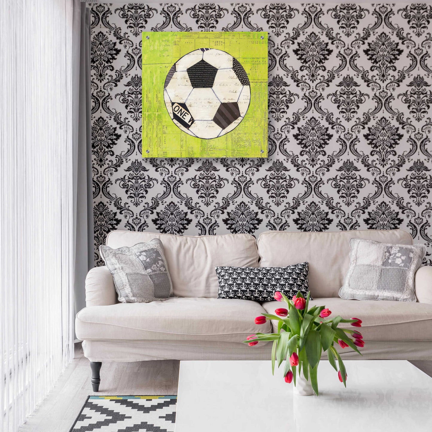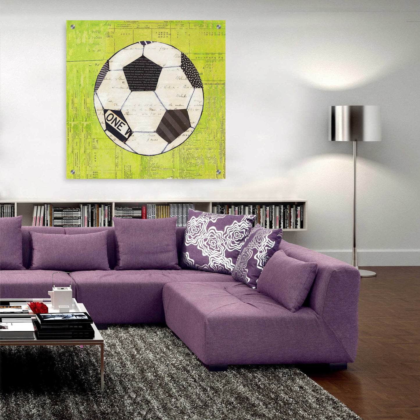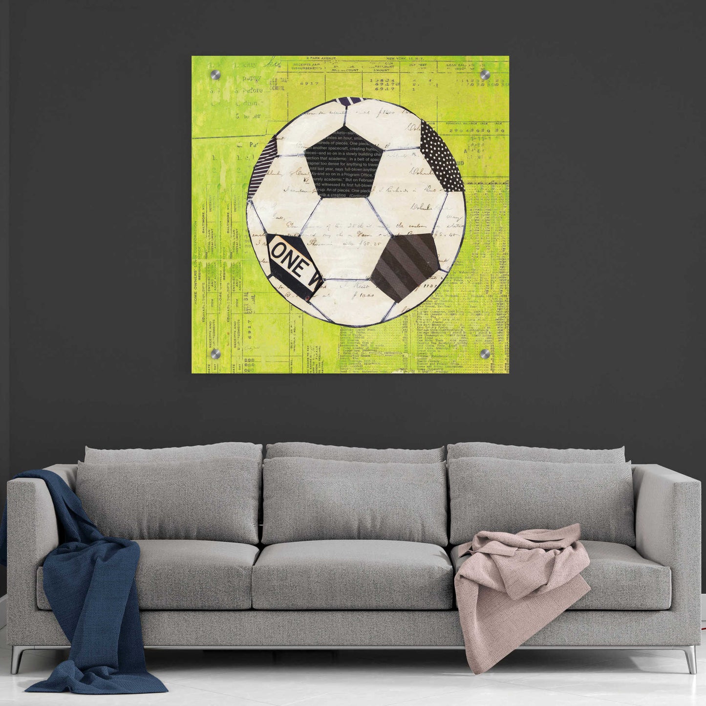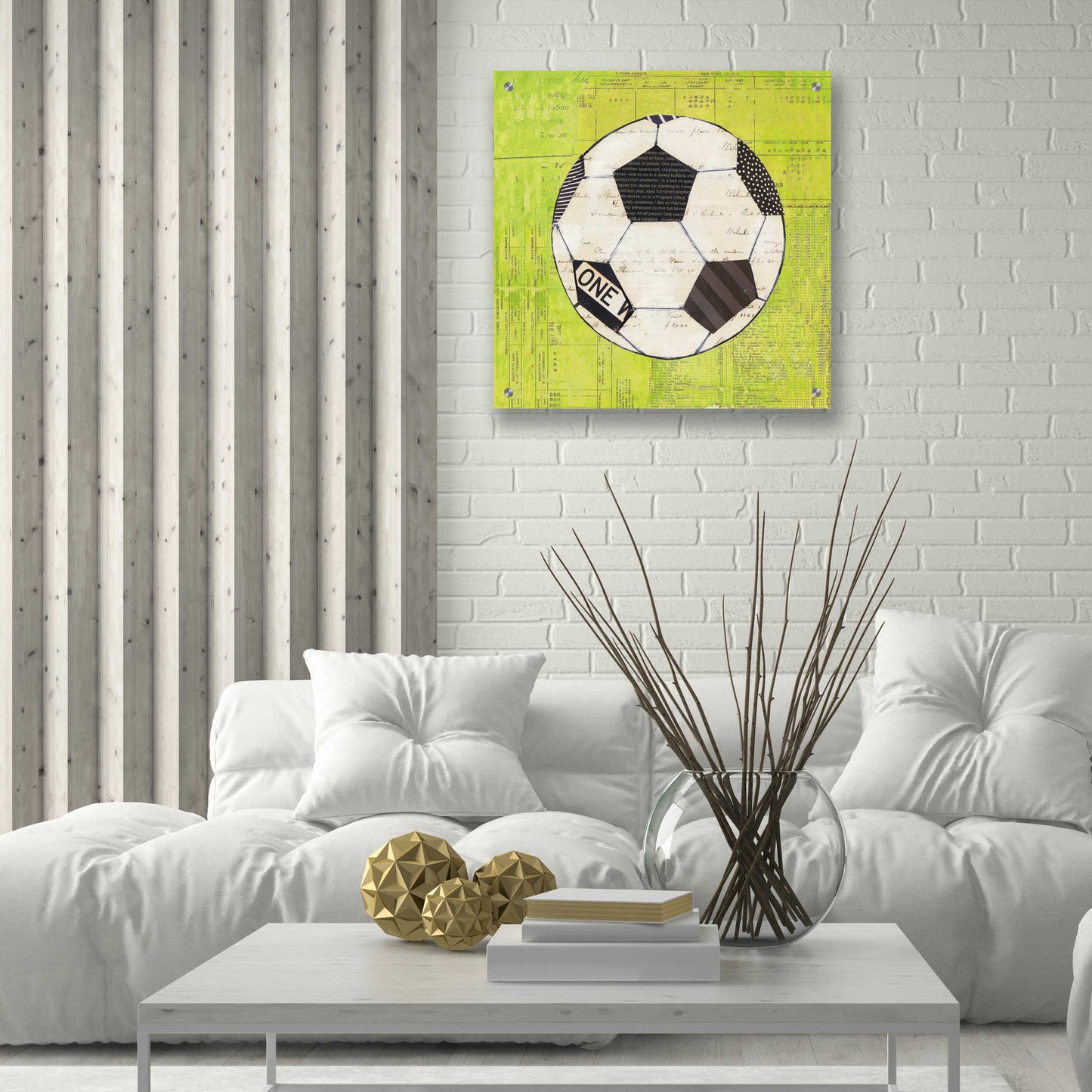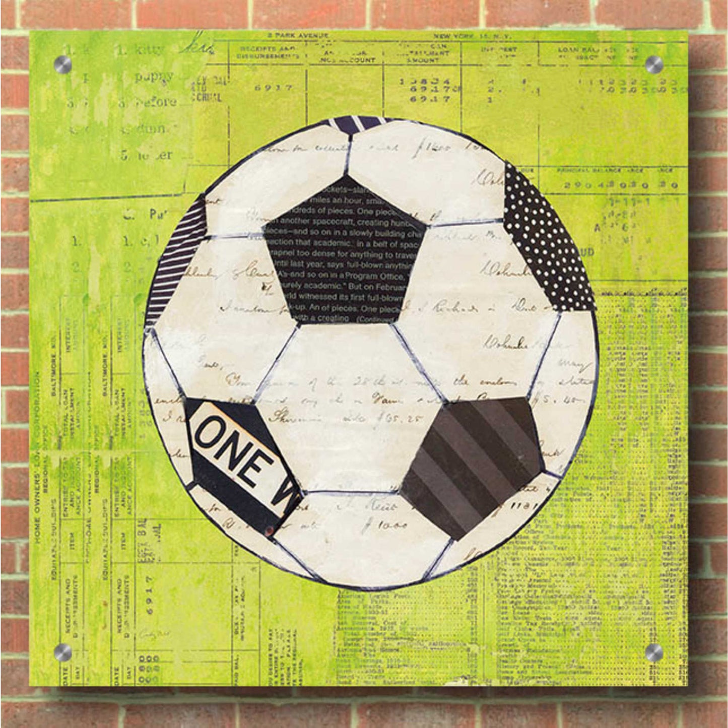 "Play Ball III Bright" by Courtney Prahl. Courtney is a mixed media artist. Collaging old and new materials are her signature style. She enjoys searching for vintage art materials to incorporate into her artwork. Residing in Maryland with her husband and two sons, she teaches art to children and is co-founder of her local art charity "Lend a Hand." Acrylic wall art looks amazing in your home or business. Printed on the back of the acrylic giving it depth and easy maintenance. The highly durable and hard-to-damage qualities make high definition acrylic the ideal wall art for hotels, rental properties, and restaurants. Now Epic Art brings you unmatched value in contemporary wall decor for your home as well. From small sizes to extra large sizes, it is easy to hang, won't shatter like glass if it ever falls down, and is easy to maintain. Simply dust it off or use a damp soft cloth for cleaning.
