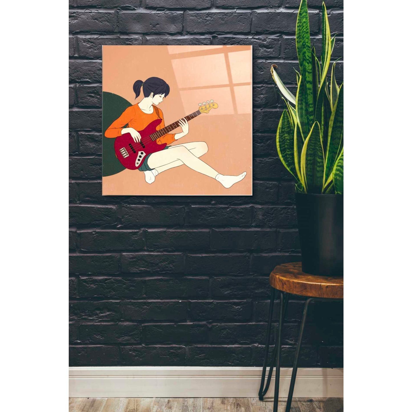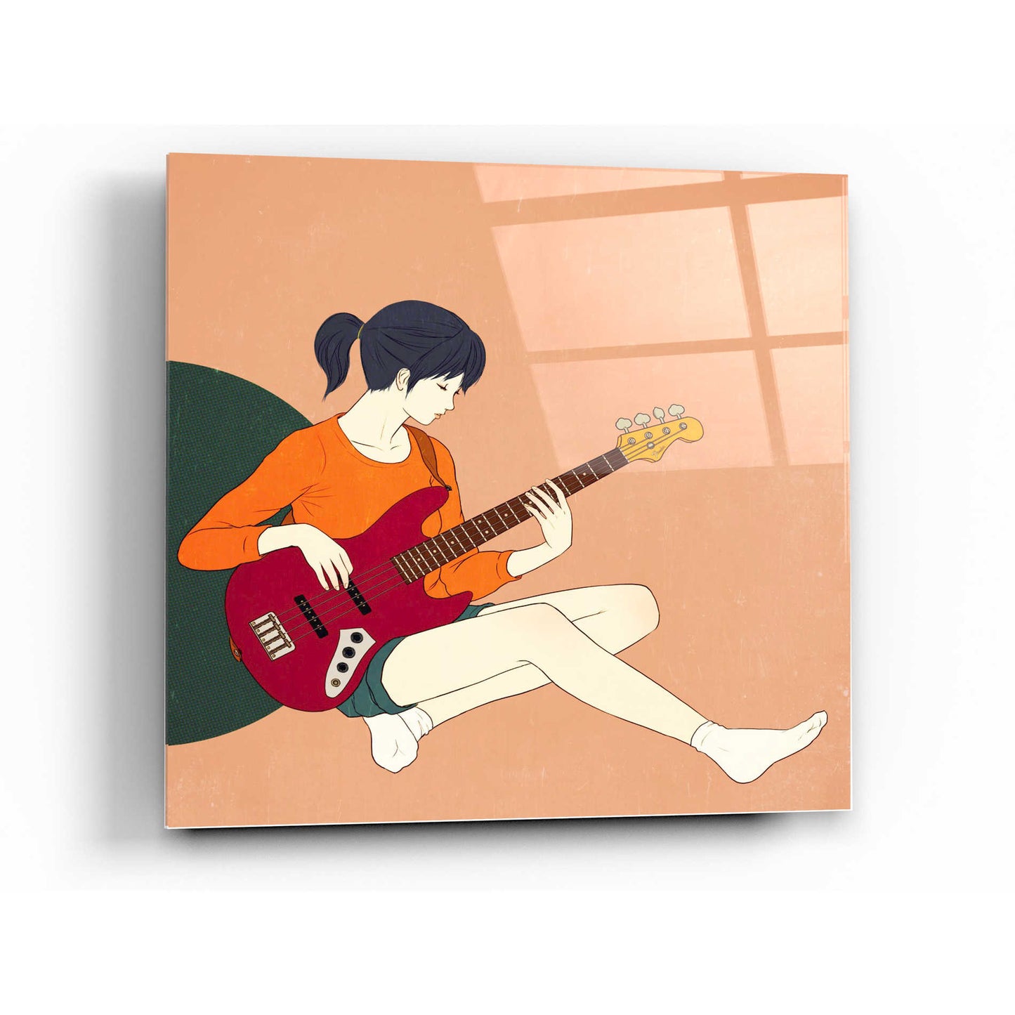"Playing The Bass" by Sai Tamiya printed on crystal clear acrylic glass.