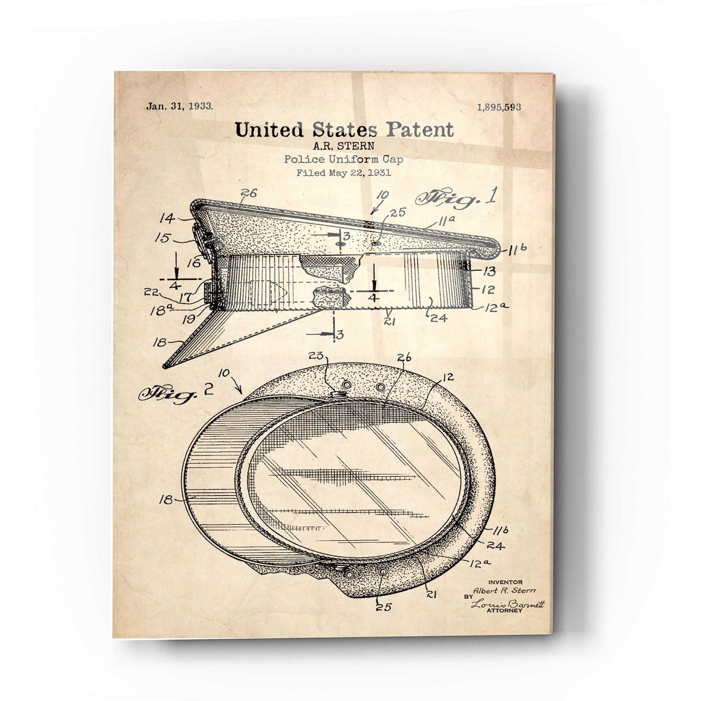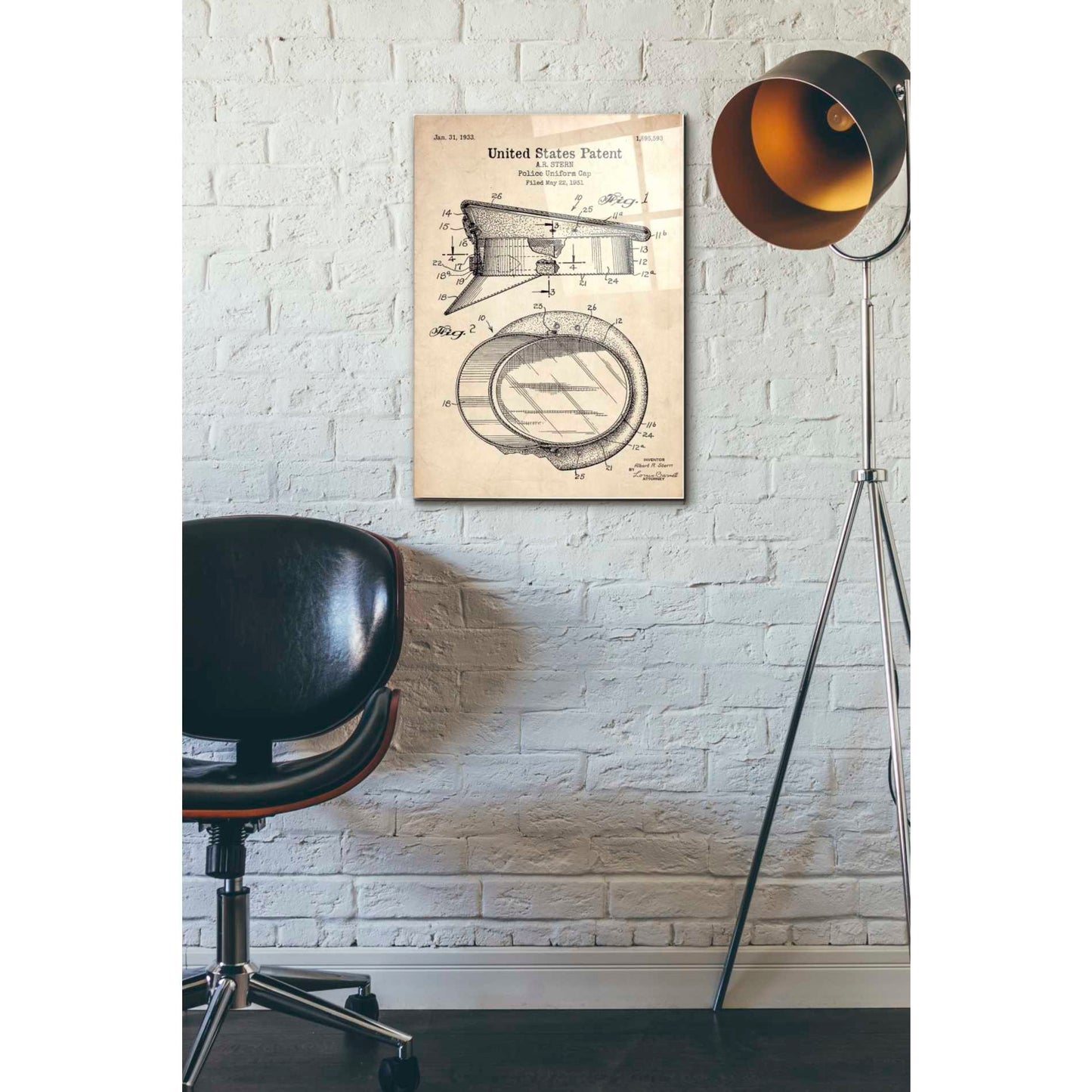 Epic Art 'Police Uniform Cap Blueprint Patent Parchment' Acrylic Glass Wall Art