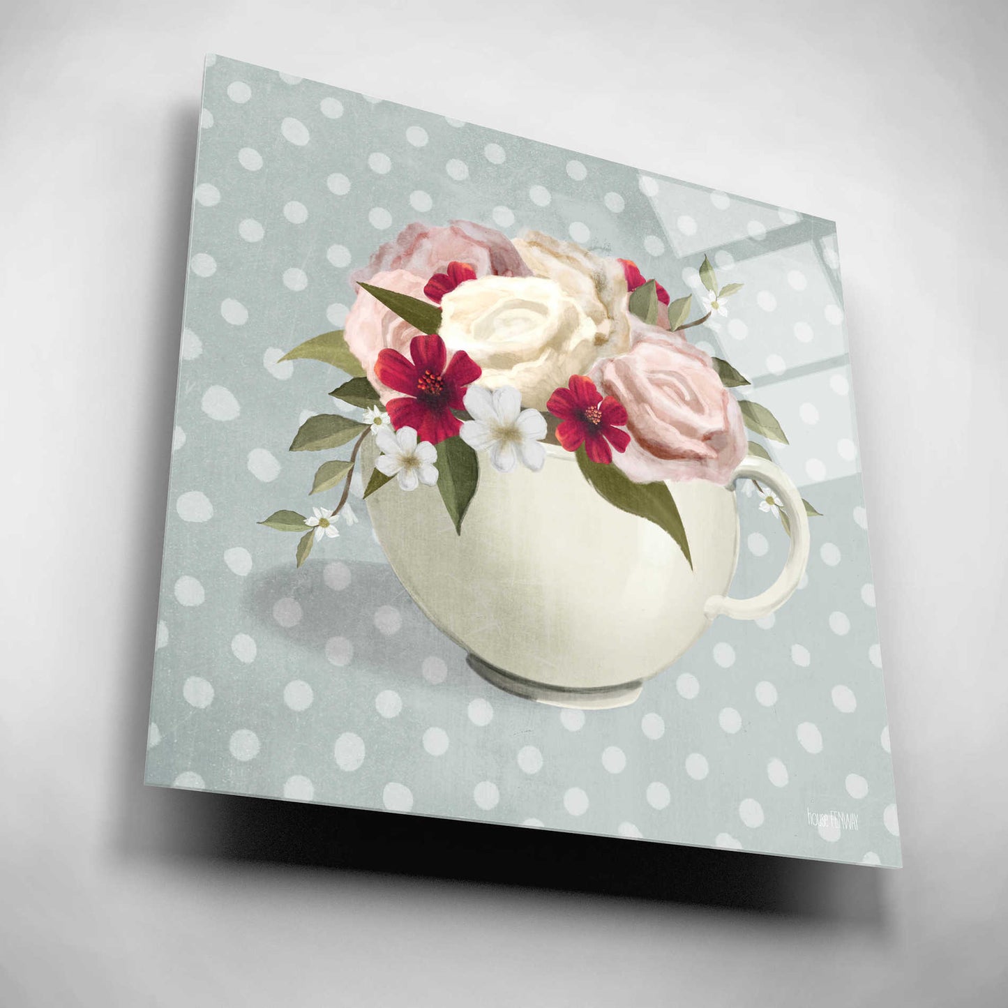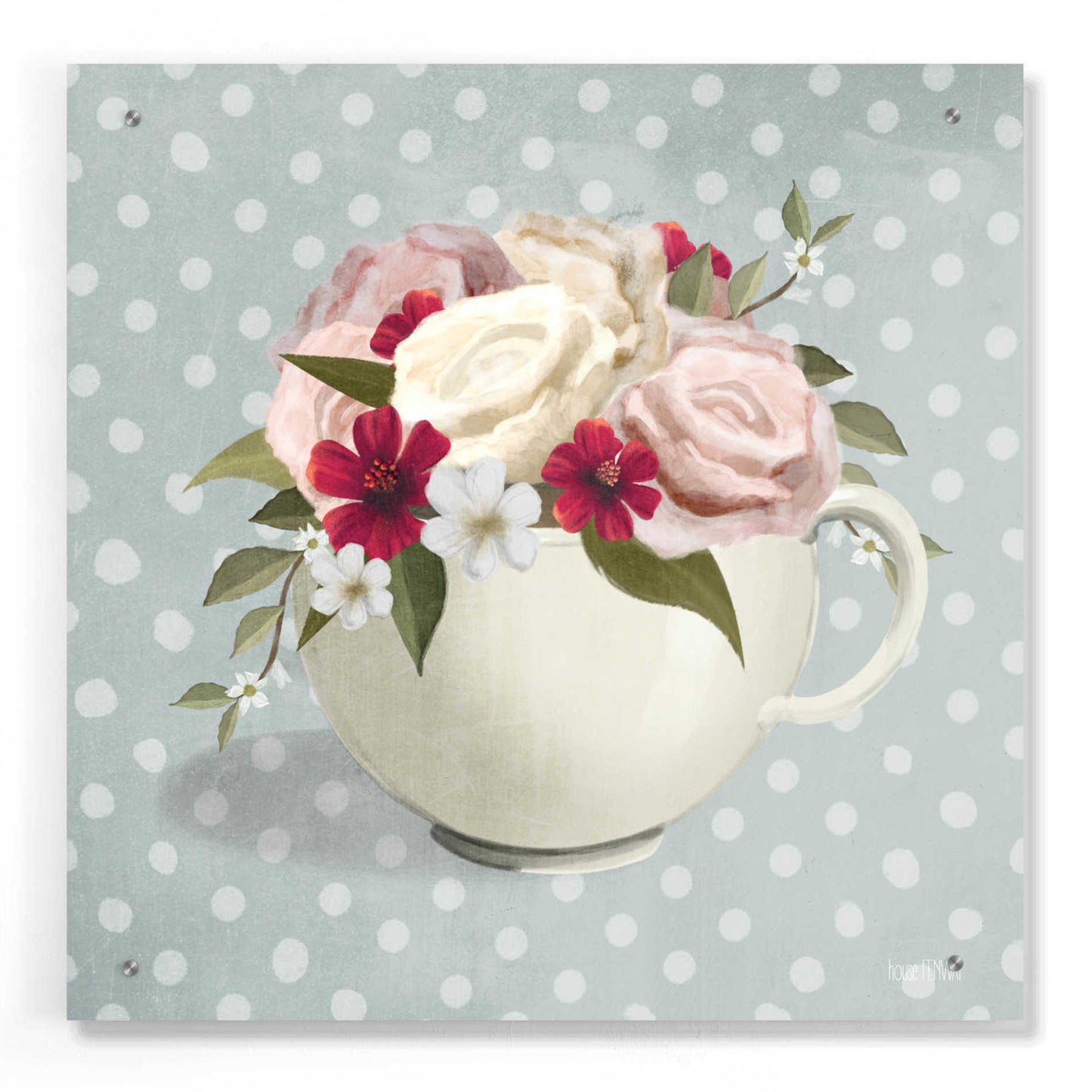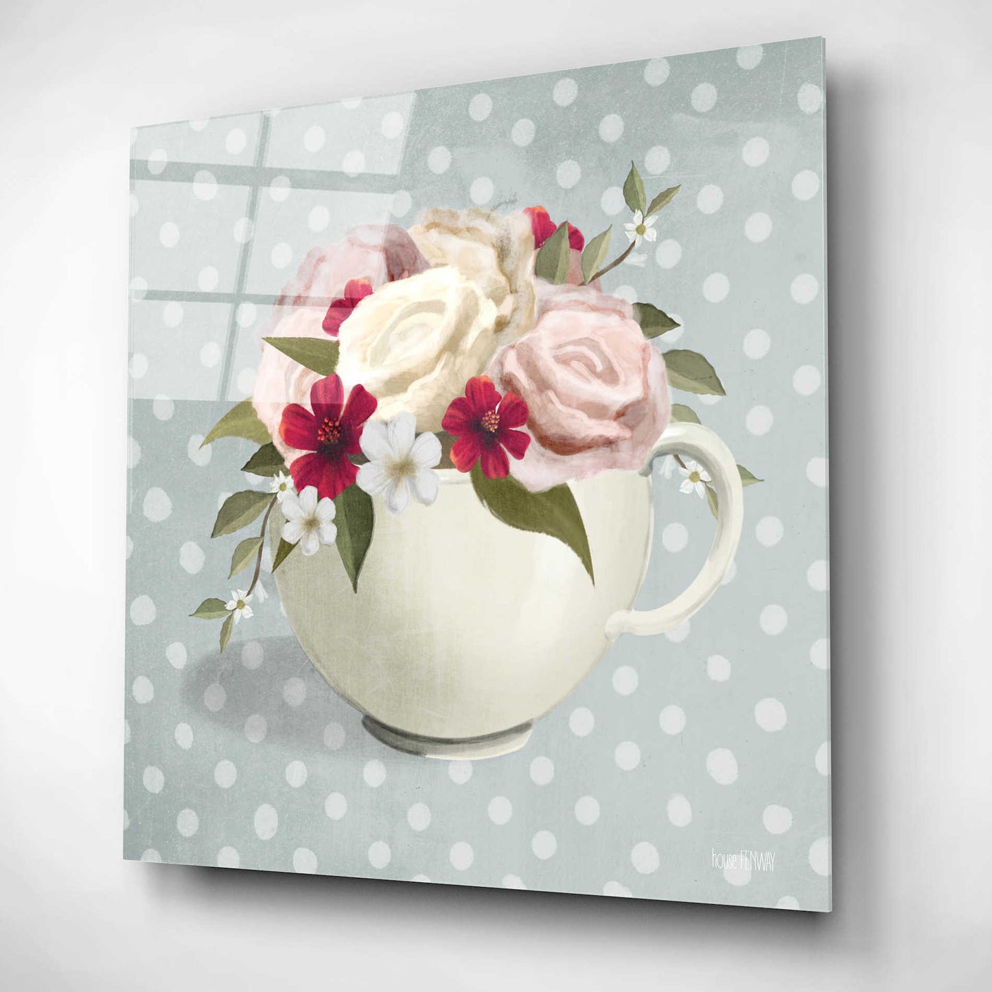 Epic Art 'Polka Dot Coffee-Tea Rose' by House Fenway, Acrylic Glass Wall Art