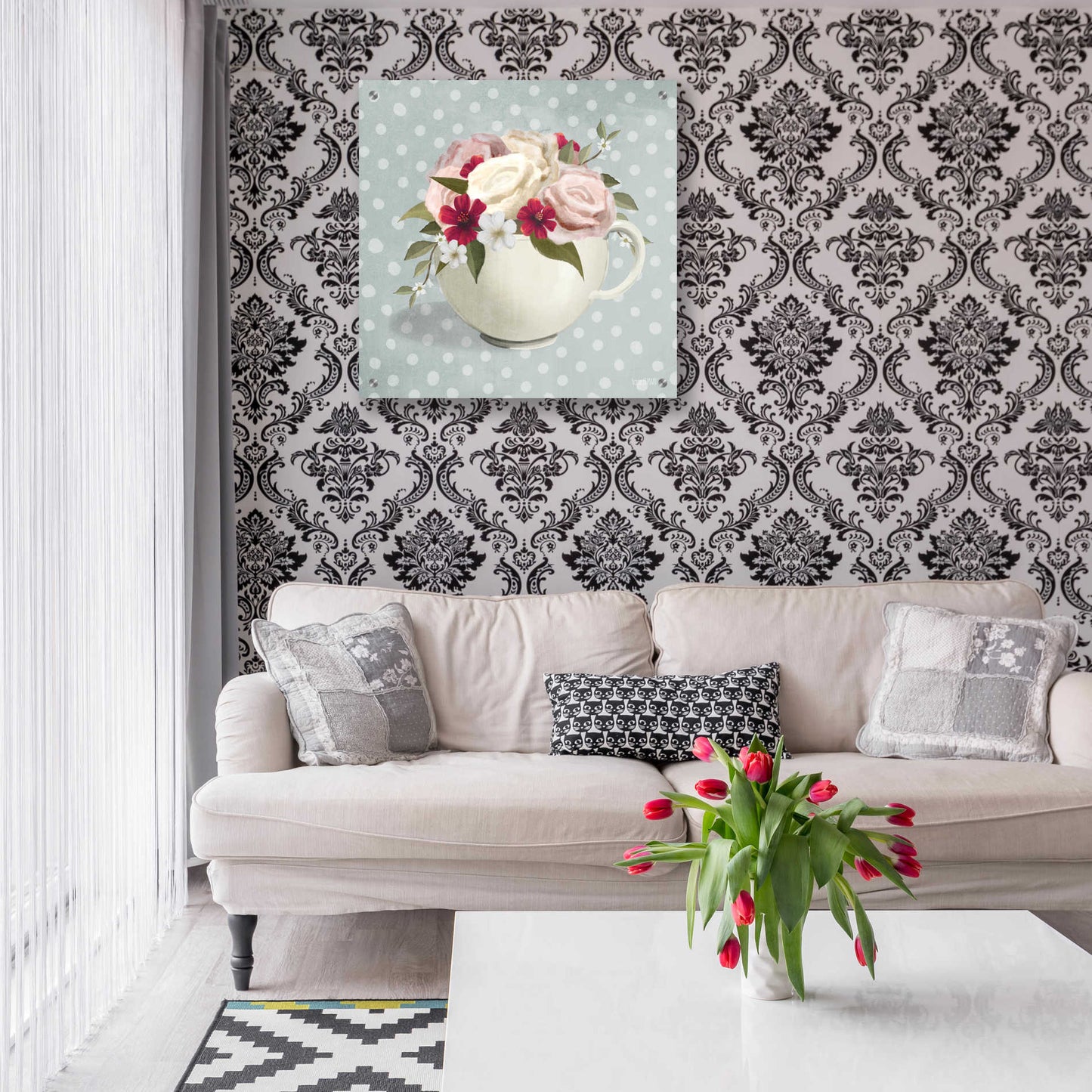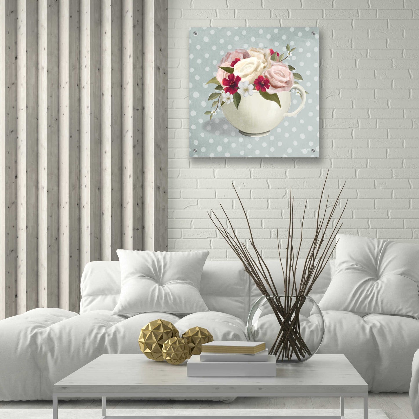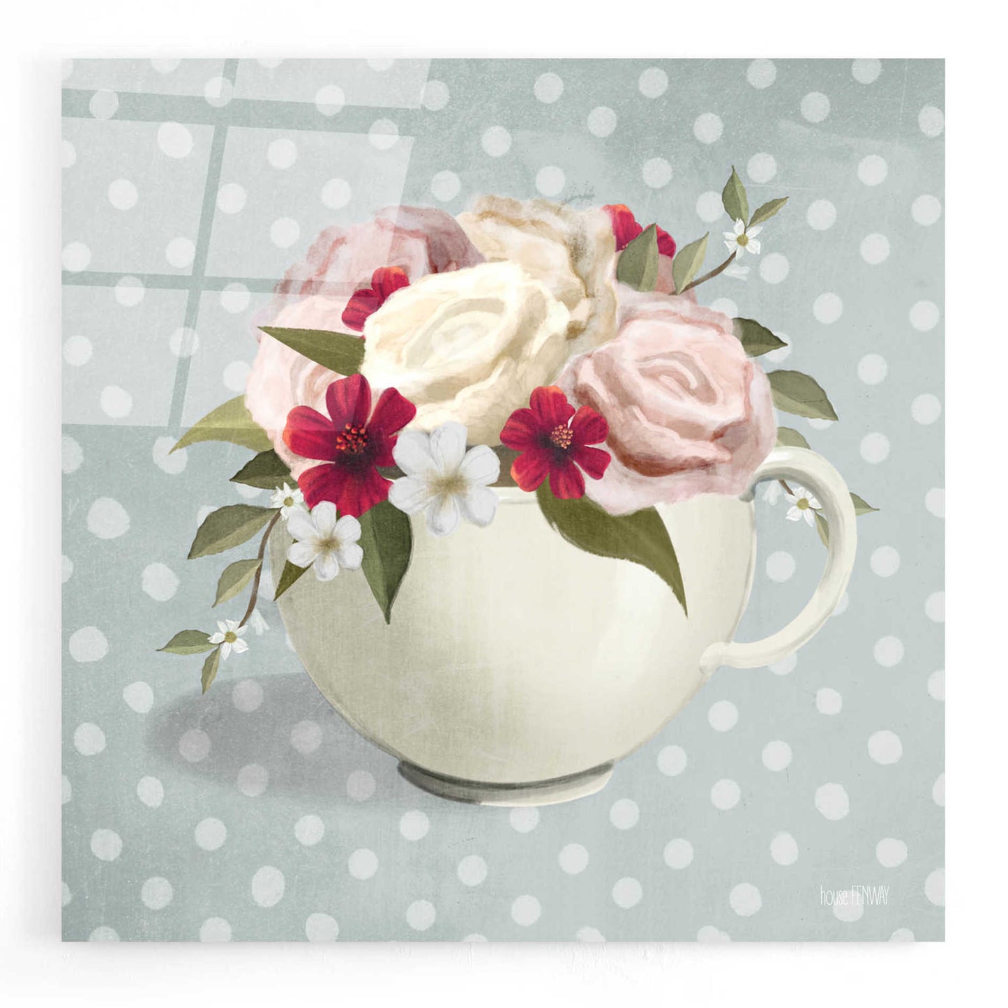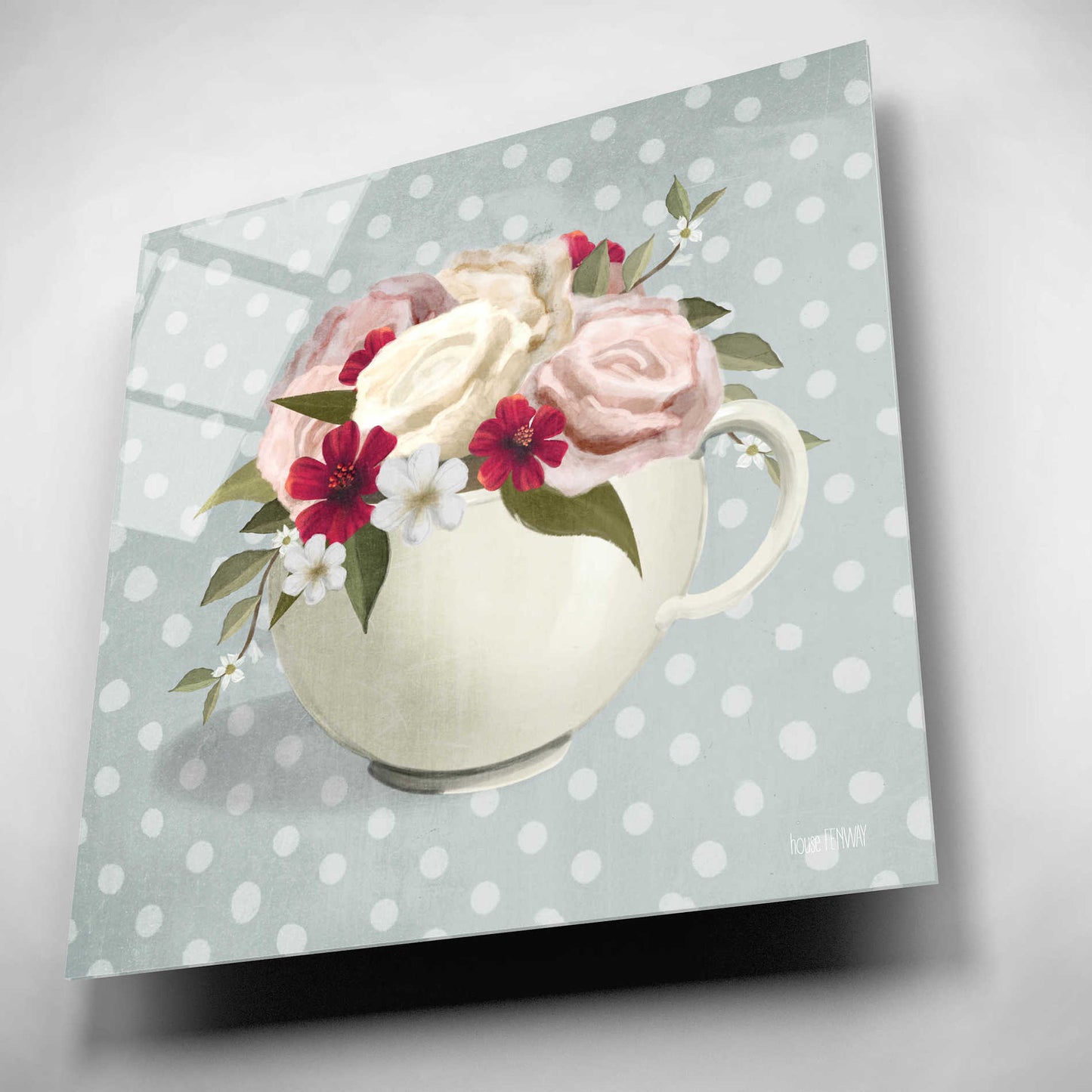 Epic Art 'Polka Dot Coffee-Tea Rose' by House Fenway, Acrylic Glass Wall Art