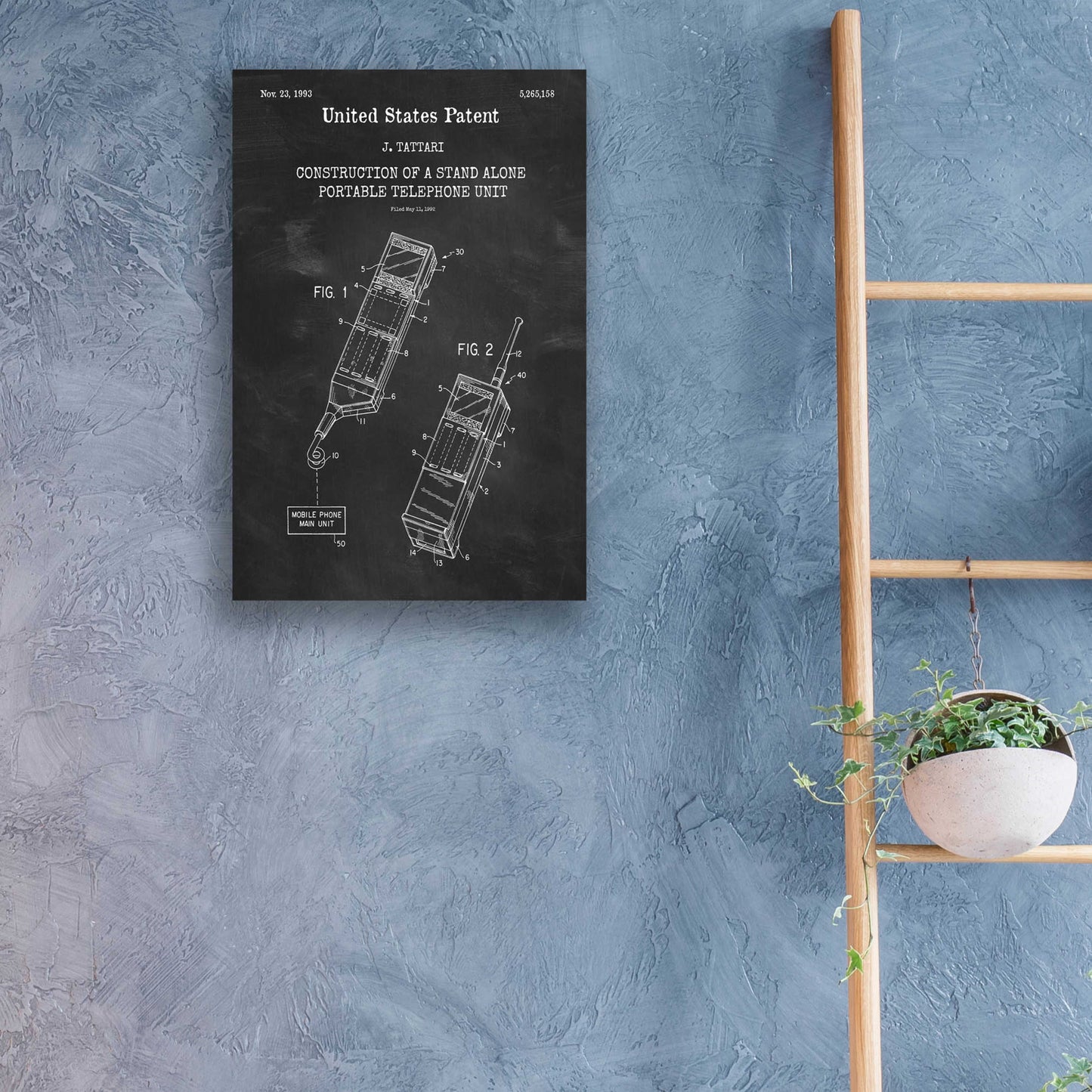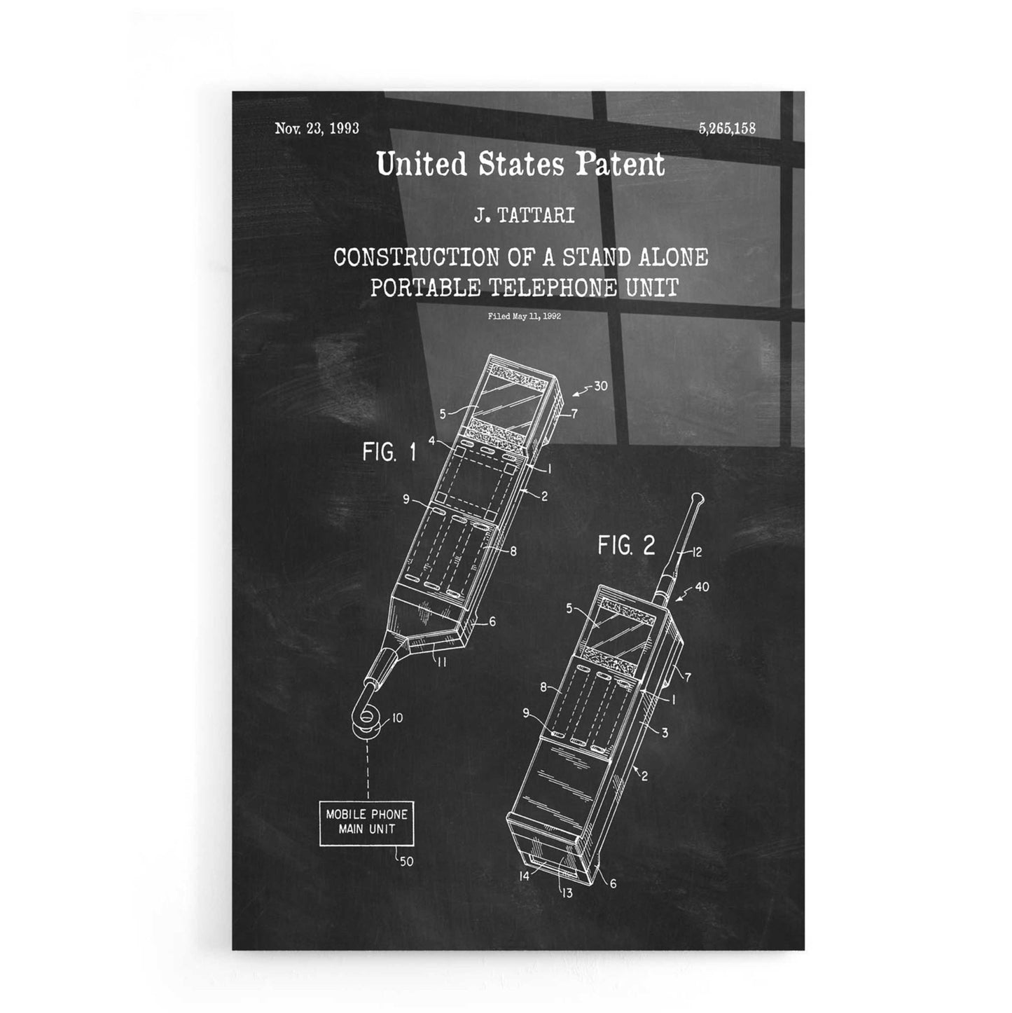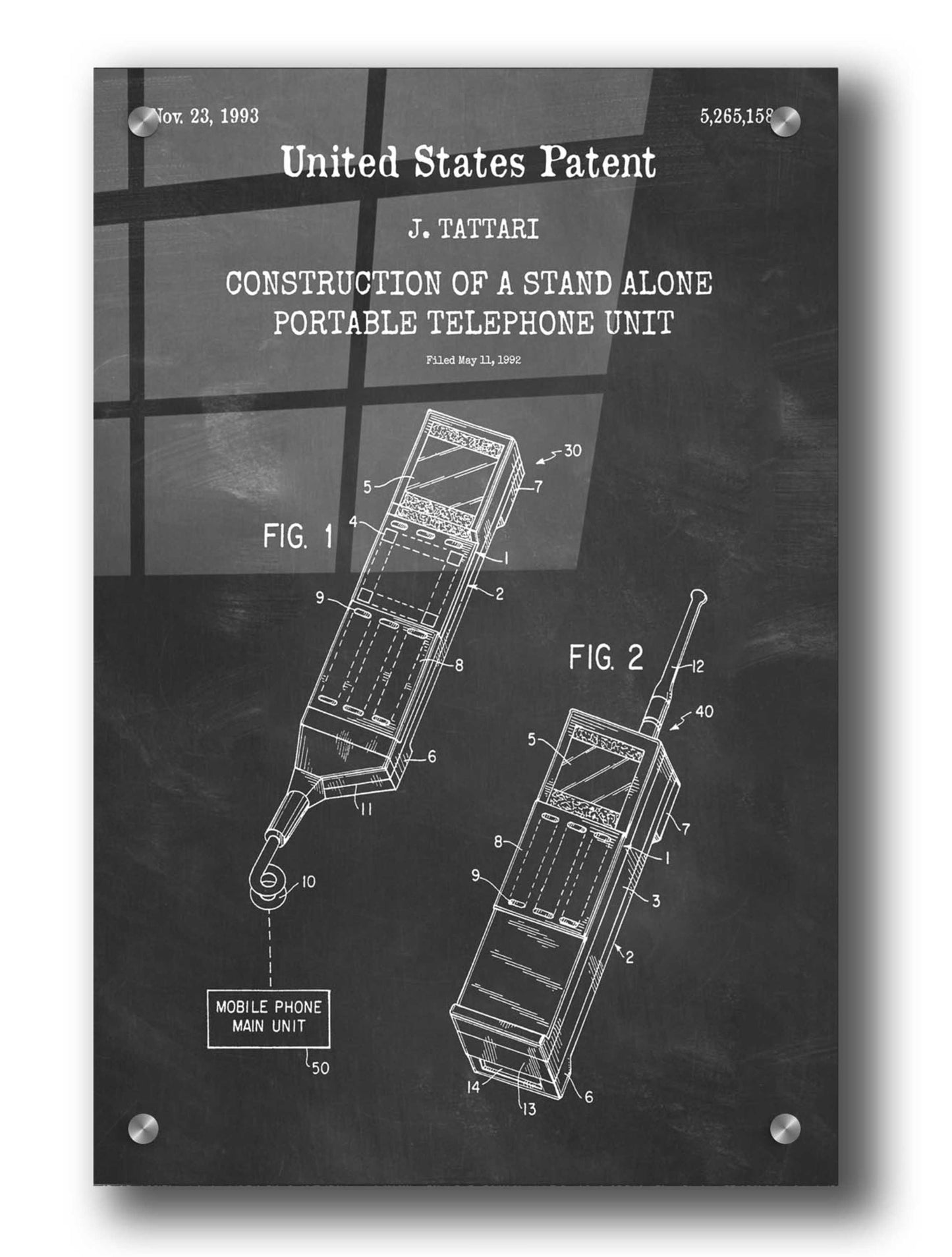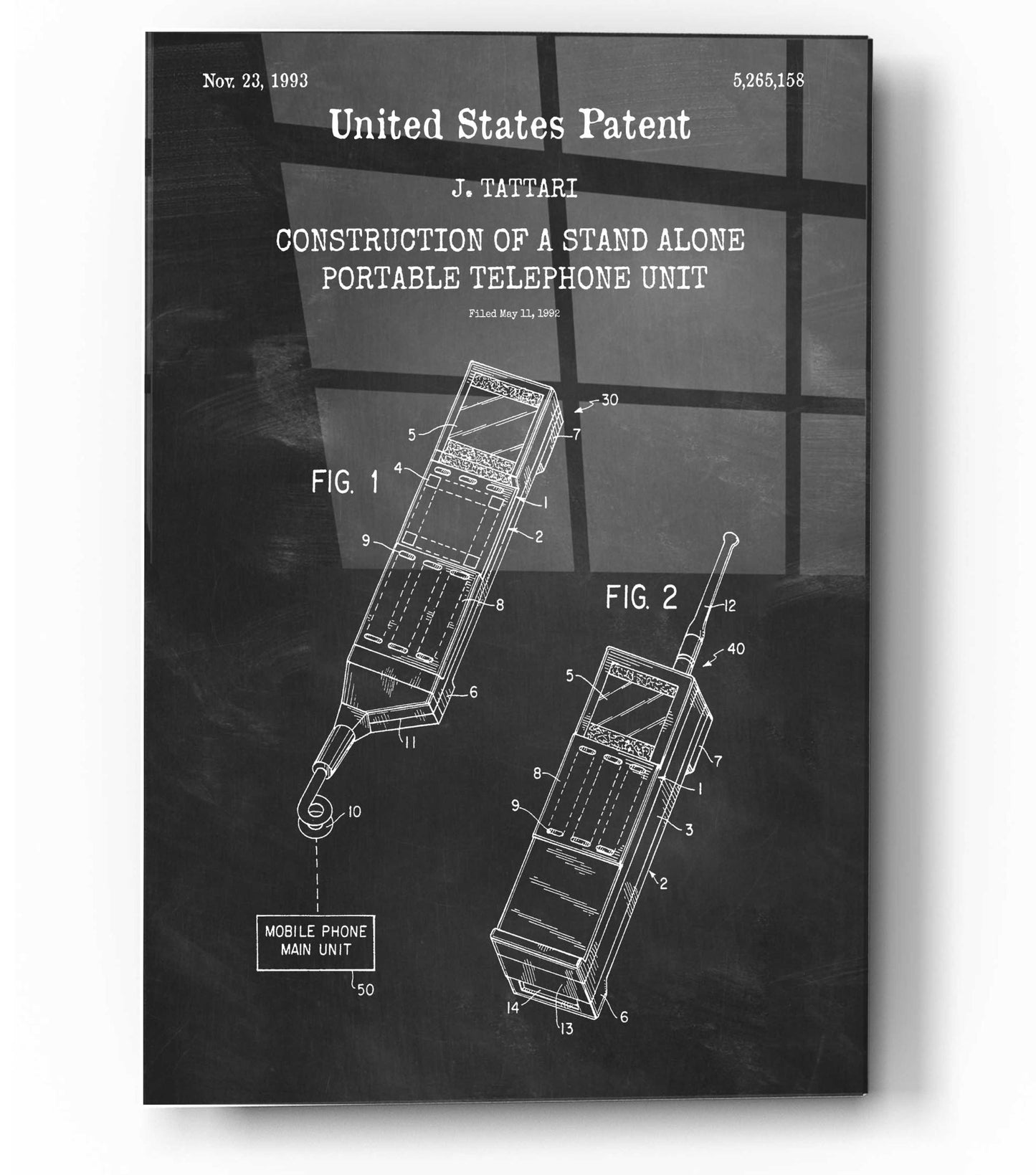 Portable Phone Unit Blueprint Patent Chalkboard. An official US Patent remastered by Epic Art. Available on blackboard or parchment background.