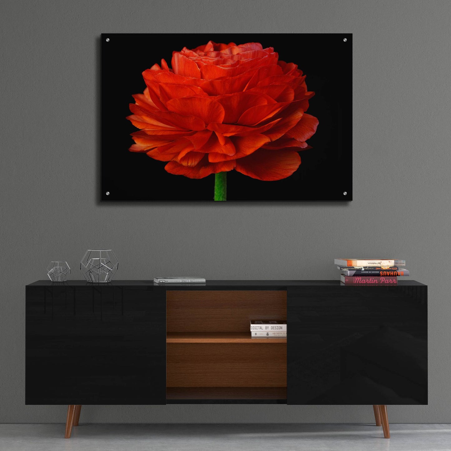 Epic Art 'Red Flower on Black 04' by Tom Quartermaine, Acrylic Glass Wall Art