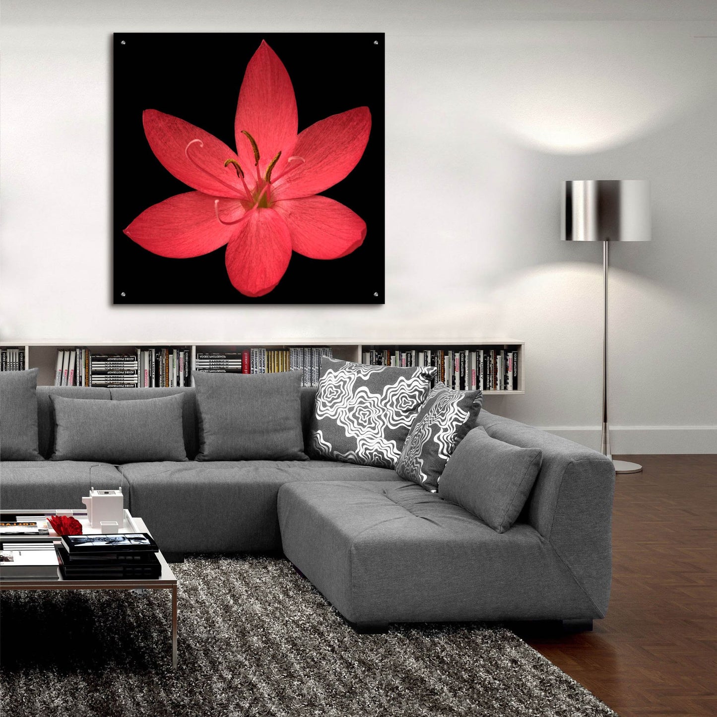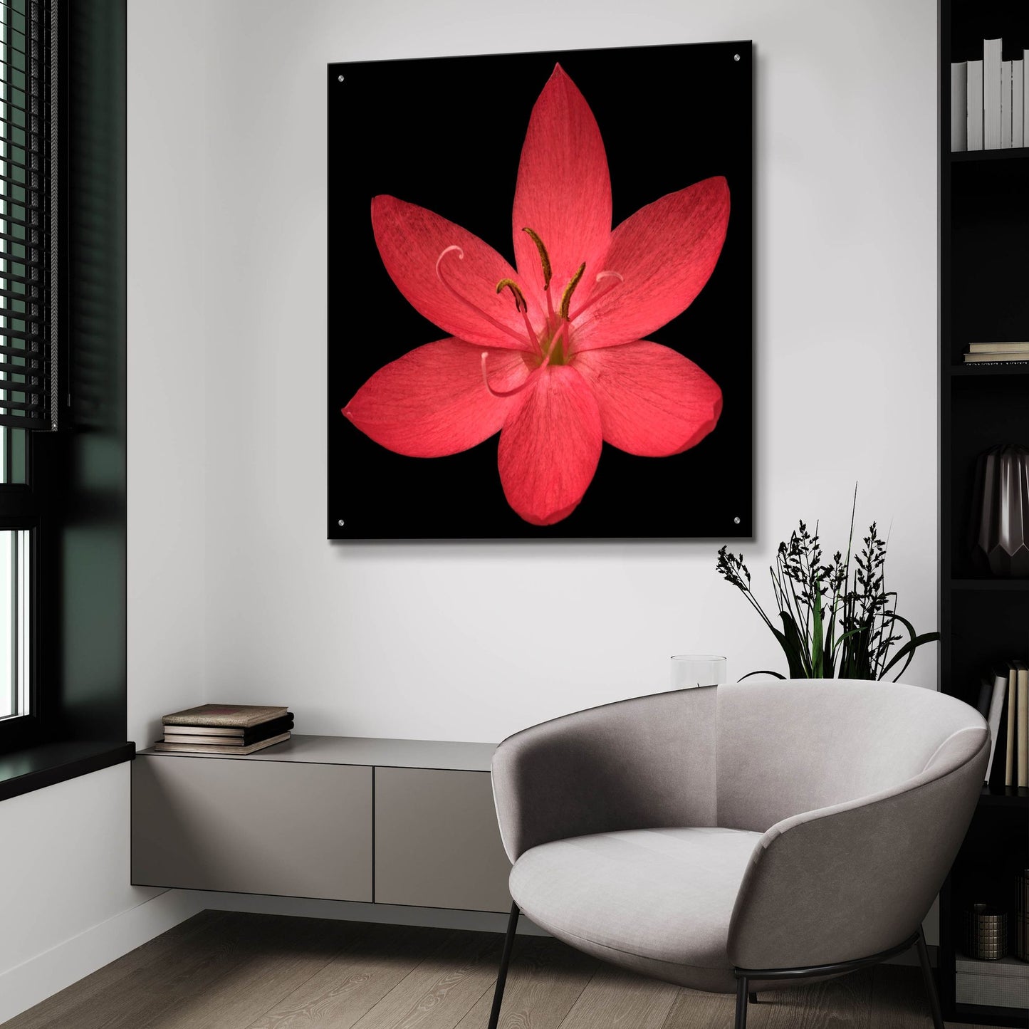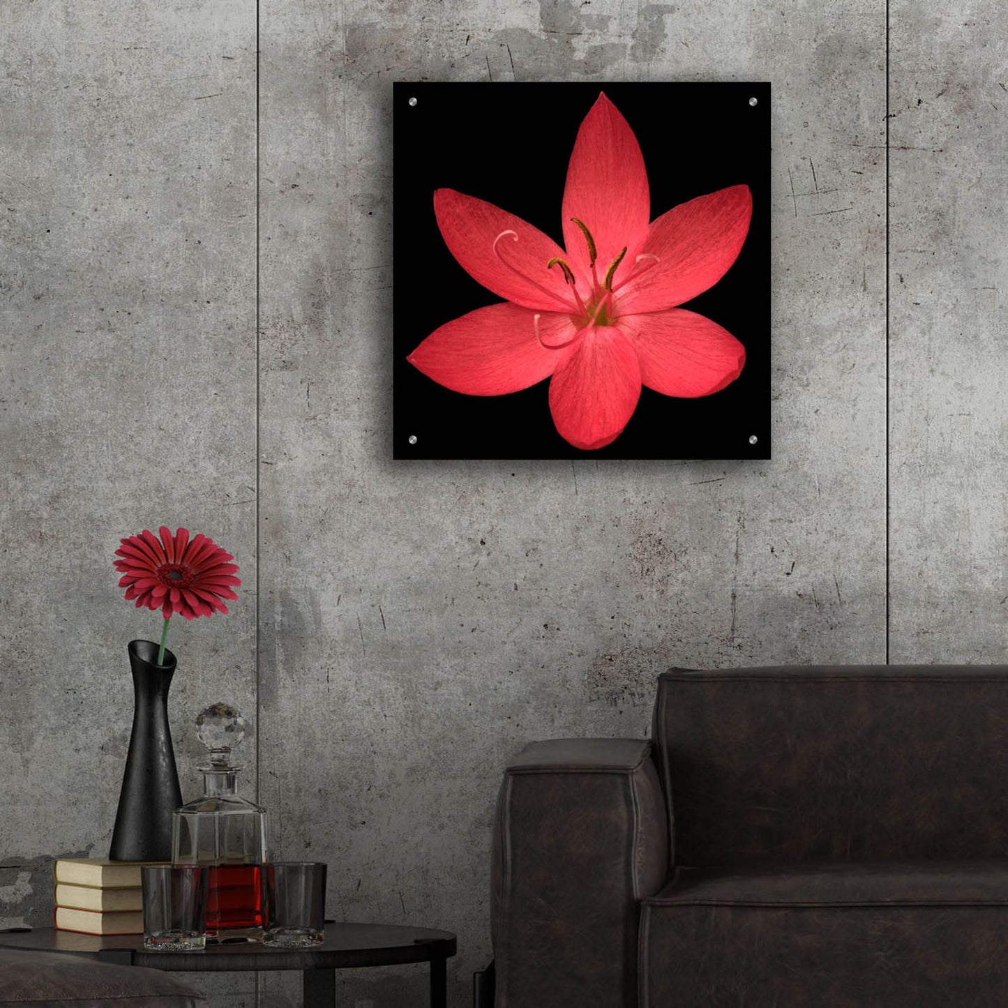 Epic Art 'Red Flower on Black 06' by Tom Quartermaine, Acrylic Glass Wall Art