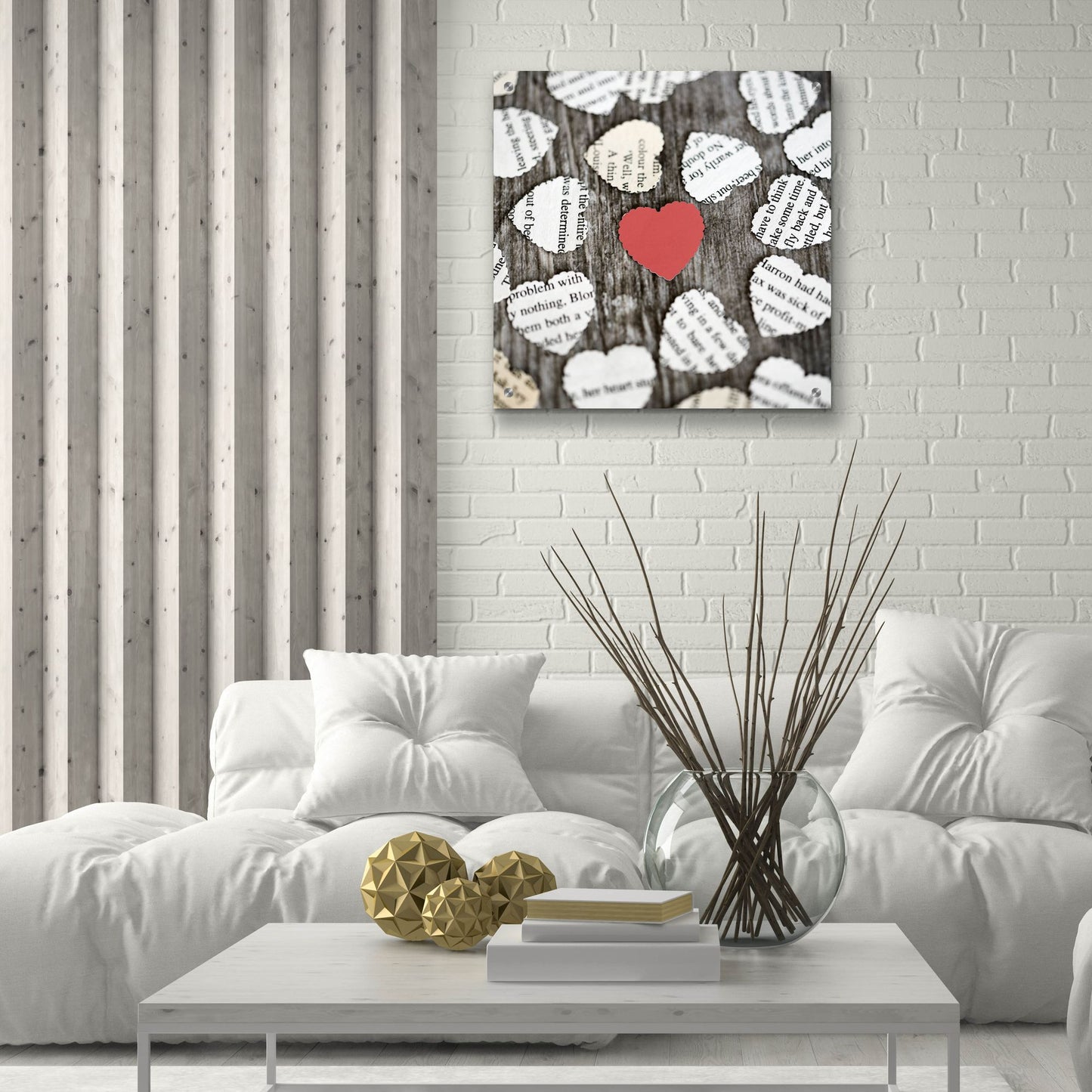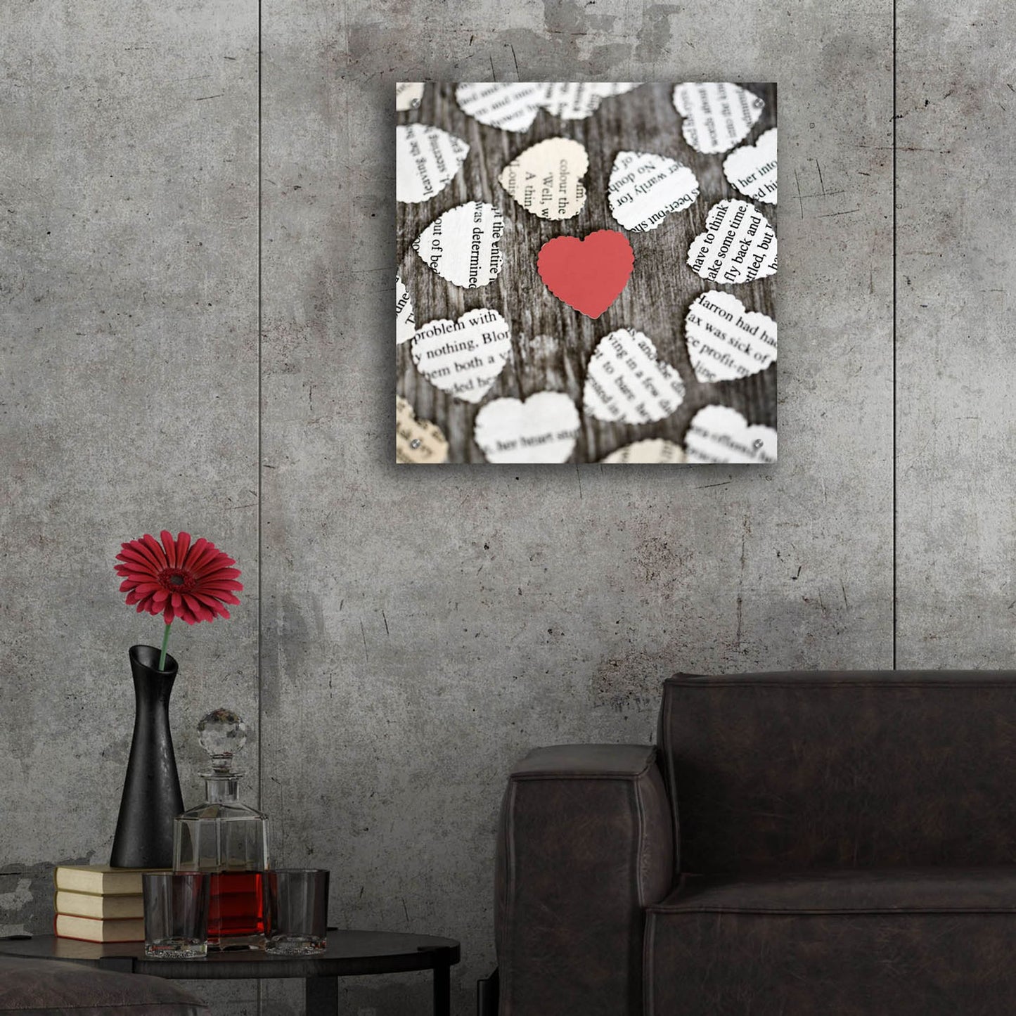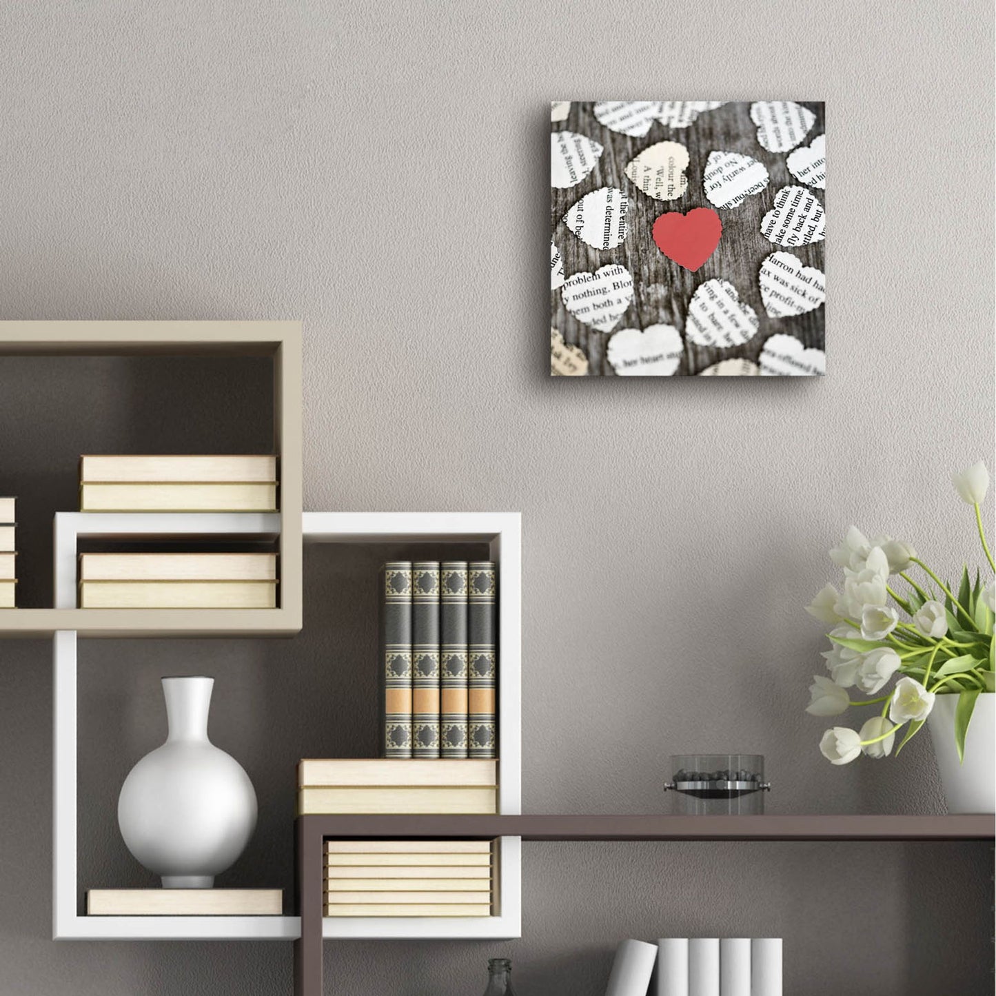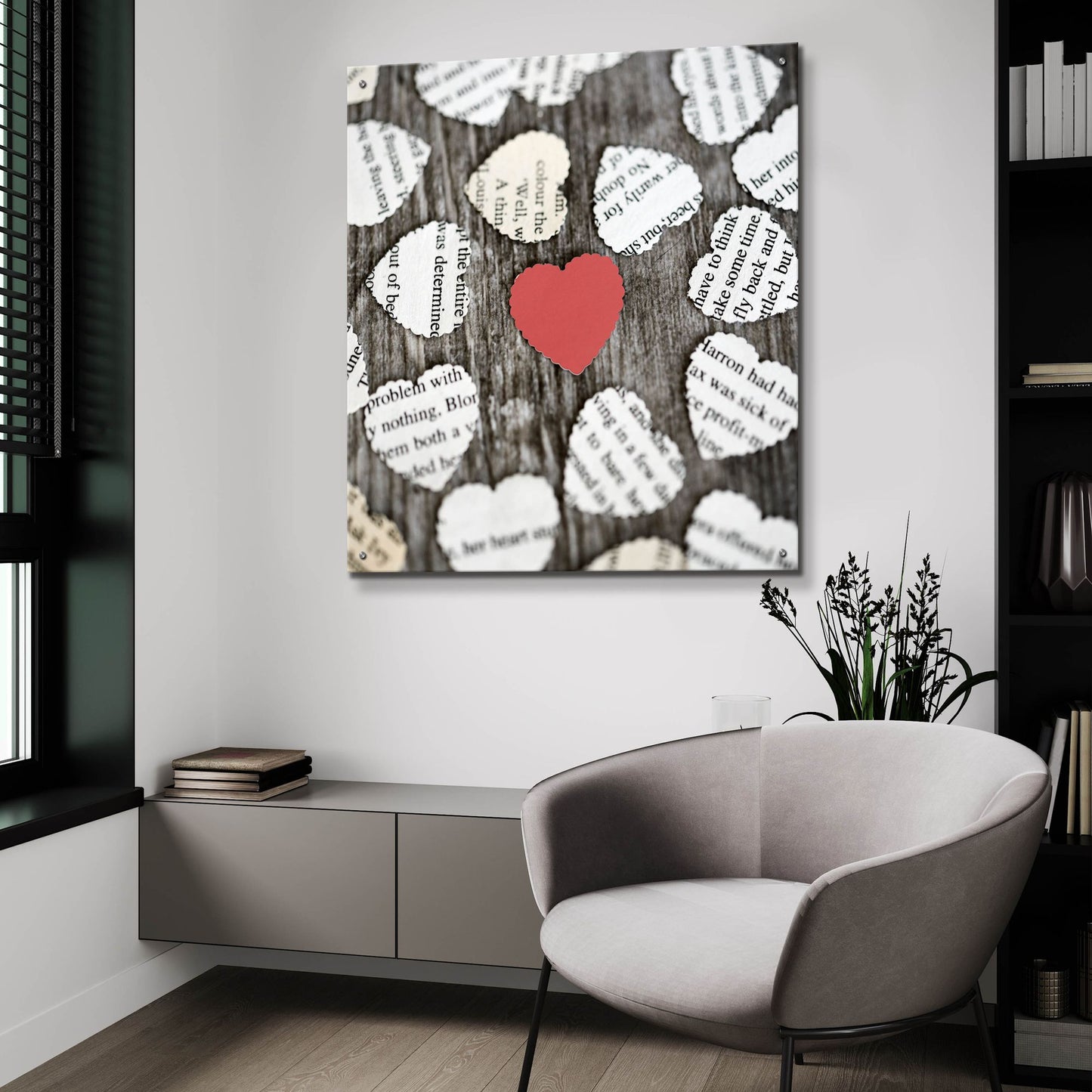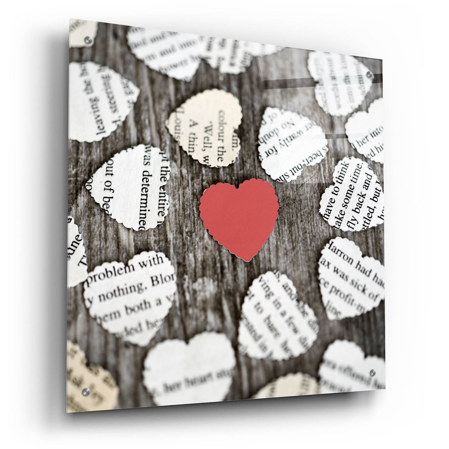Epic Art 'Red Heart with Heart Book Pages' by Tom Quartermaine, Acrylic Glass Wall Art