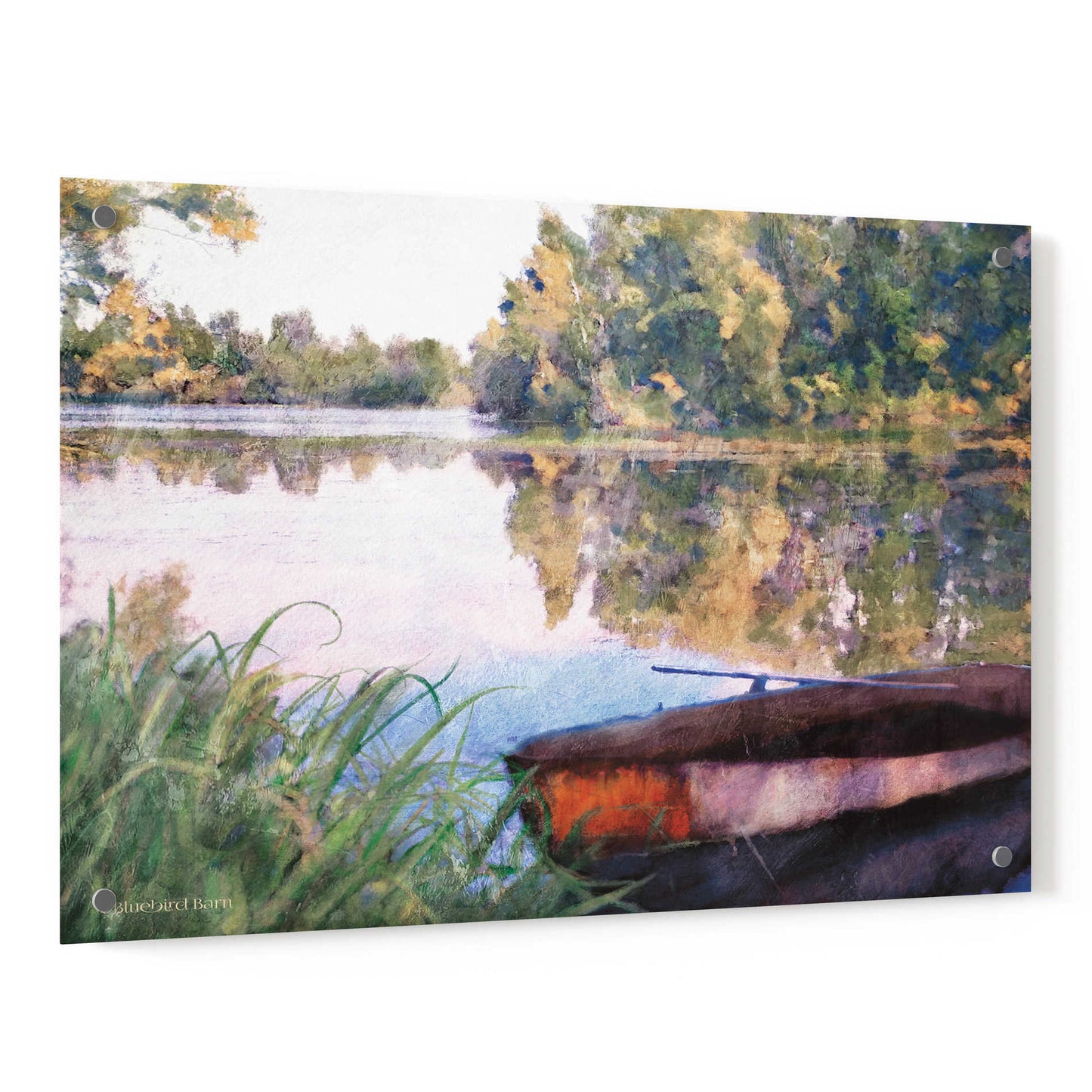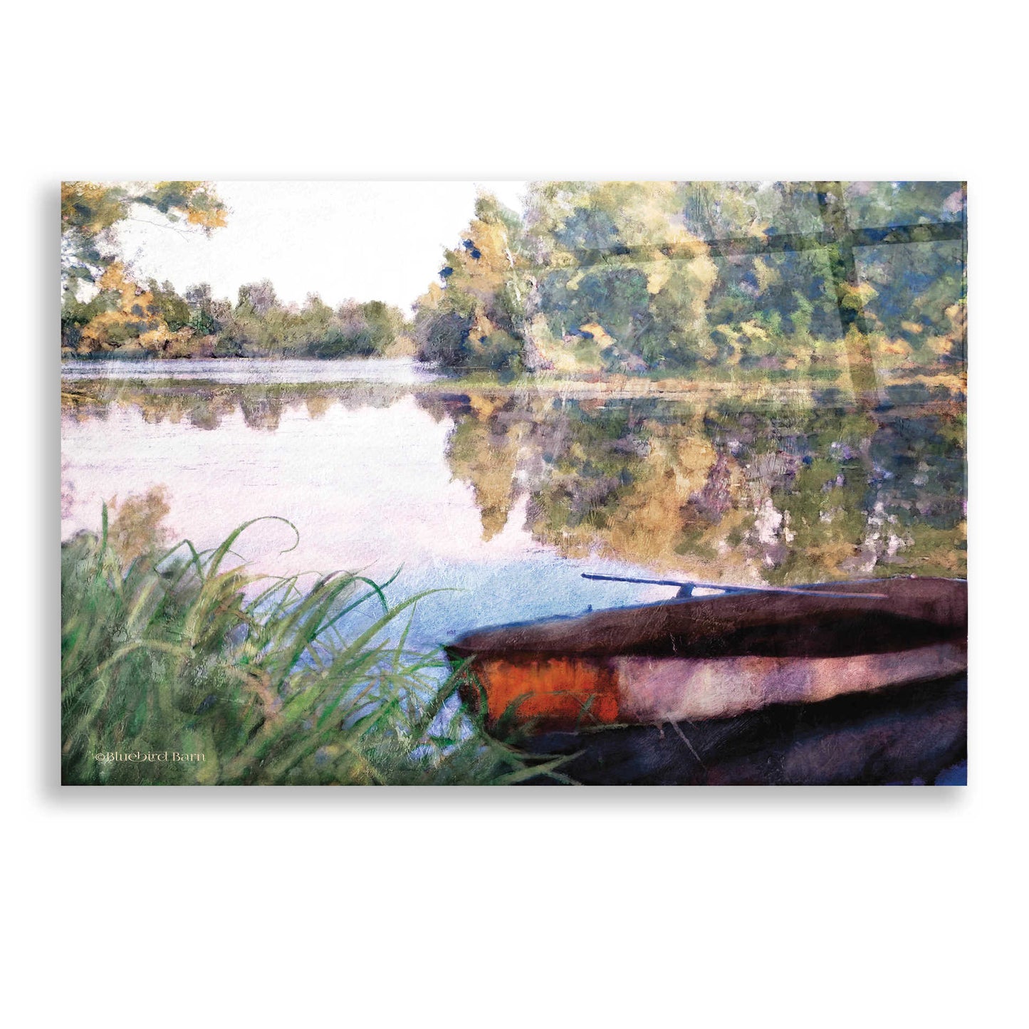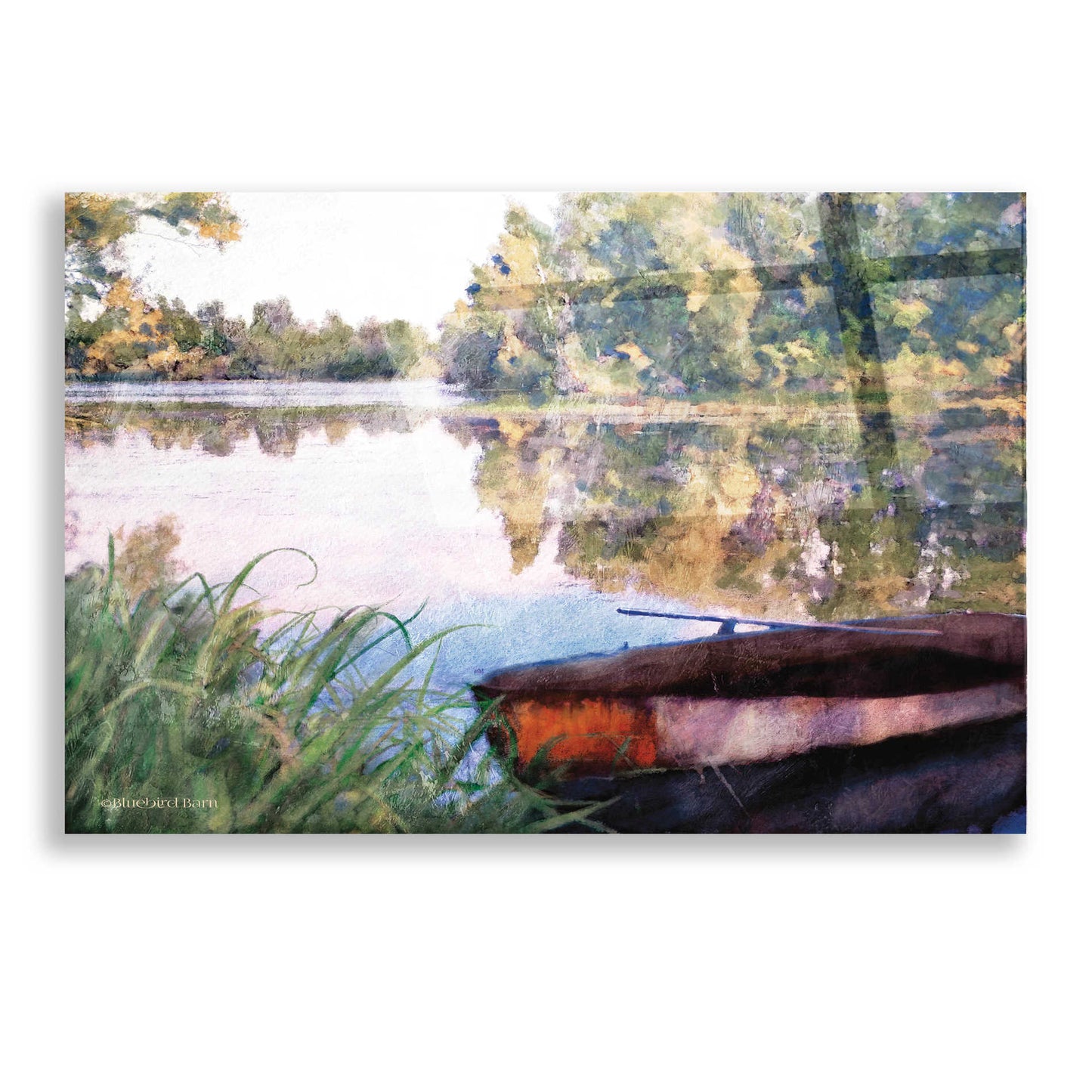 Epic Art 'Rowboat Pond Landscape' by Bluebird Barn, Acrylic Glass Wall Art