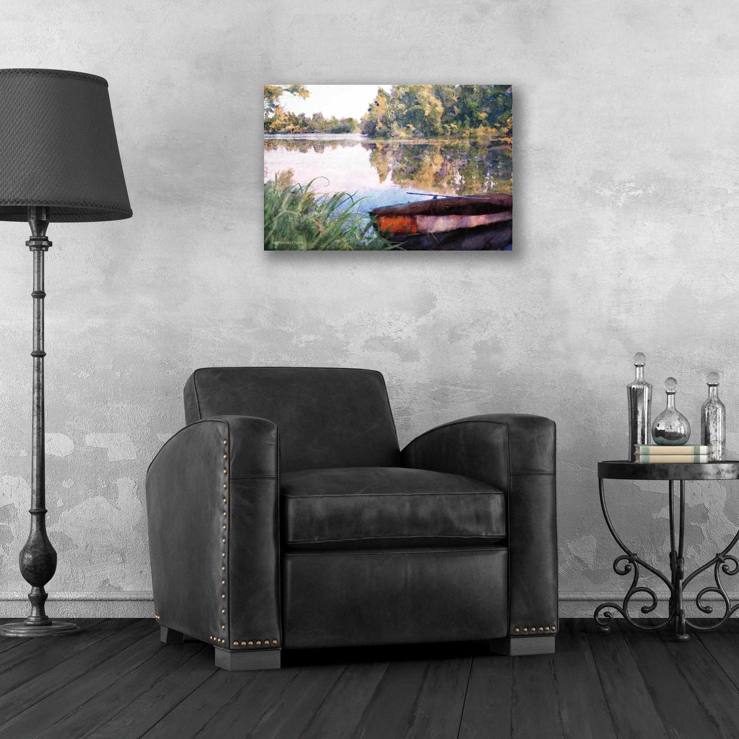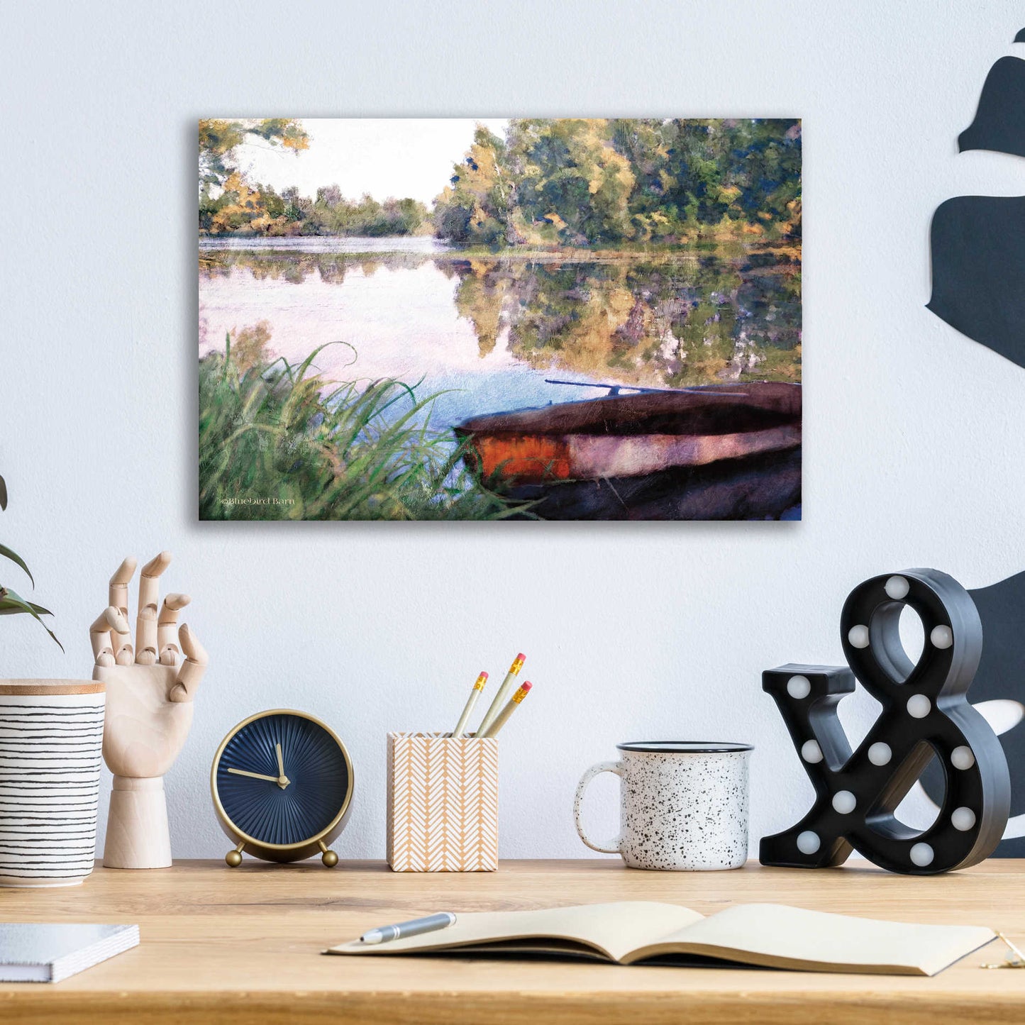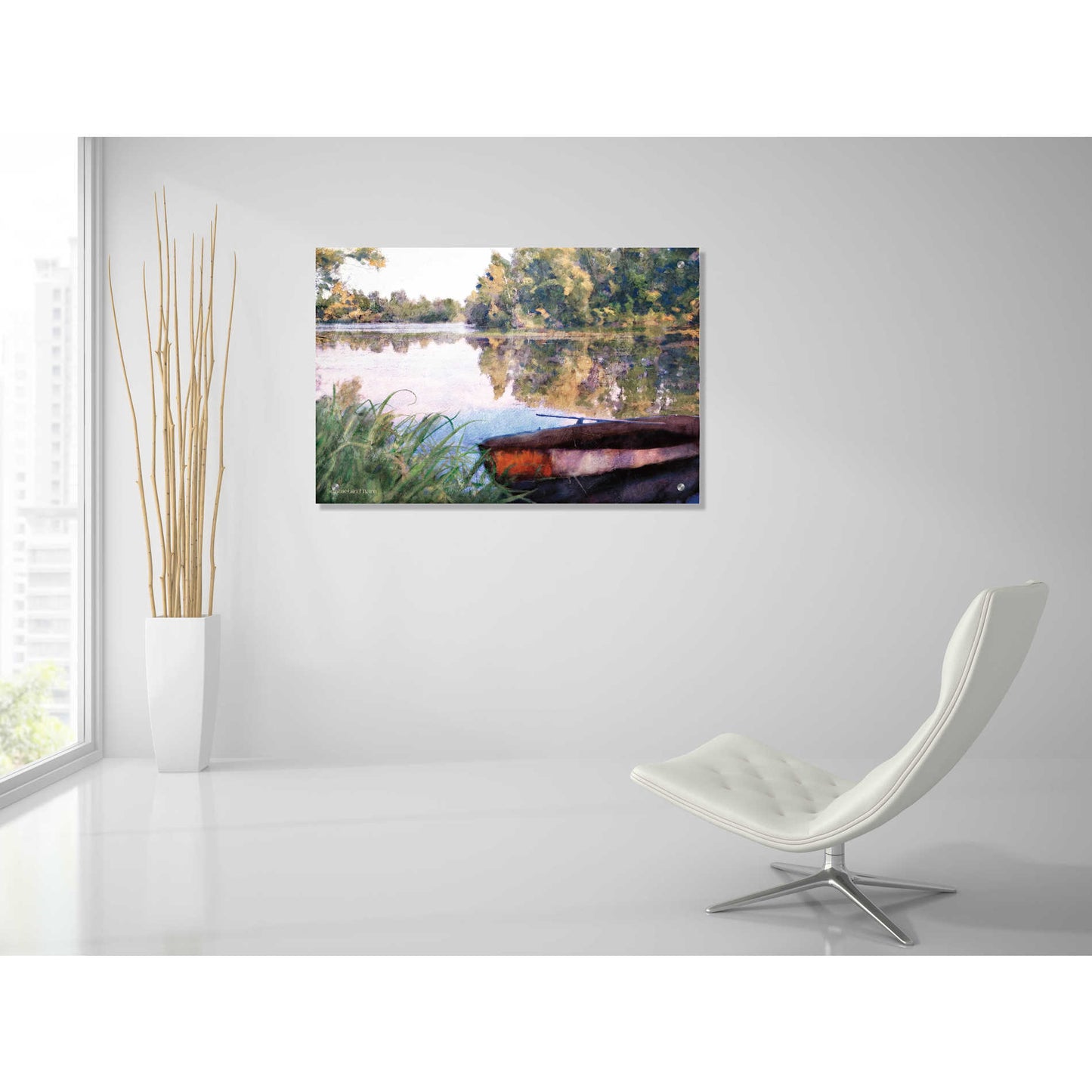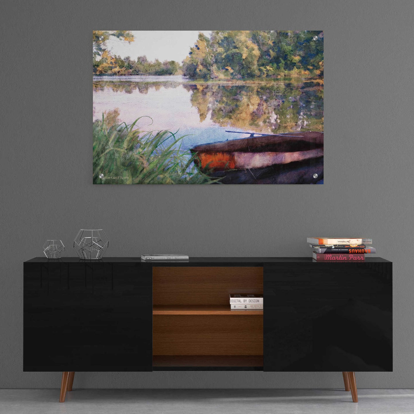 Epic Art 'Rowboat Pond Landscape' by Bluebird Barn, Acrylic Glass Wall Art