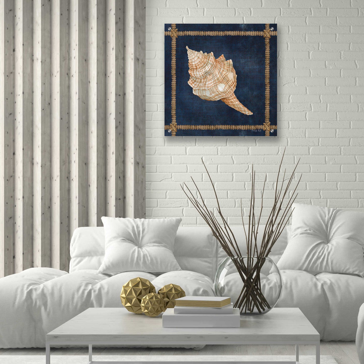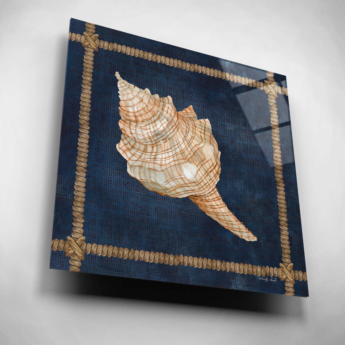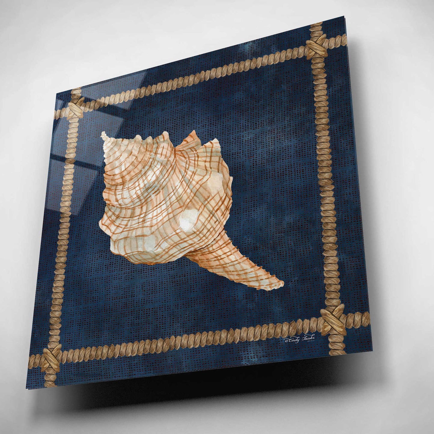 Epic Art 'Seashell on Navy IV' by Cindy Jacobs, Acrylic Glass Wall Art