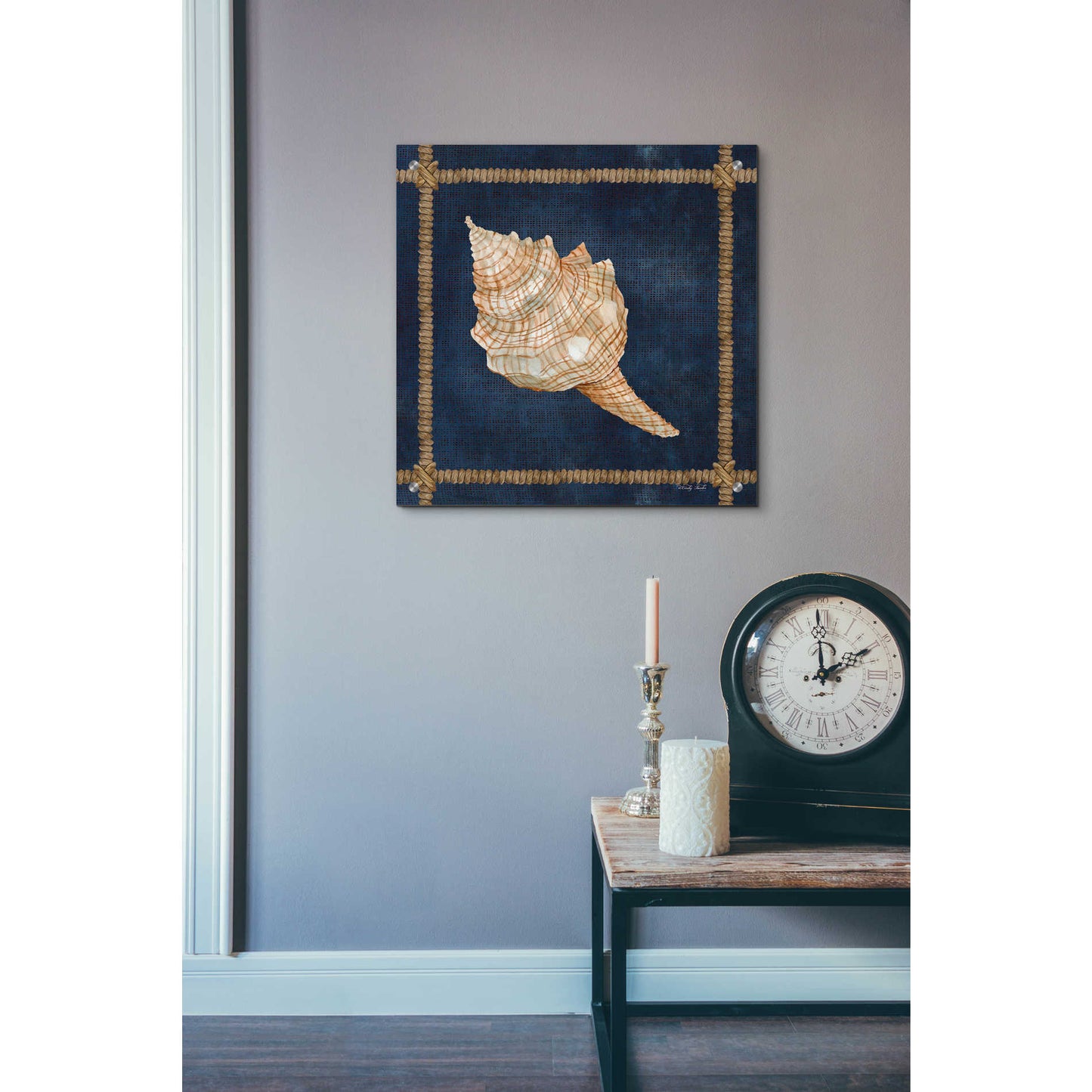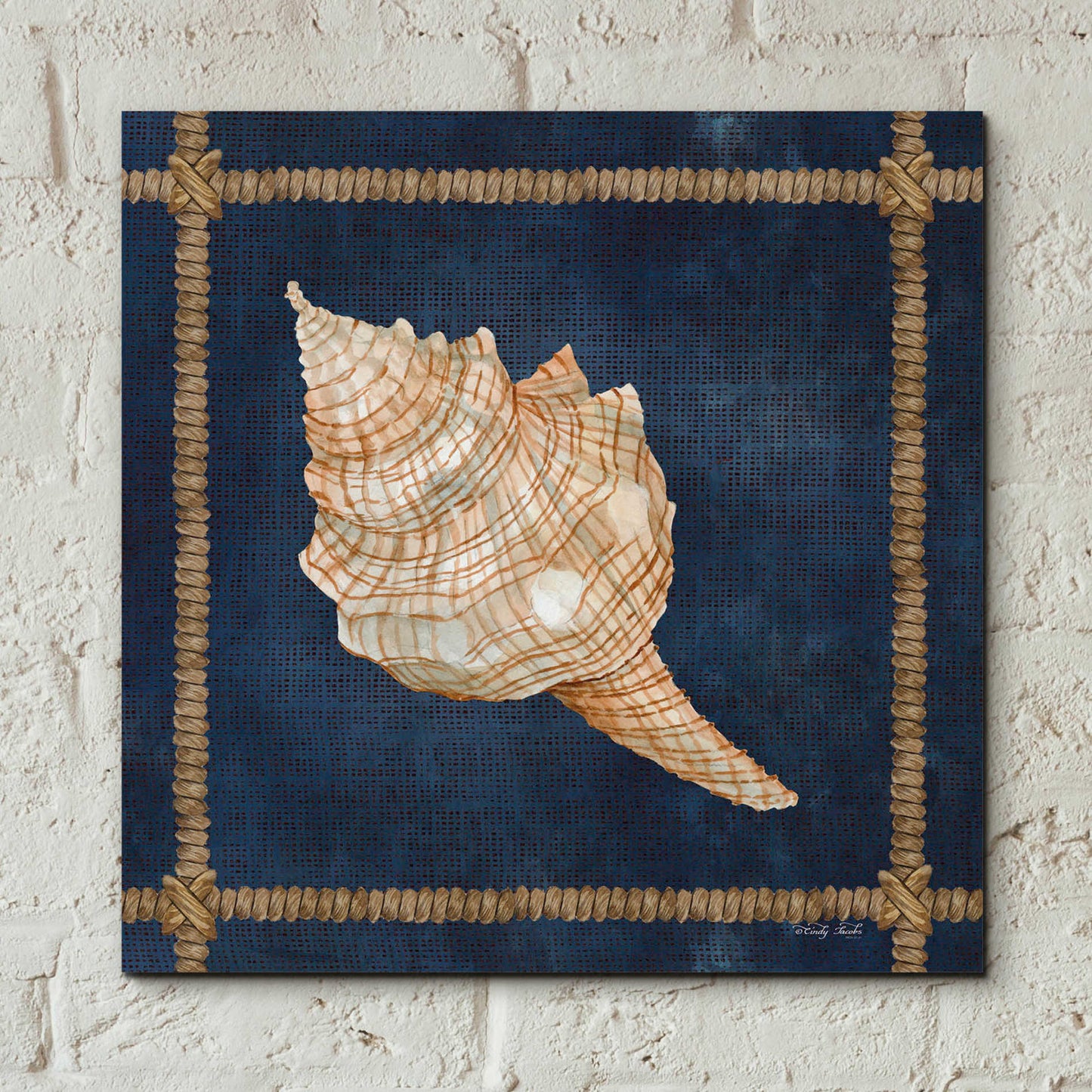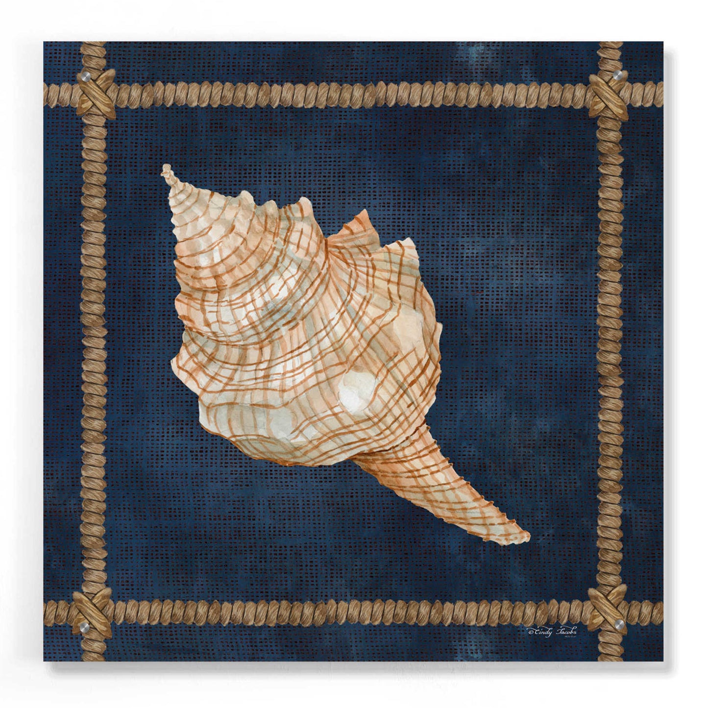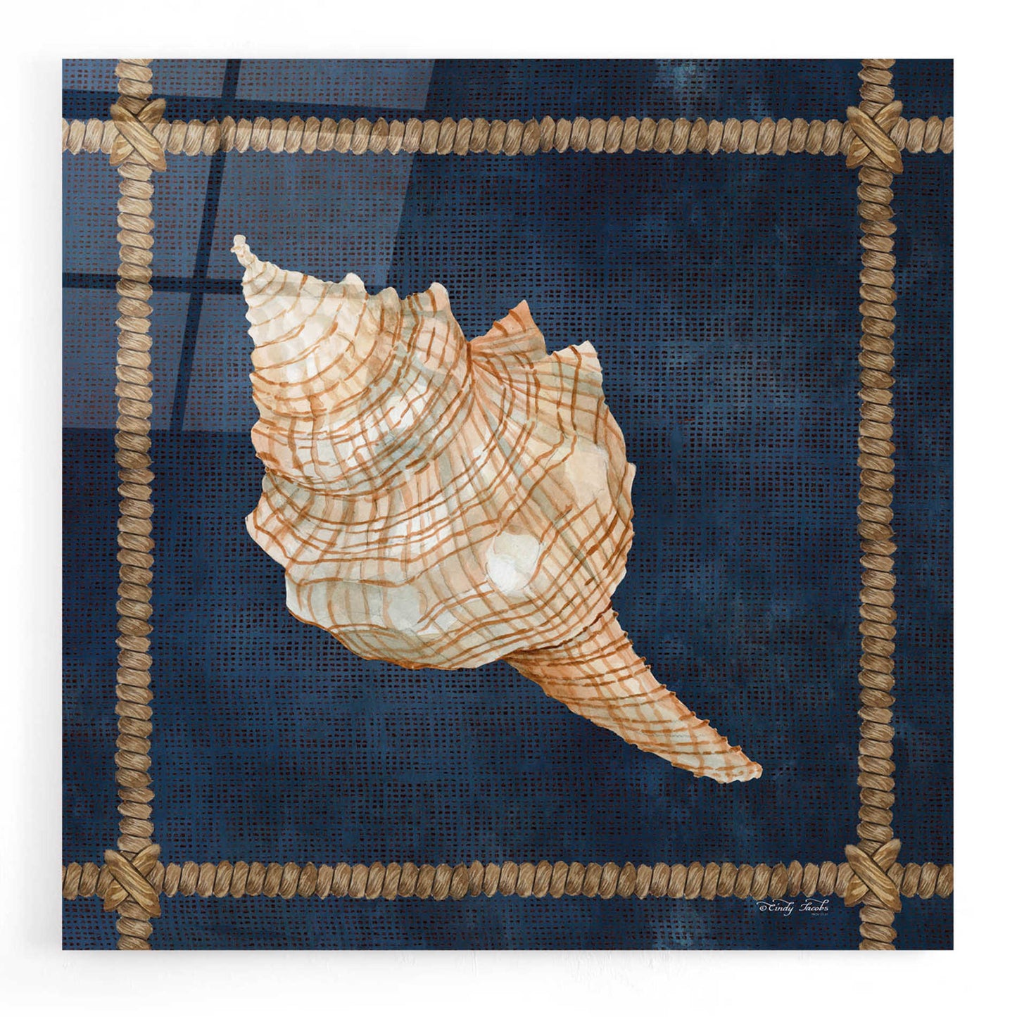 "Seashell on Navy IV" by Cindy Jacobs.
