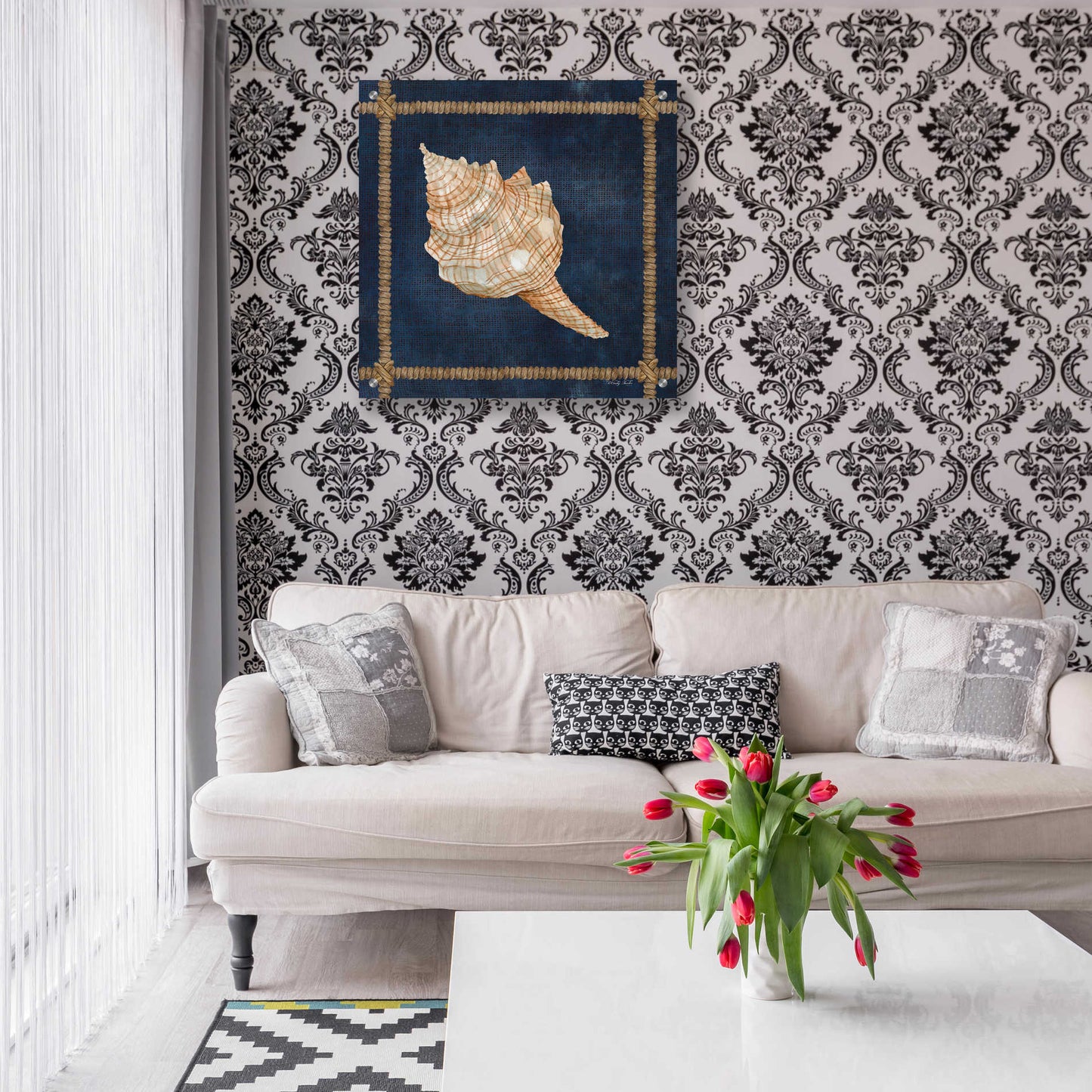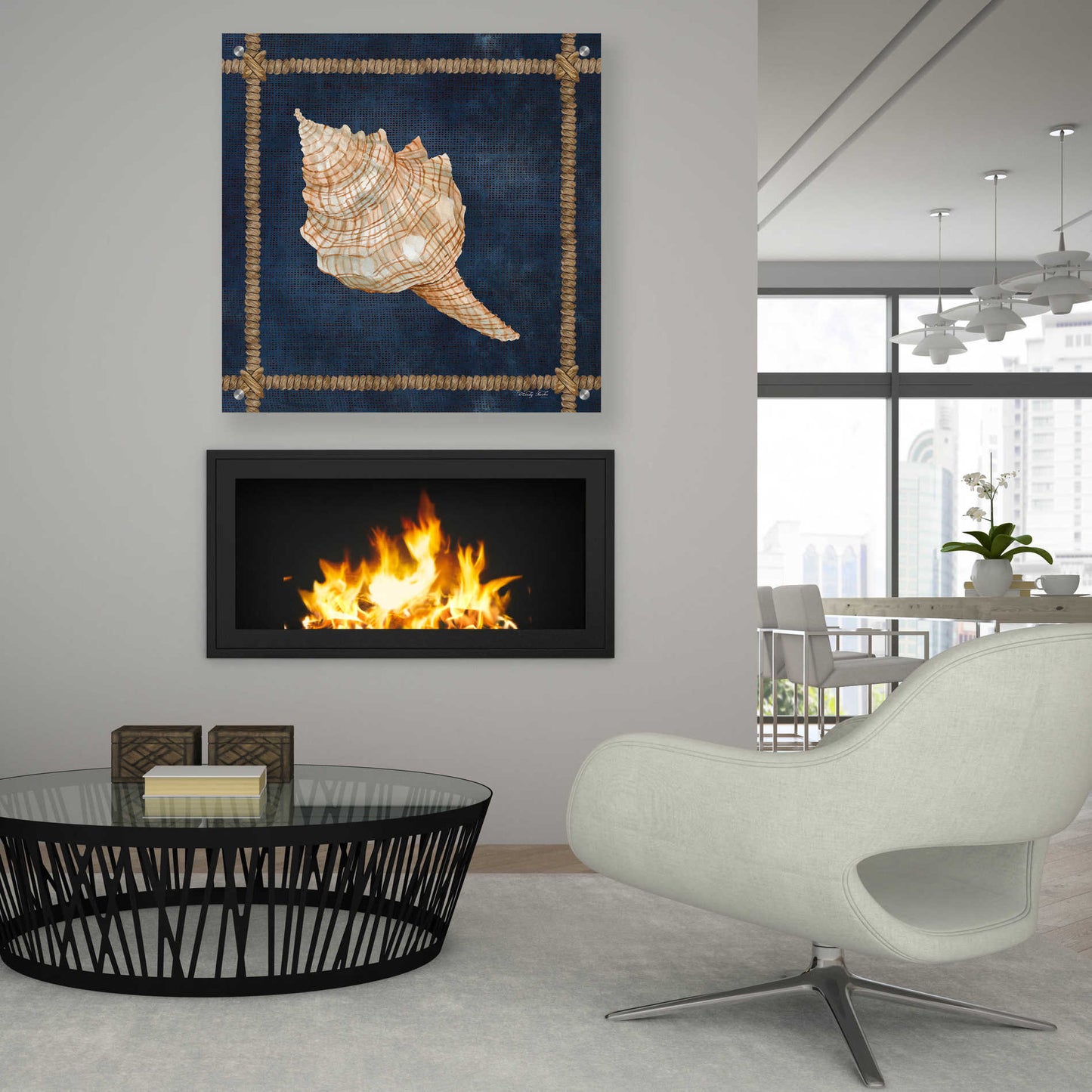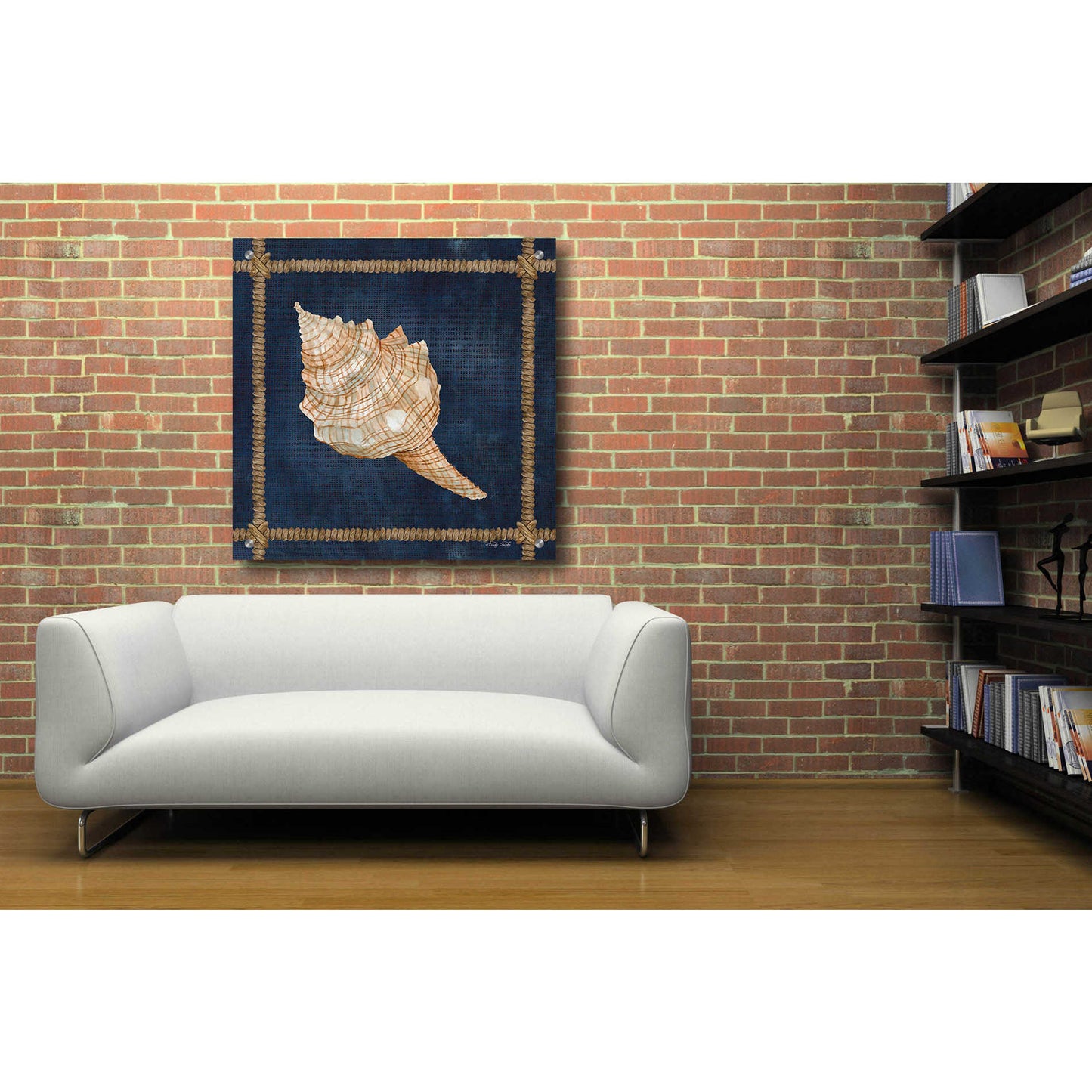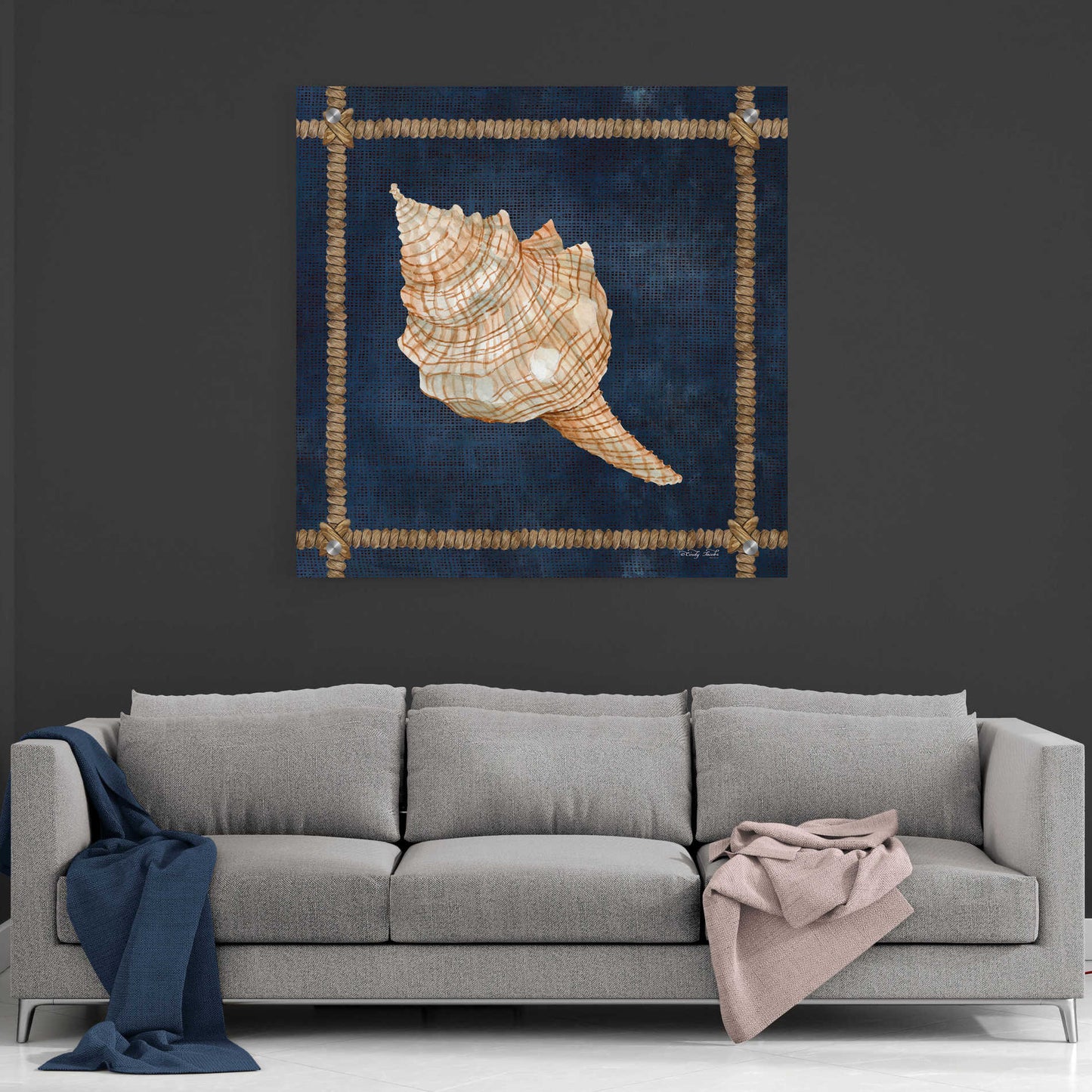 "Seashell on Navy IV" by Cindy Jacobs.