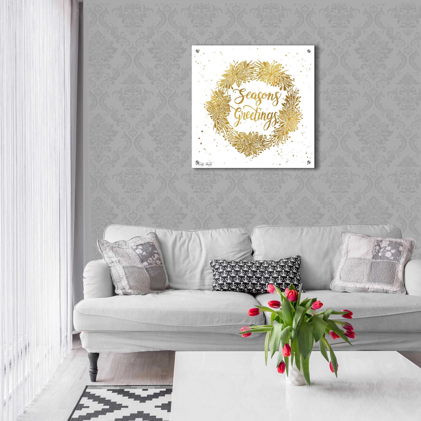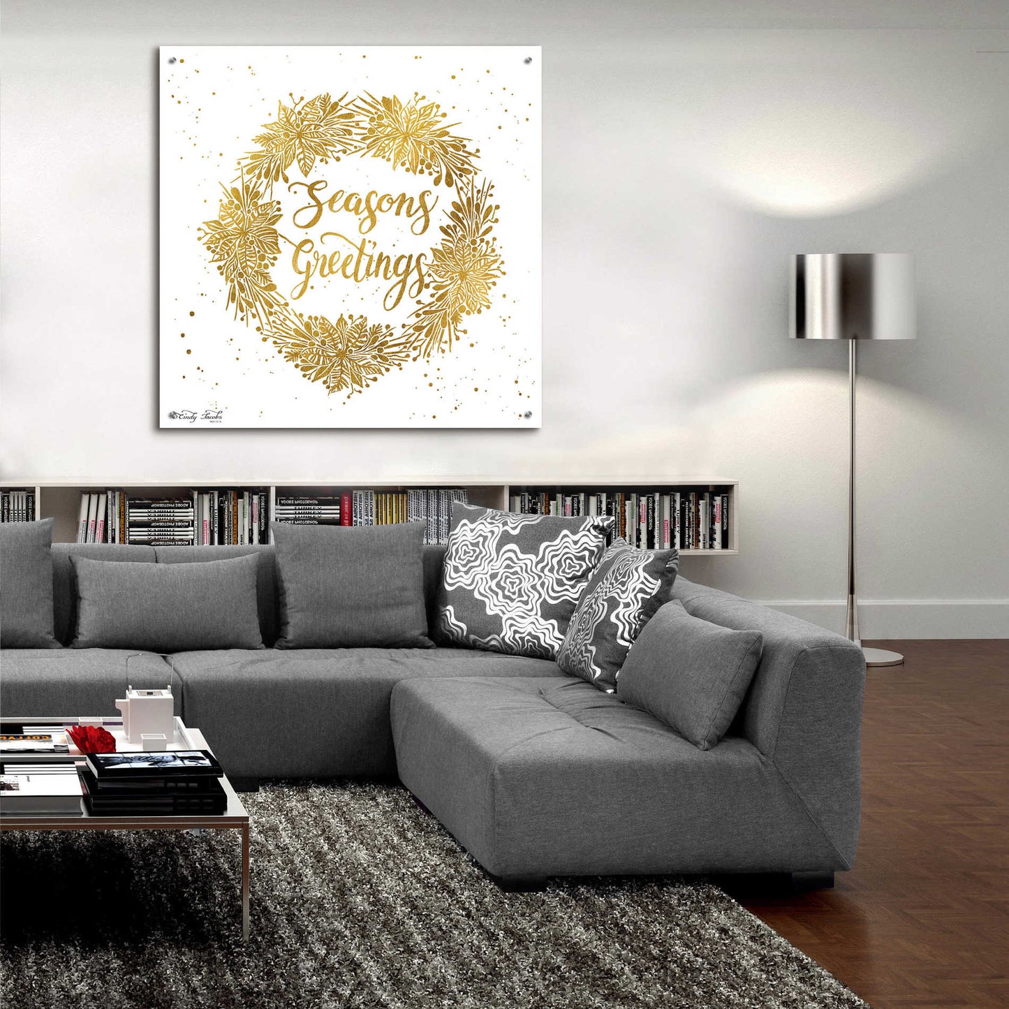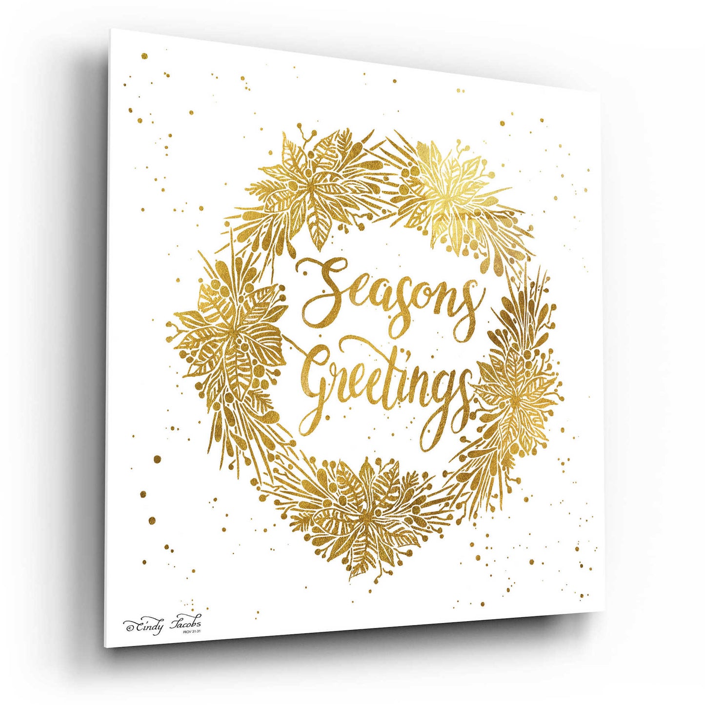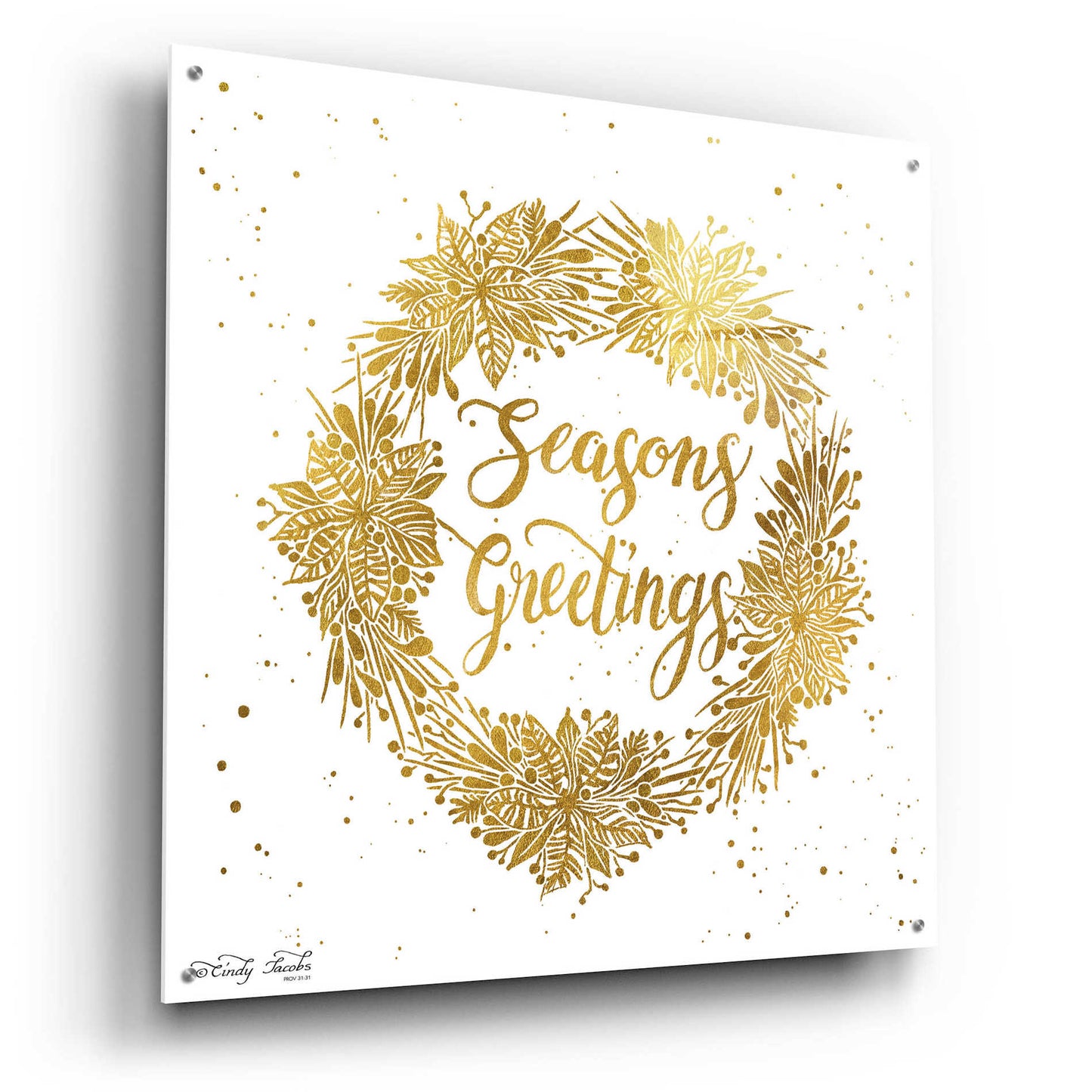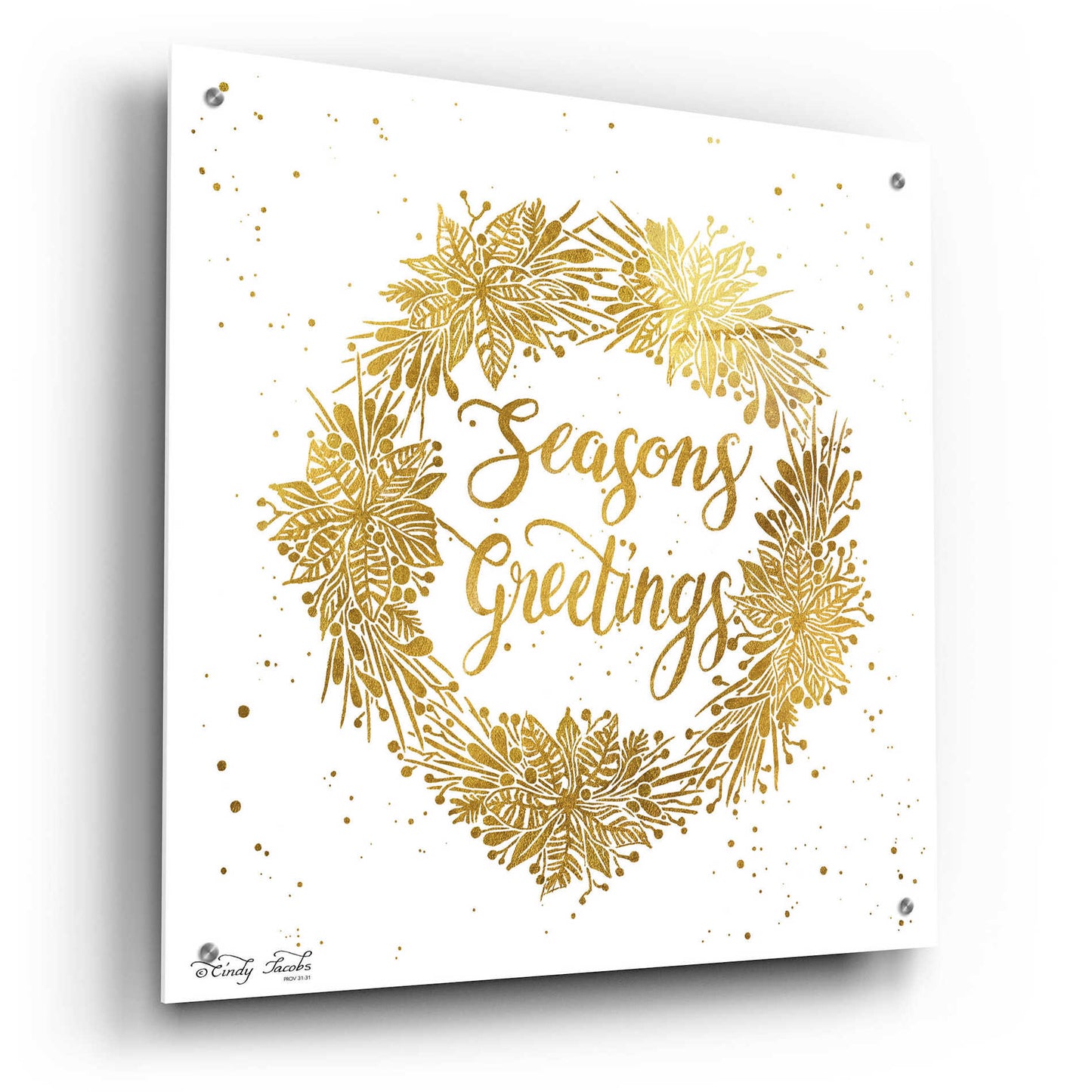 Epic Art 'Seasons Greetings Gold Wreath' by Cindy Jacobs, Acrylic Glass Wall Art