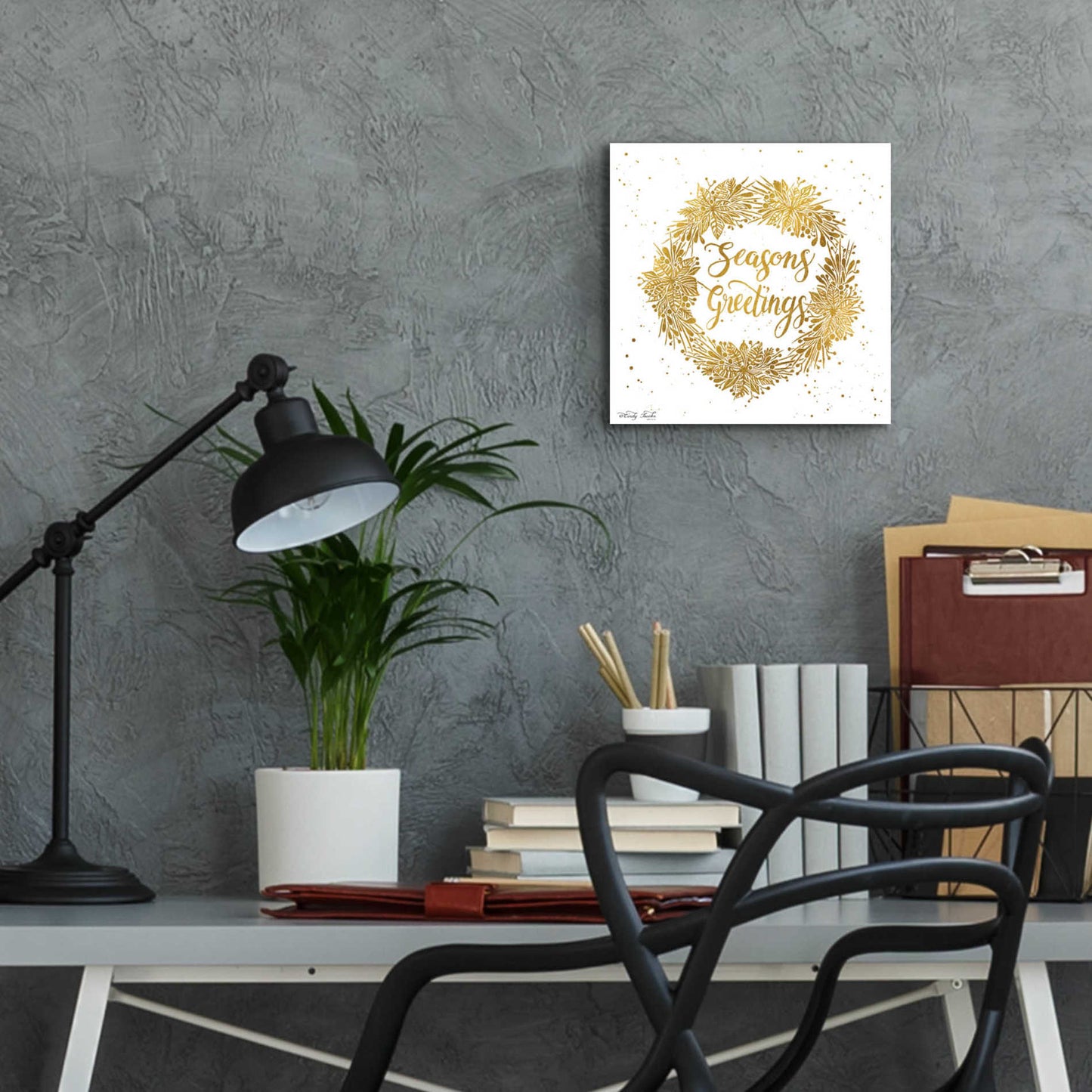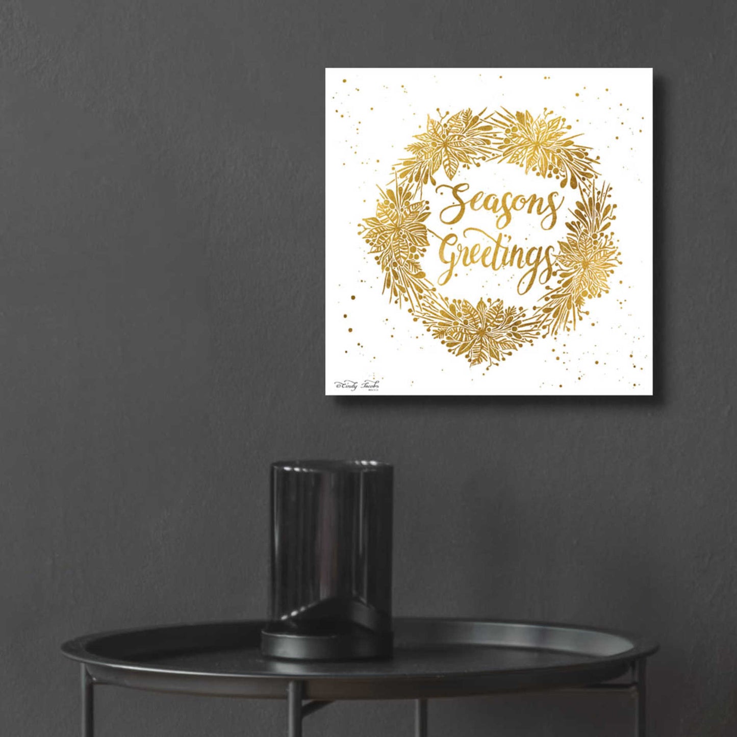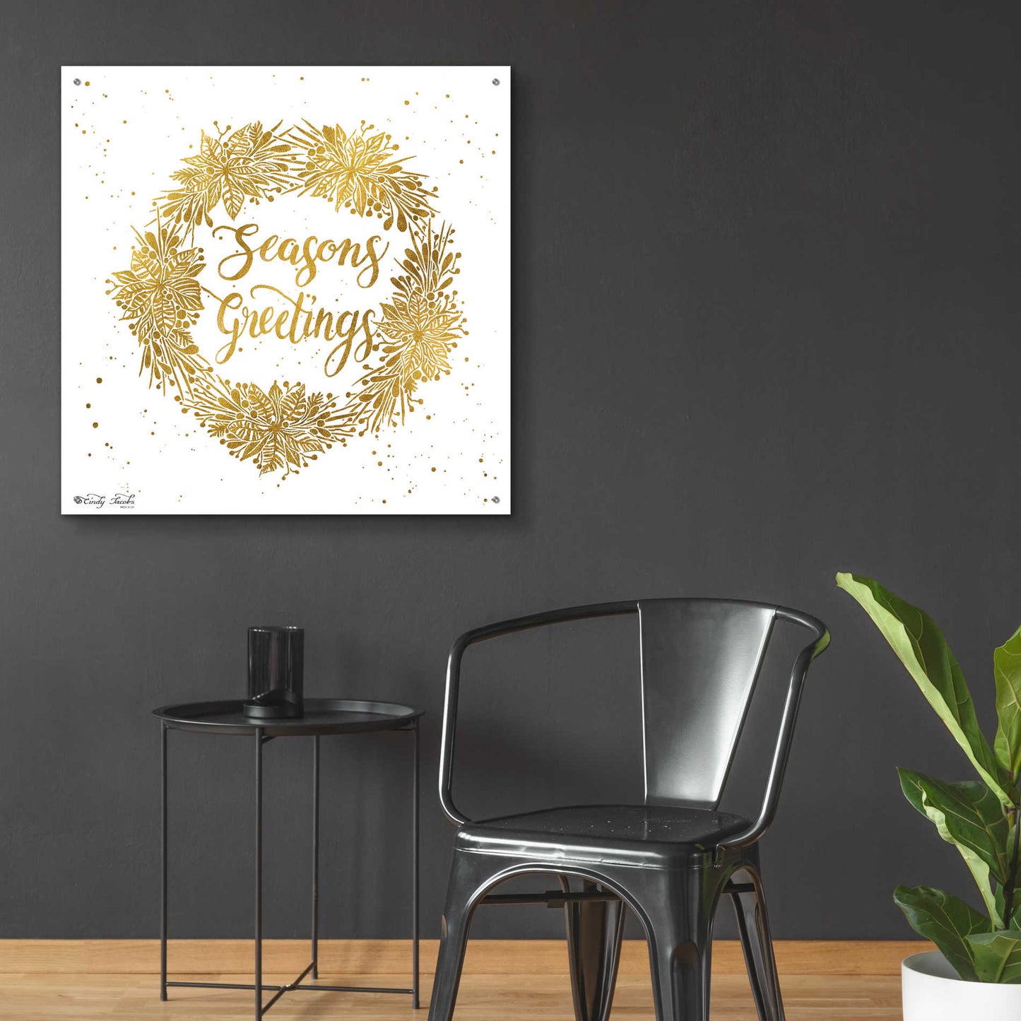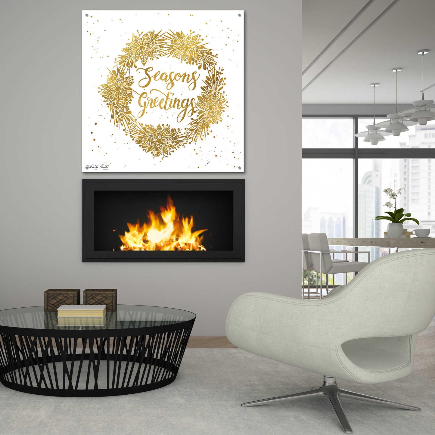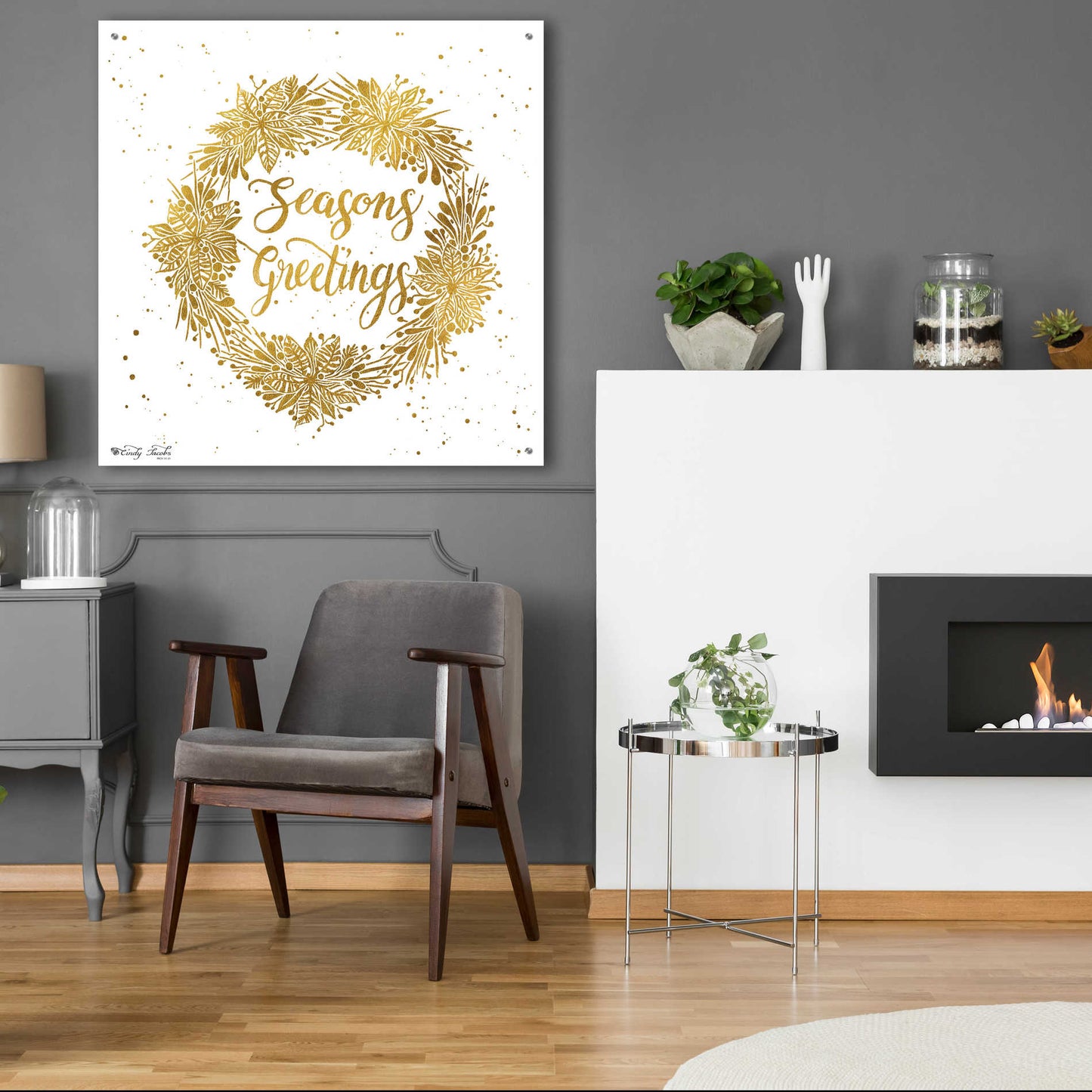 Epic Art 'Seasons Greetings Gold Wreath' by Cindy Jacobs, Acrylic Glass Wall Art