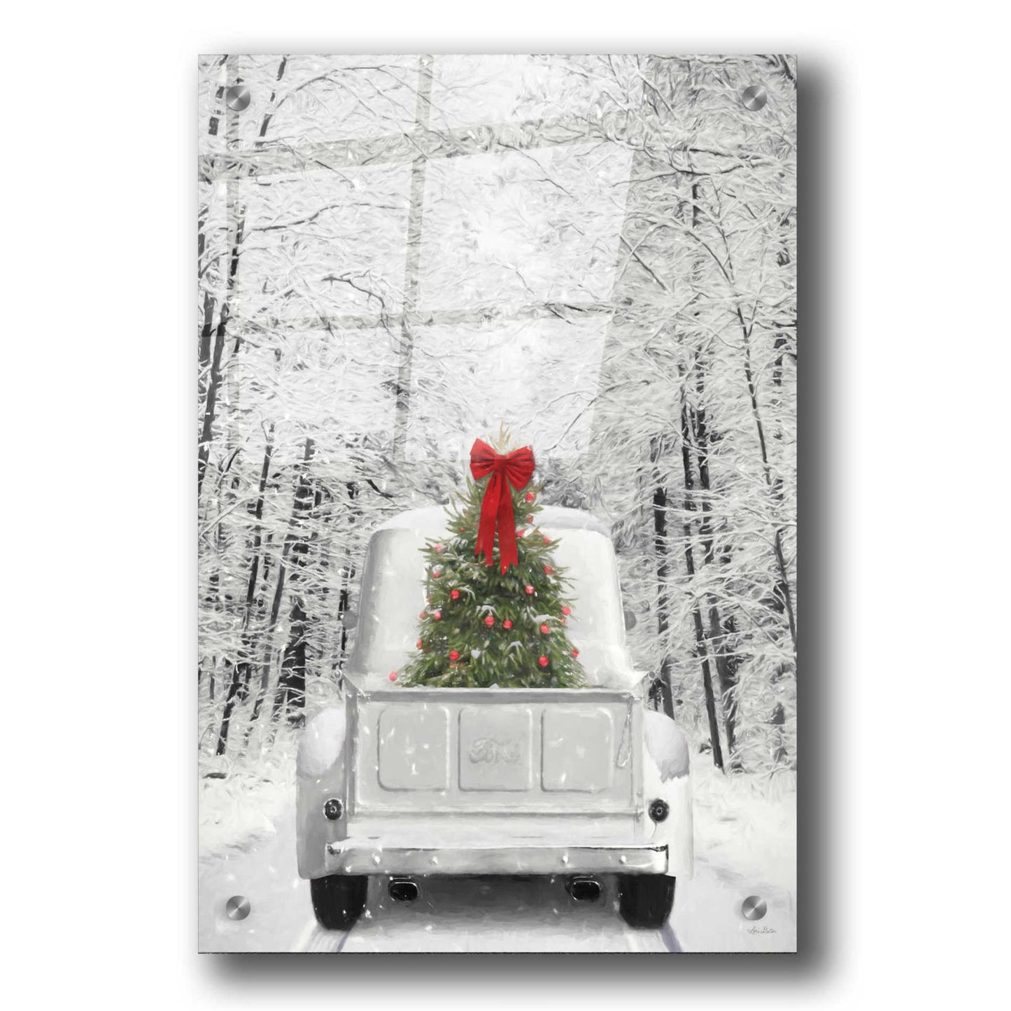 Epic Art 'Snowy Drive in a White Ford' by Lori Deiter, Acrylic Glass Wall Art